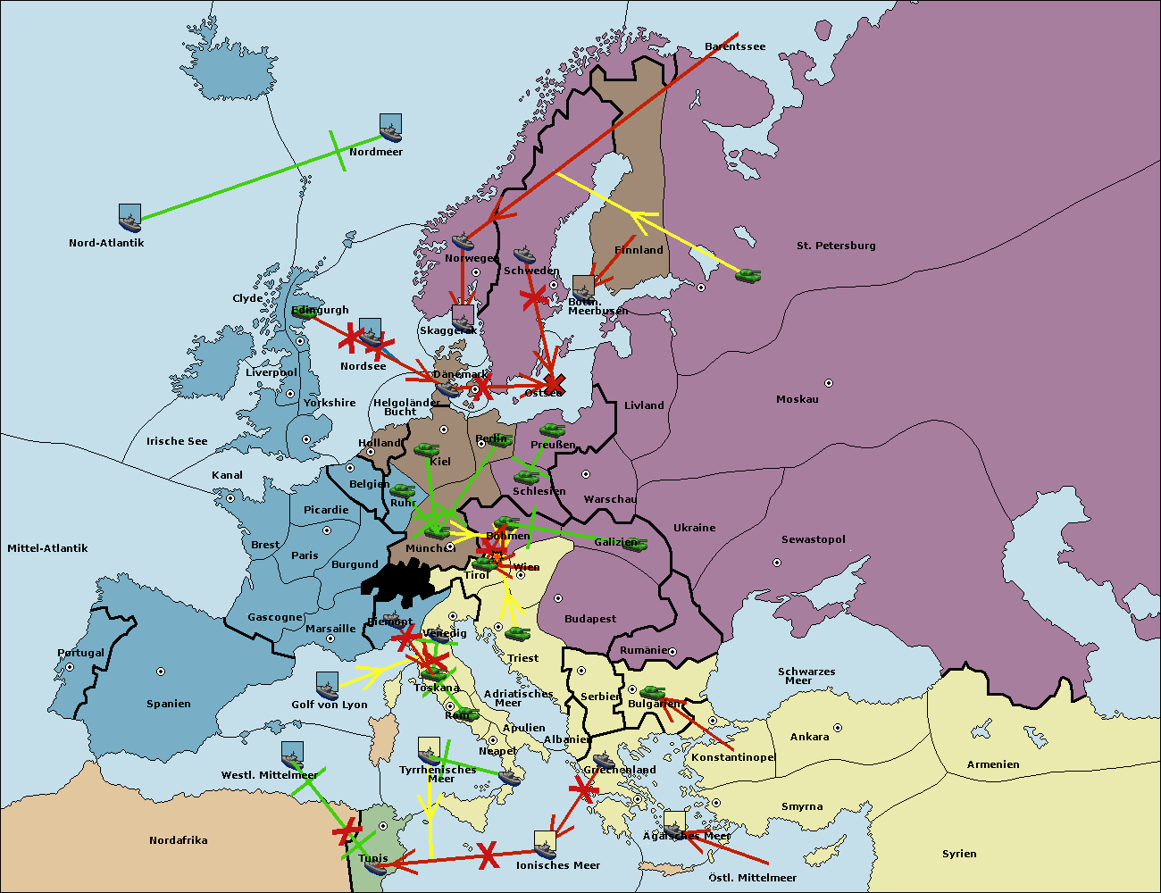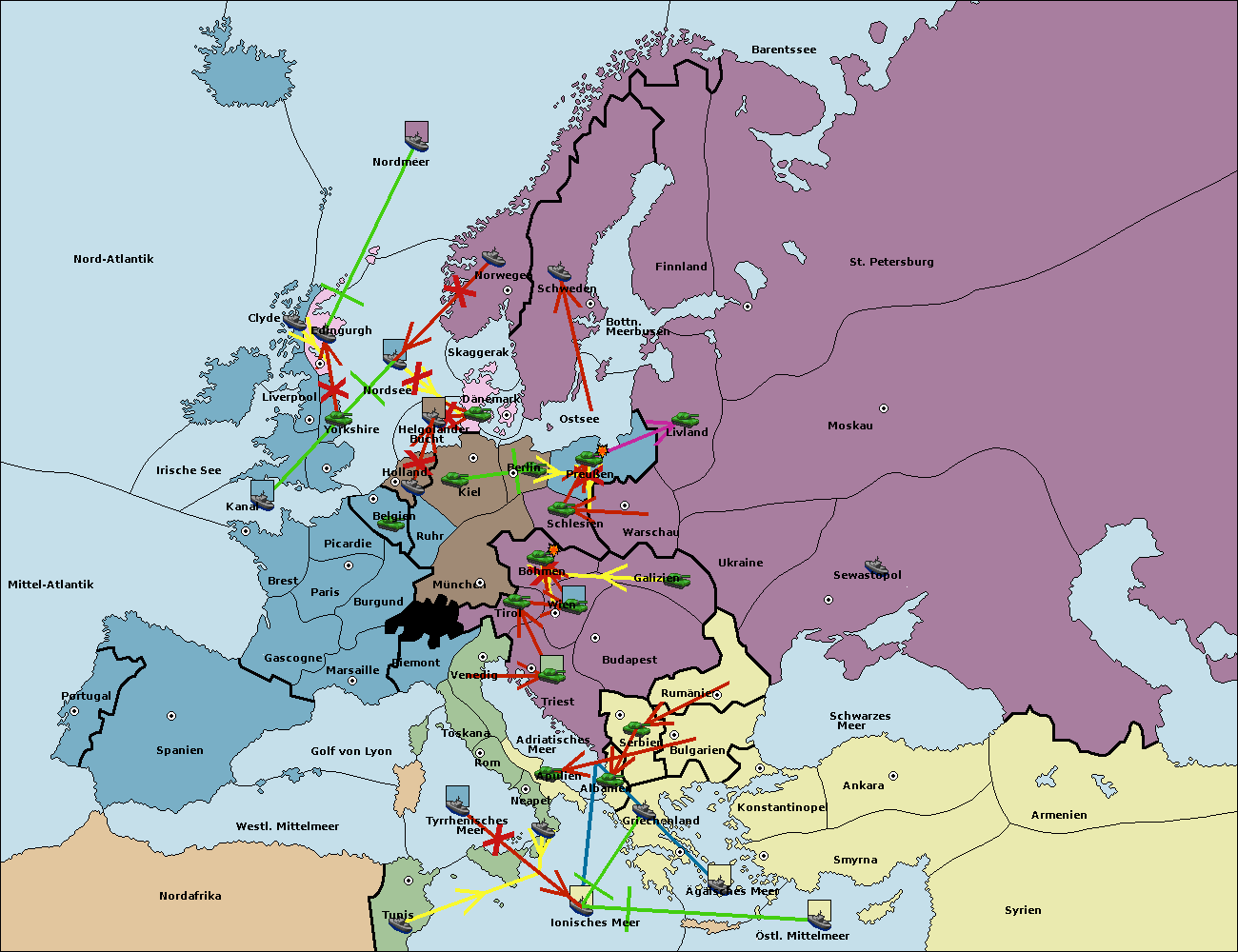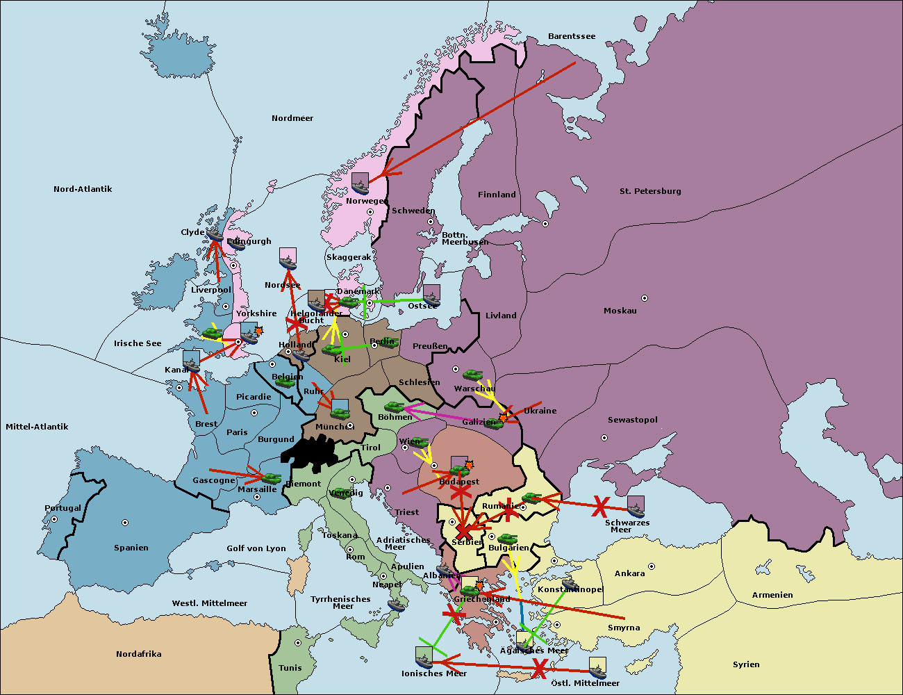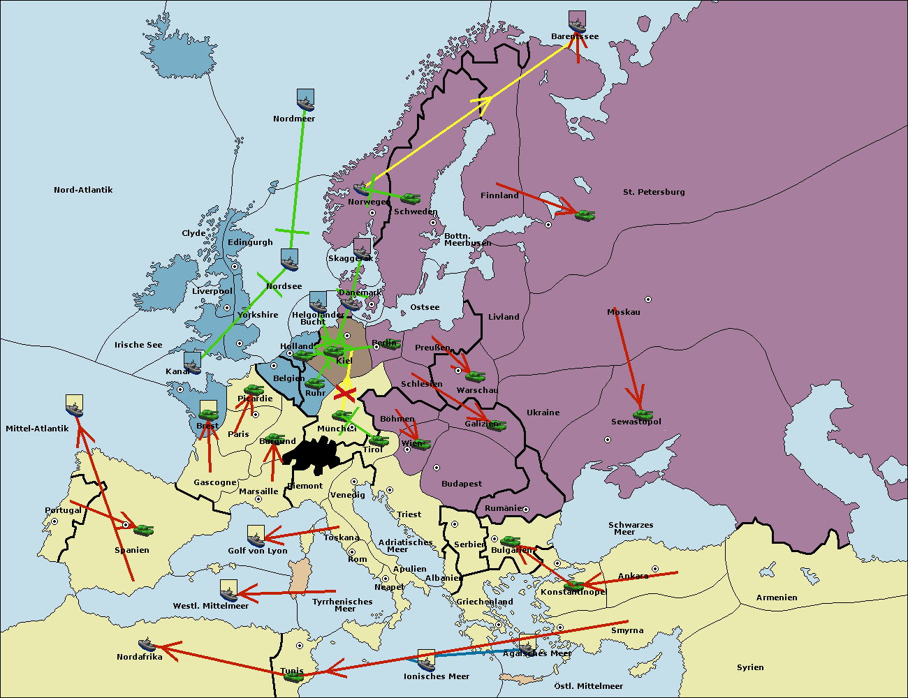 • Die Flotte in St. Petersburg (Nordküste) move nach Barentssee.