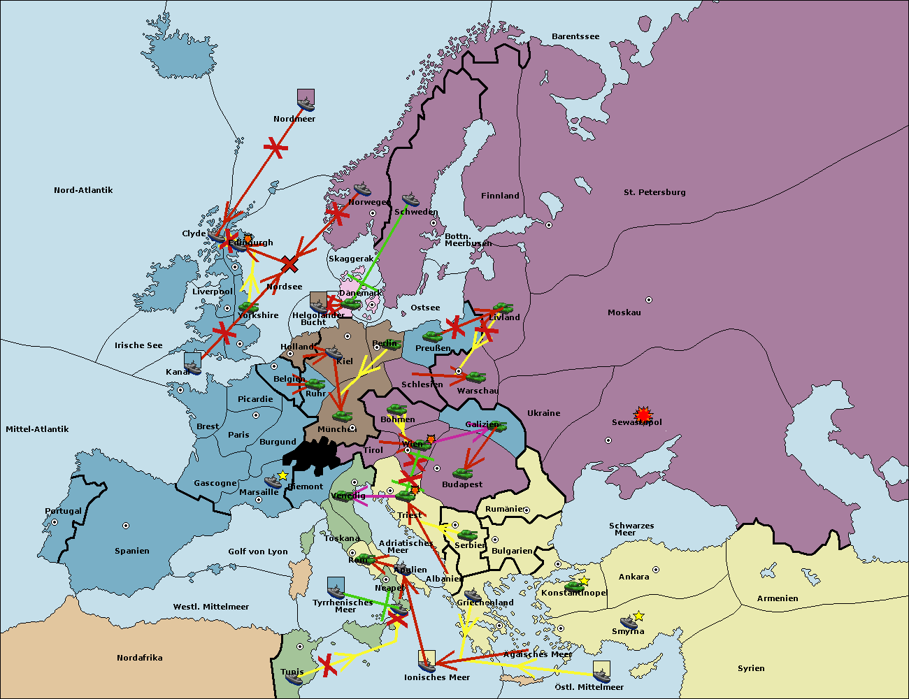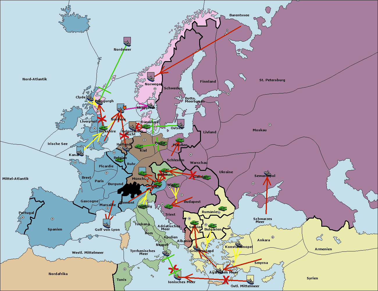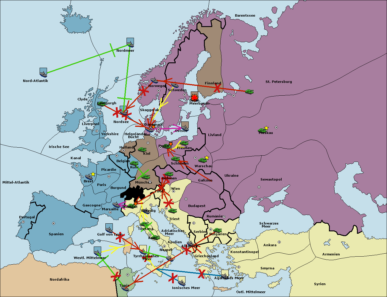 • Die Flotte in Holland support move nach Belgien von Ruhr. (gescheitert)
