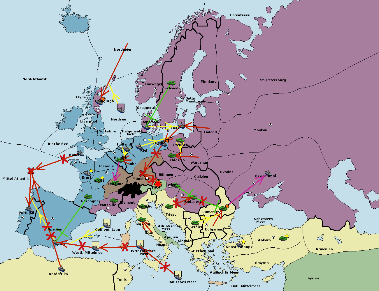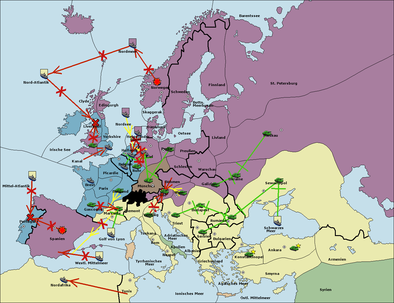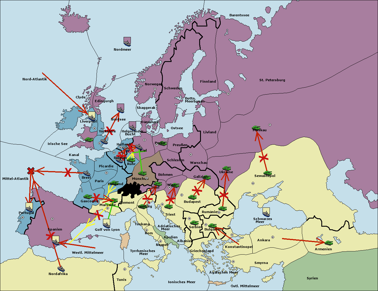 • Die Armee in Marseille support move nach Spanien von westl. Mittelmeer. (gescheitert)
