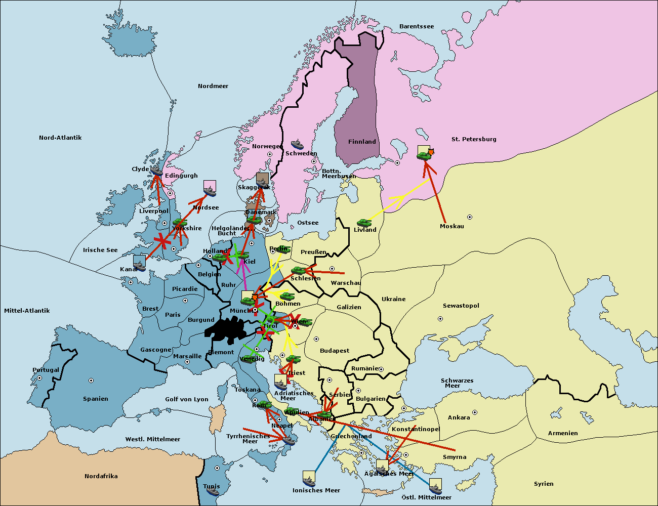 • Die Armee in St. Petersburg wird zerstörtFlotte in St. Petersburg gebaut.