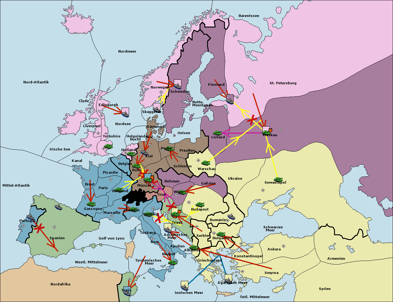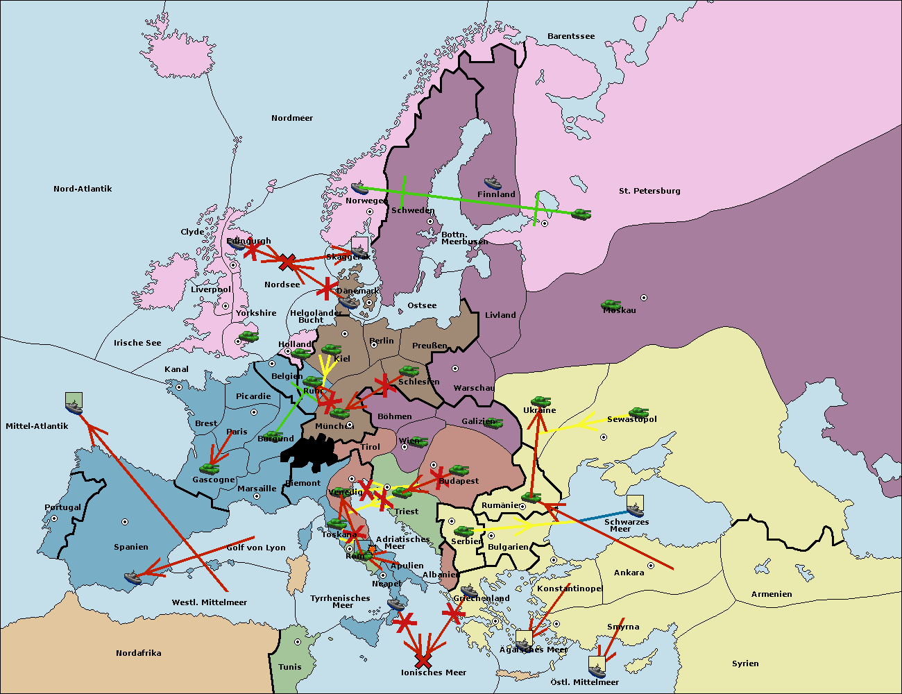 • Die Armee in Triest support move nach Tirol von Wien.