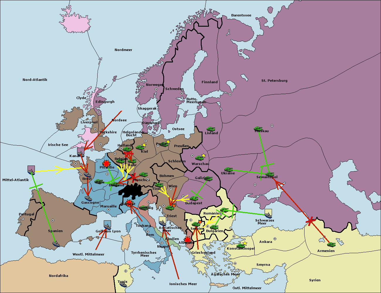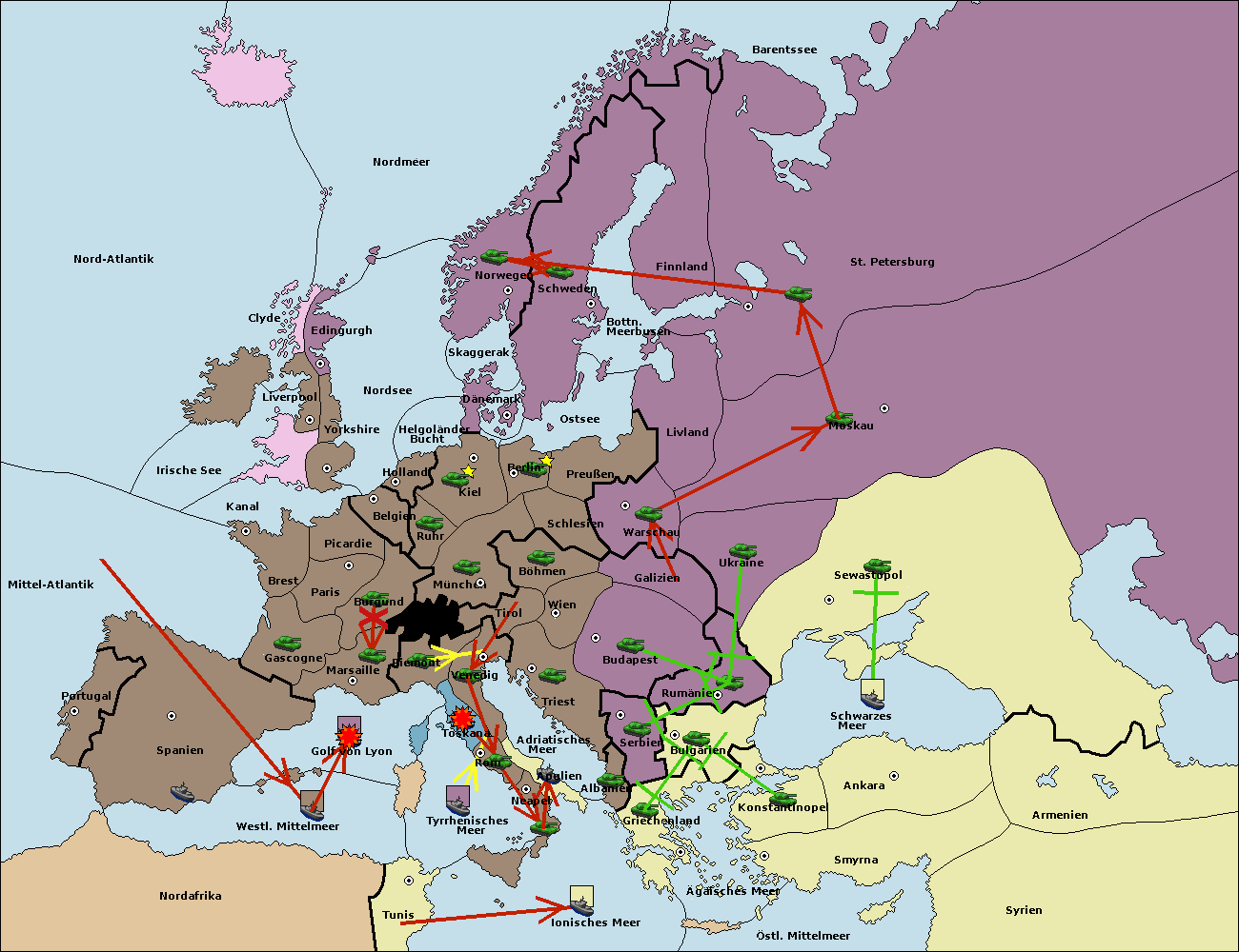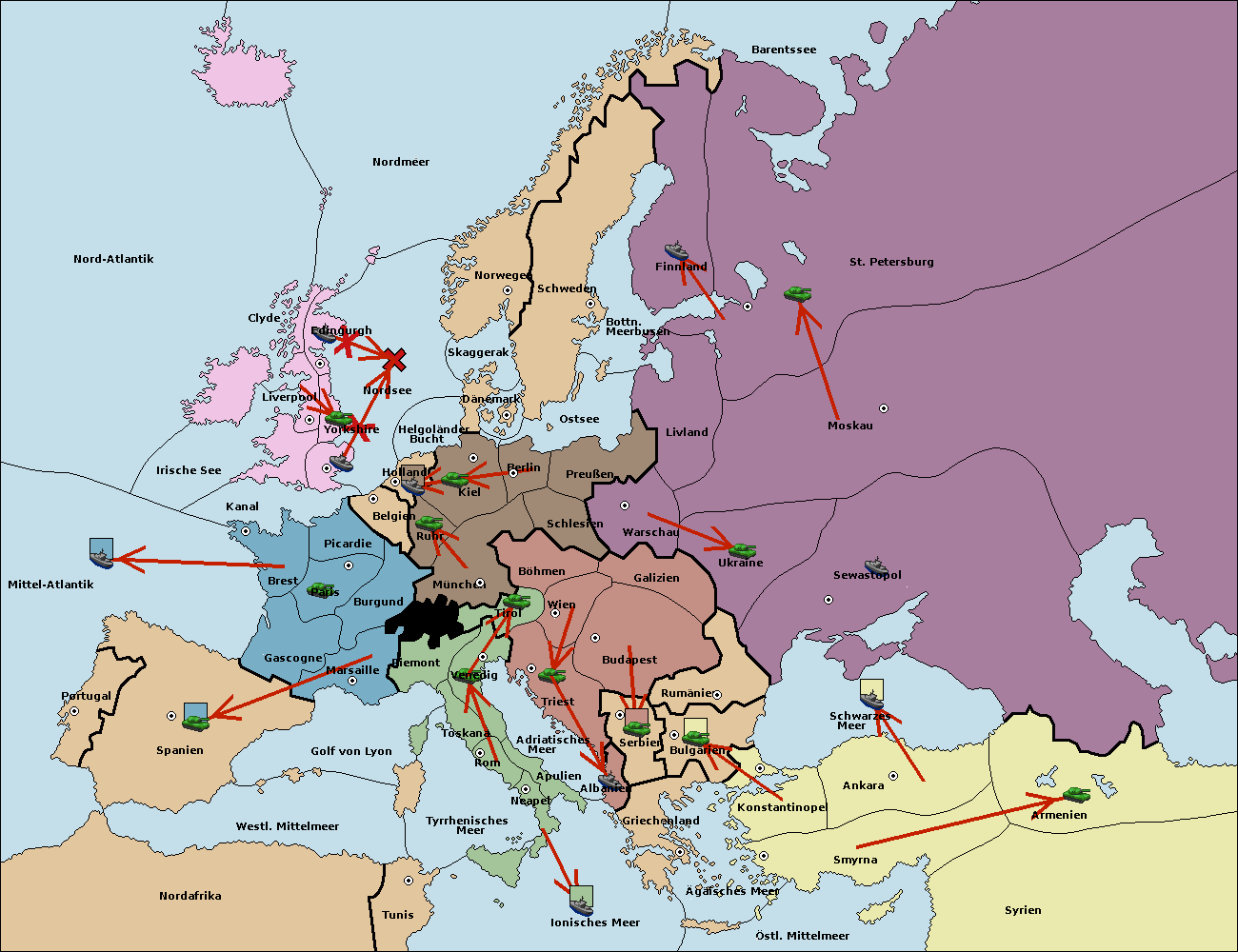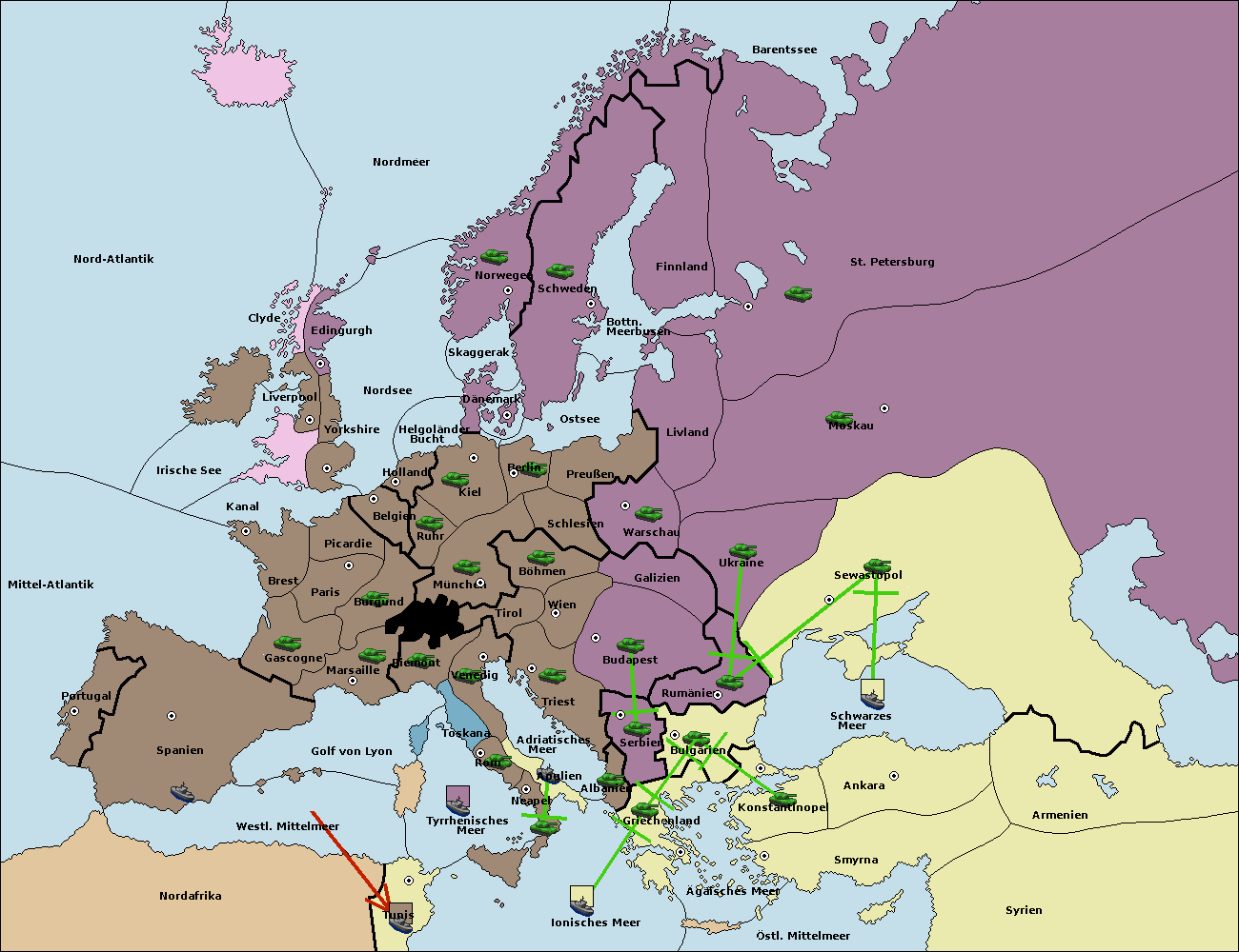 • Die Flotte in St. Petersburg (Nordküste) move nach Norwegen.