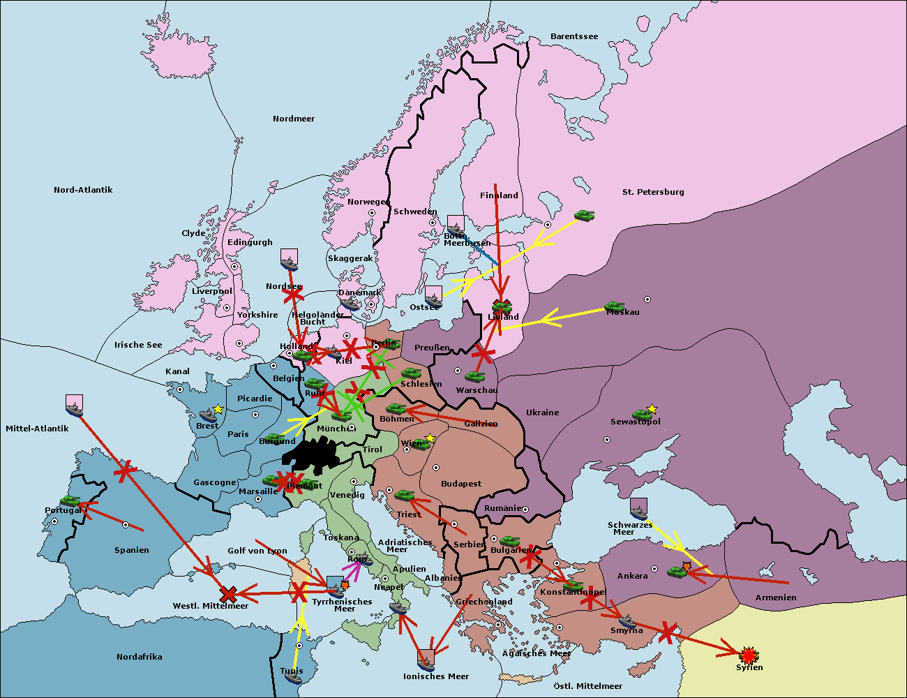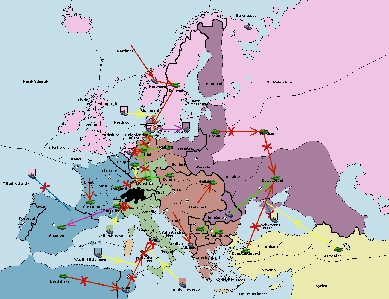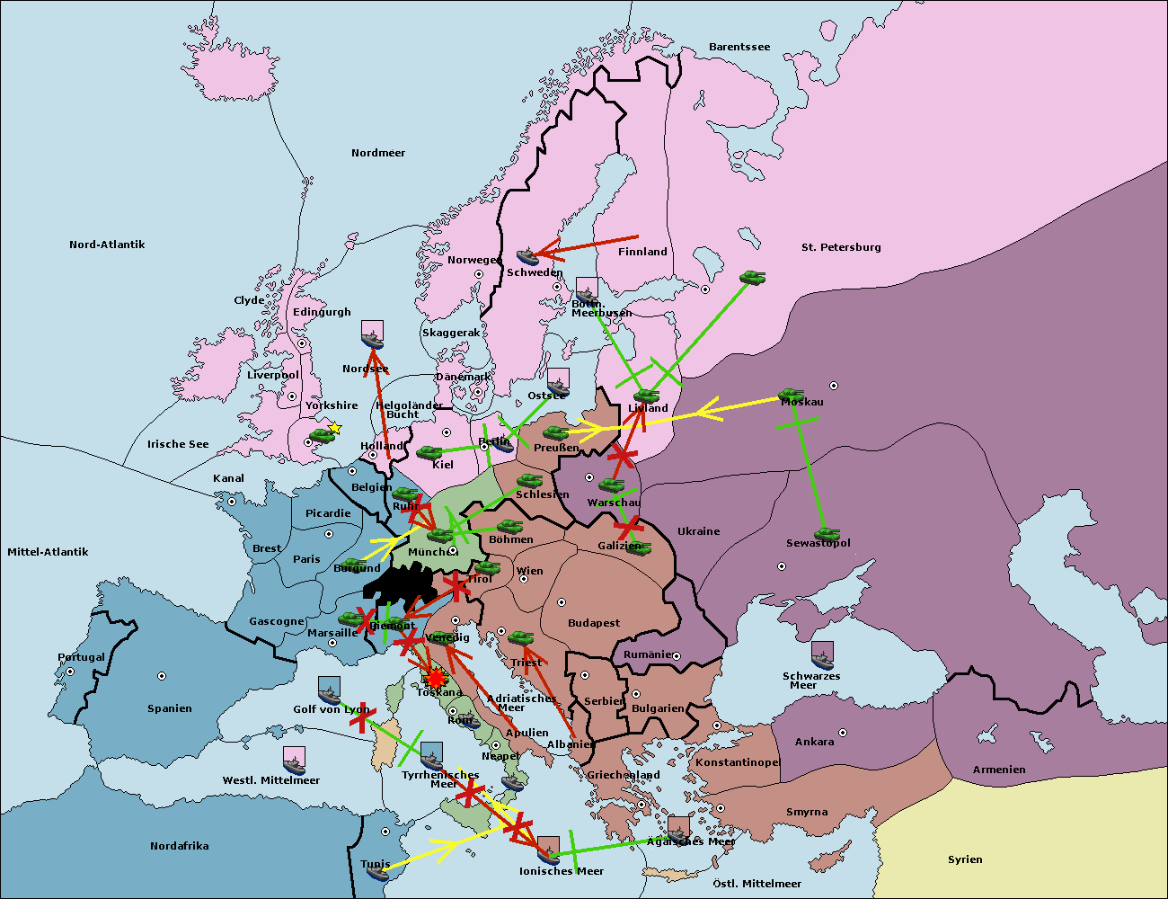 • Die Flotte in Golf von Lyon move nach Toskana. (gescheitert)