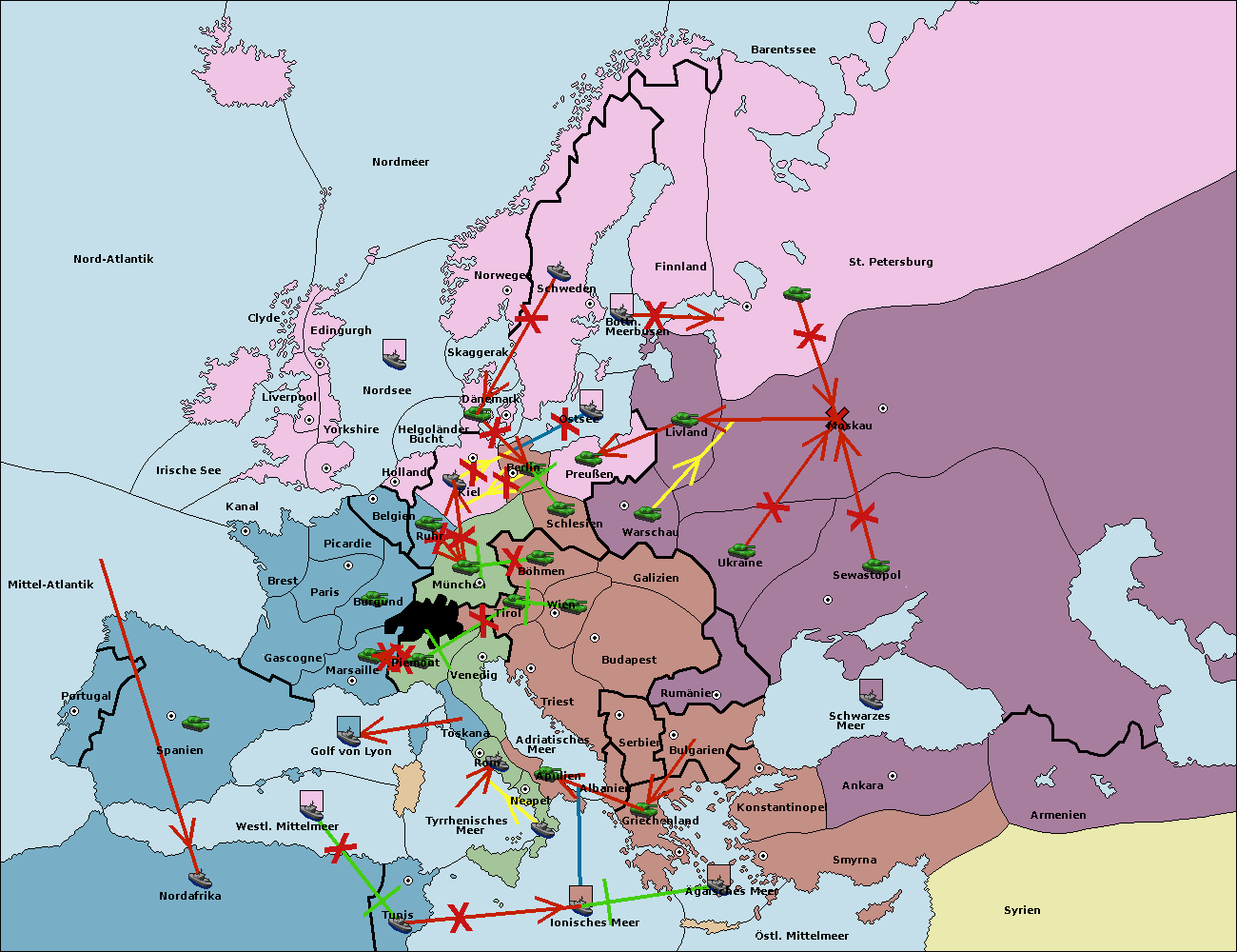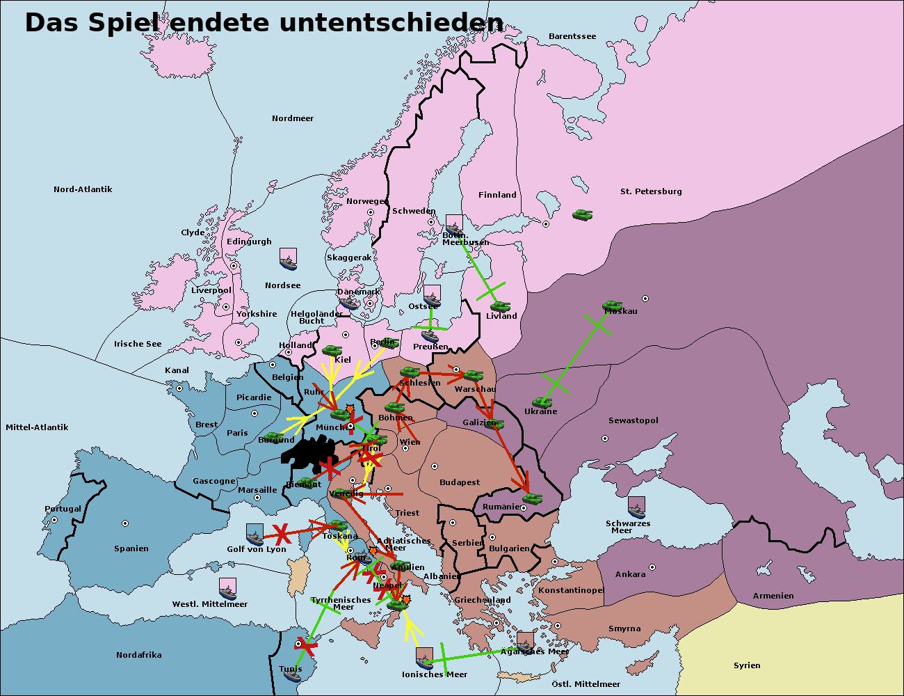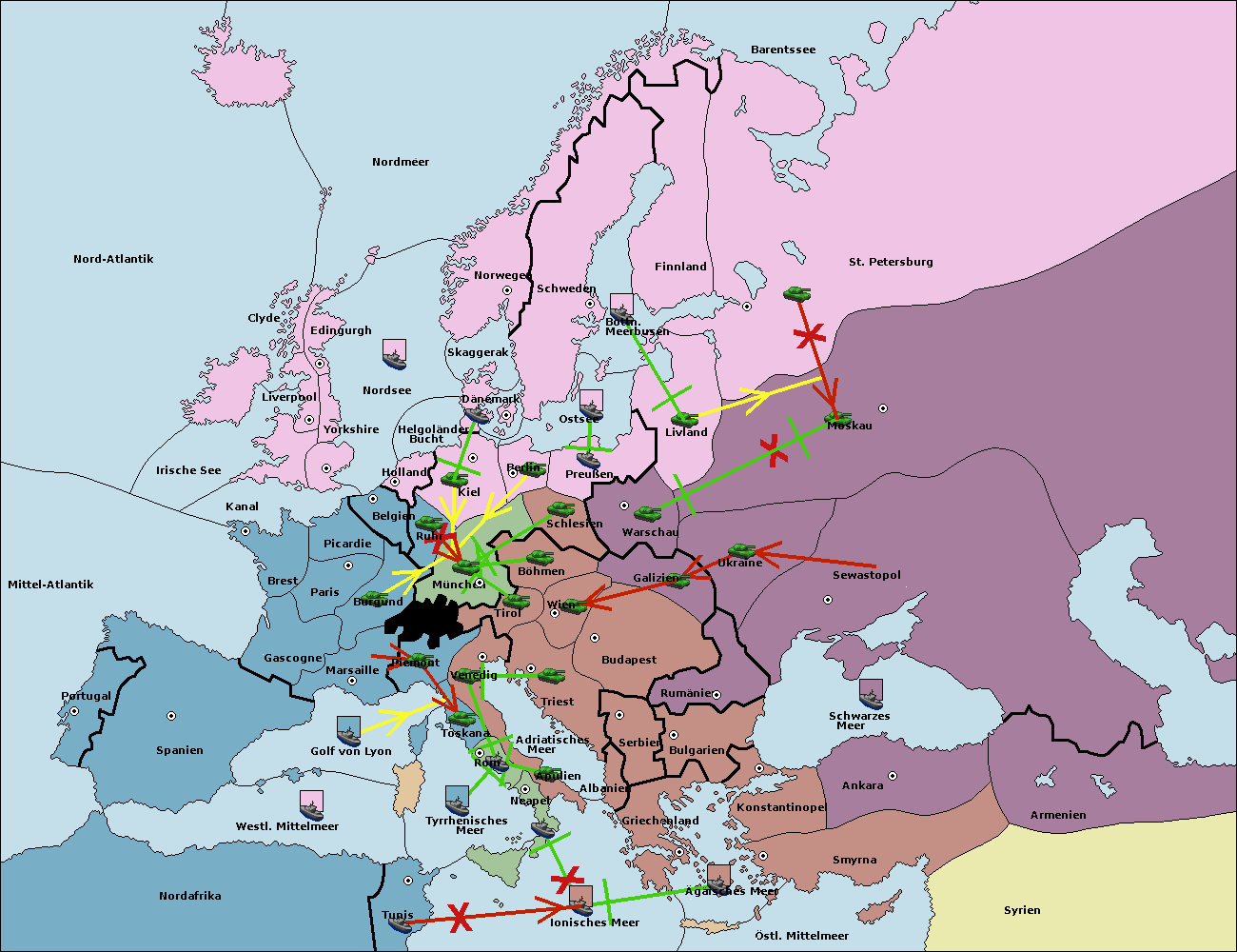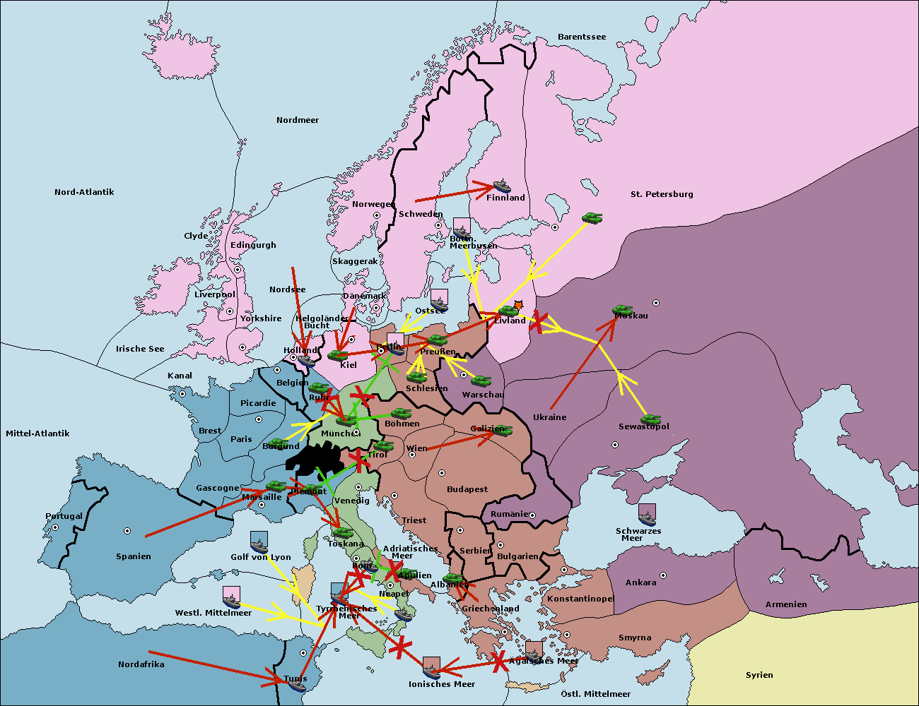 • Die Armee in München wird zerstörtFlotte in München gebaut.