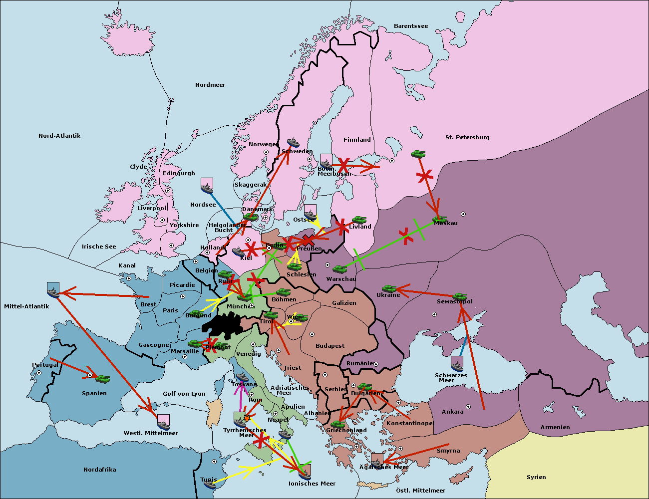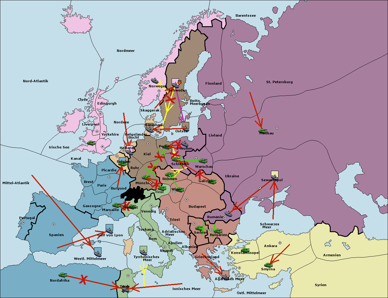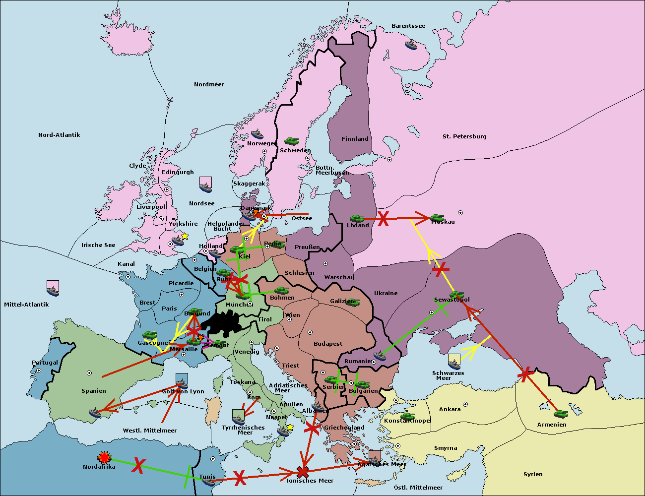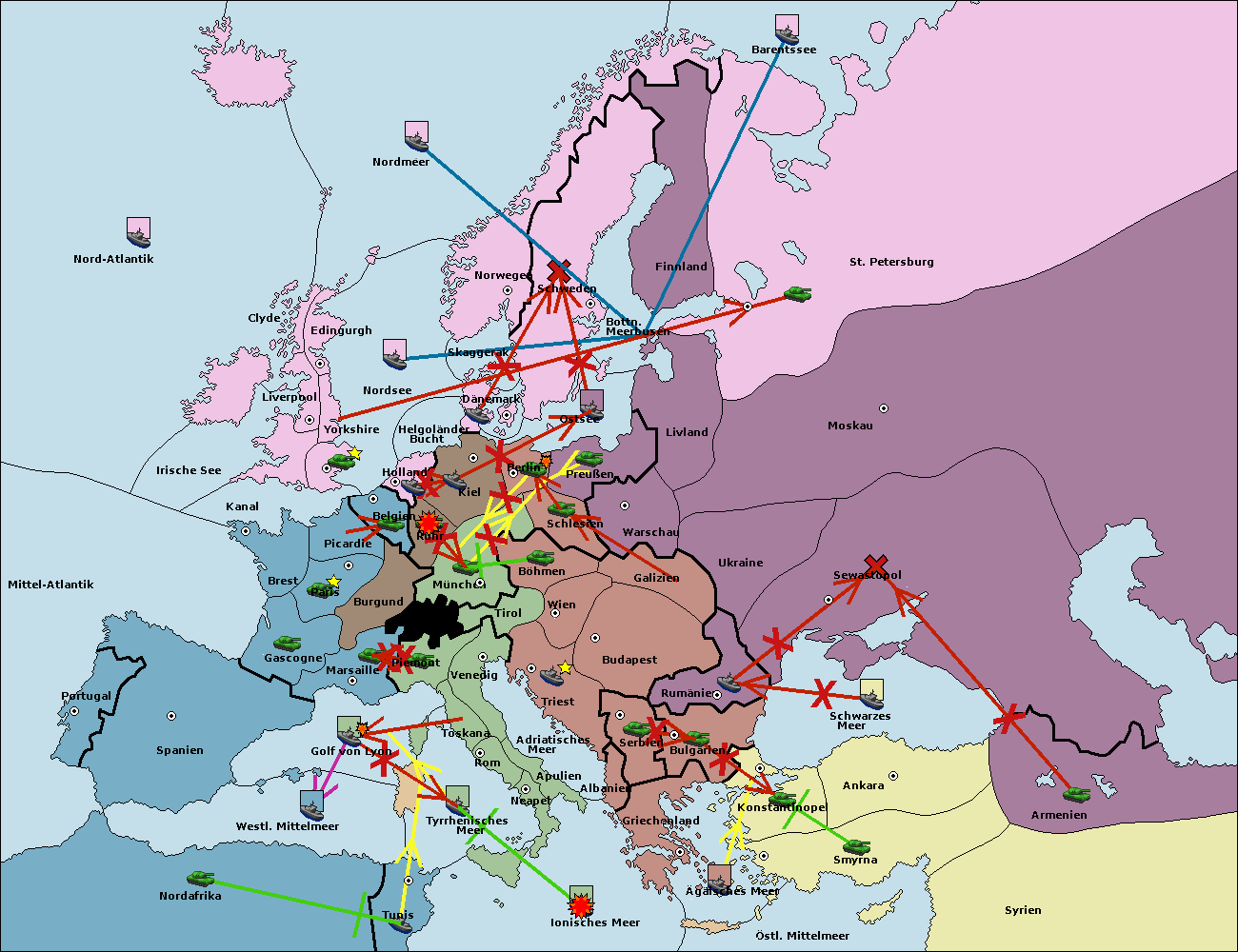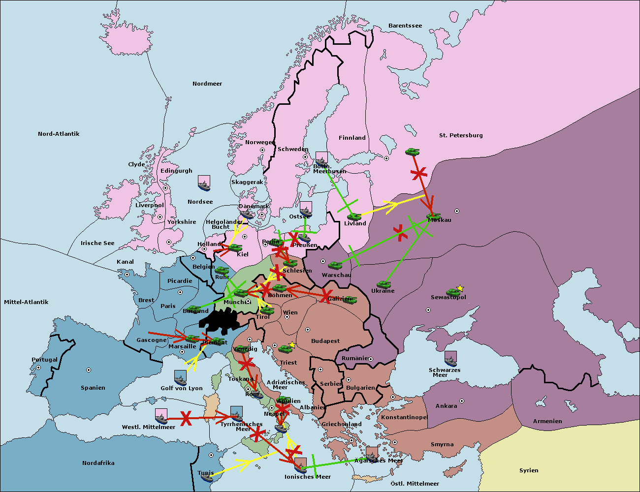 • Die Armee in München wird zerstörtFlotte in München gebaut.