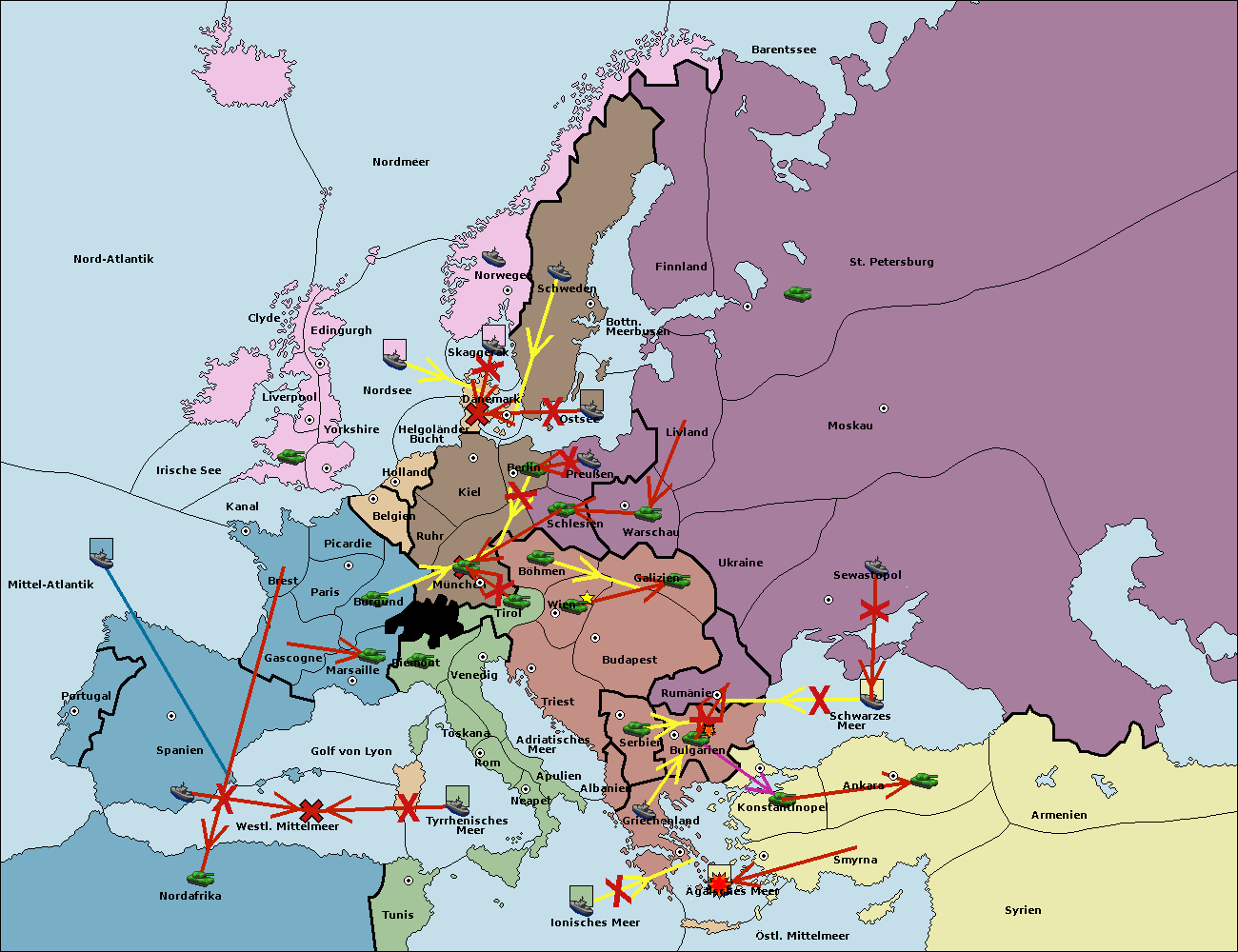 • Die Armee in Bulgarien move nach Griechenland. (gescheitert)