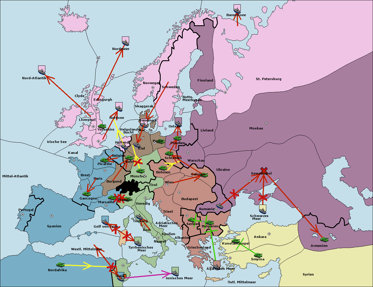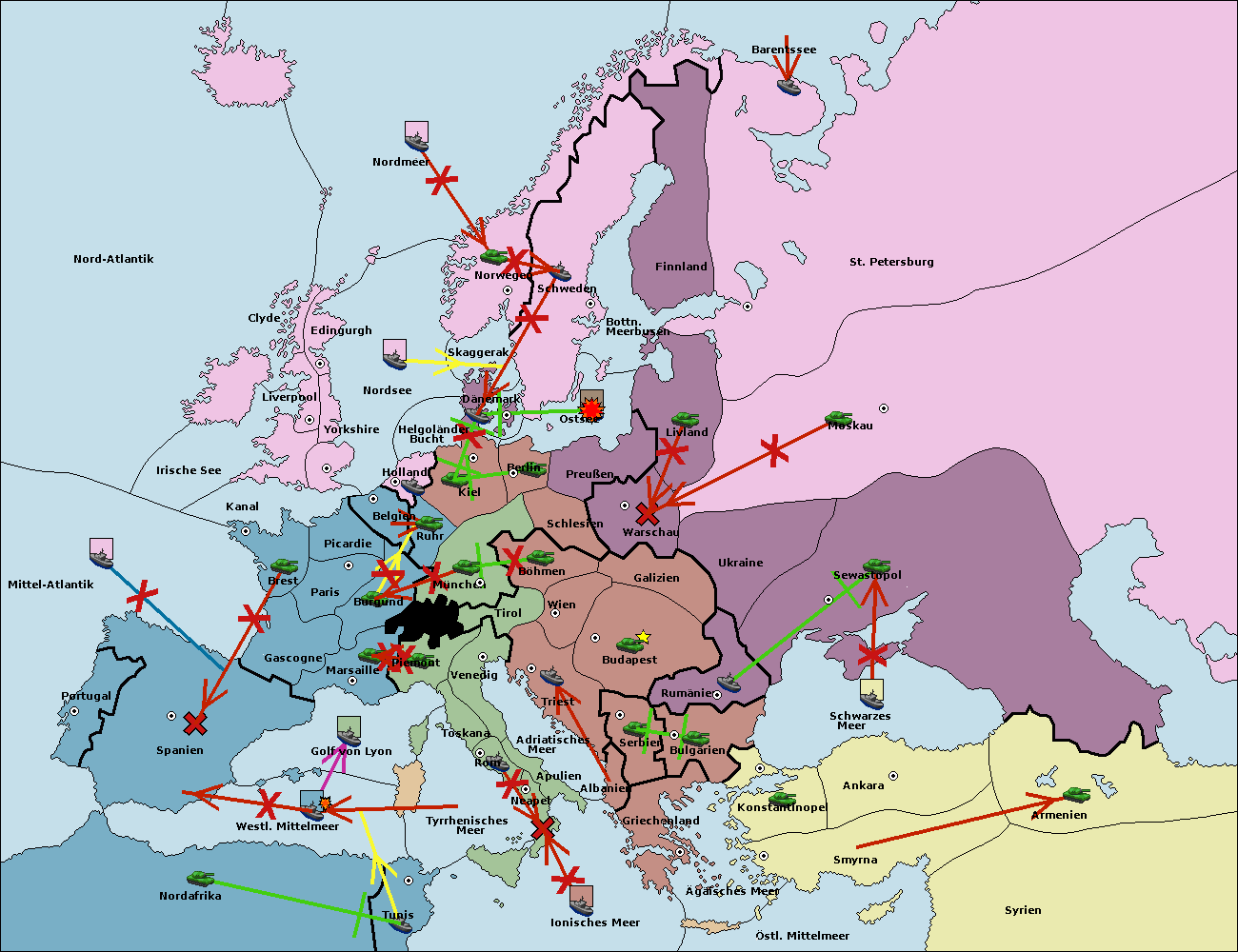• Die Armee in Kiel support move nach München von Ruhr.