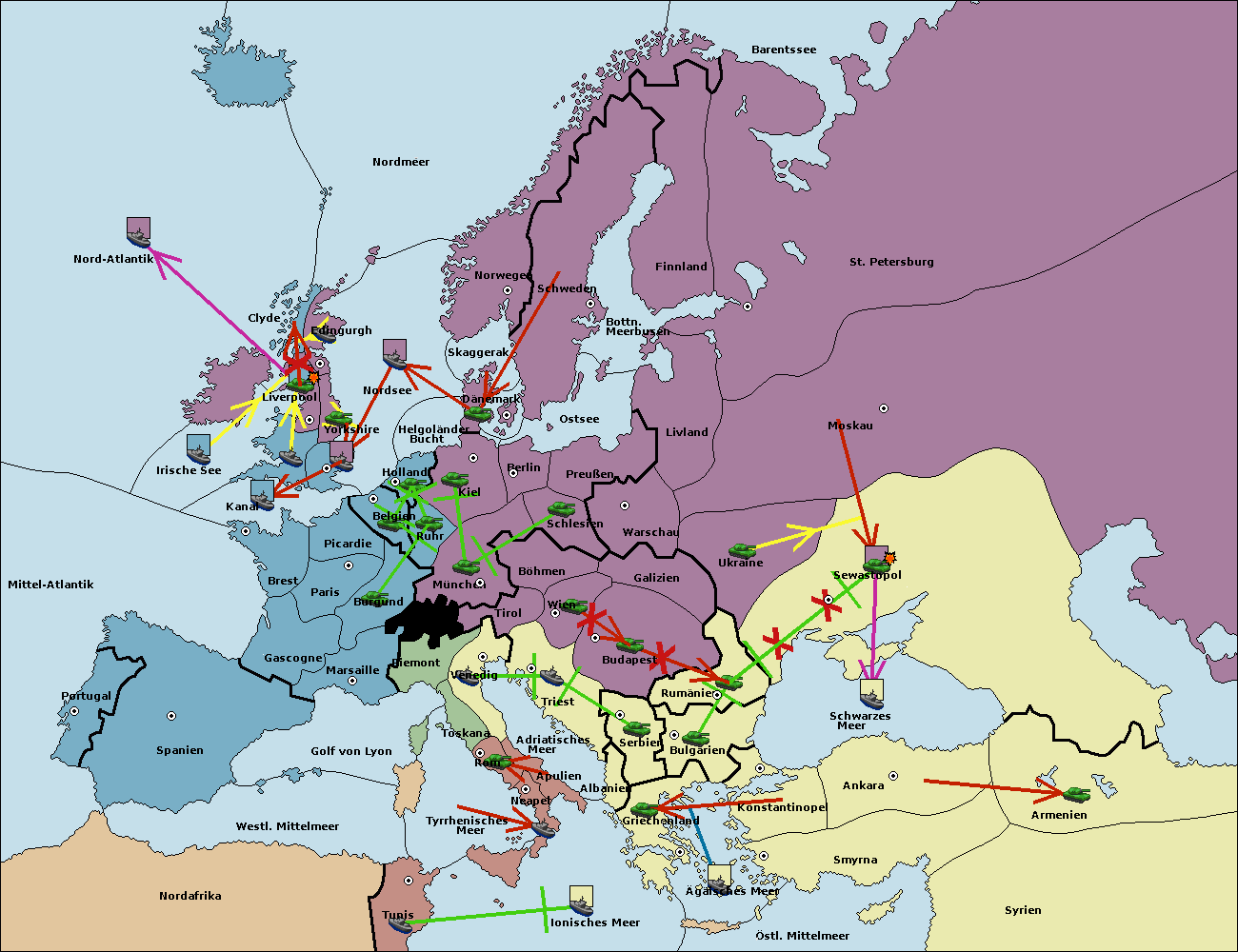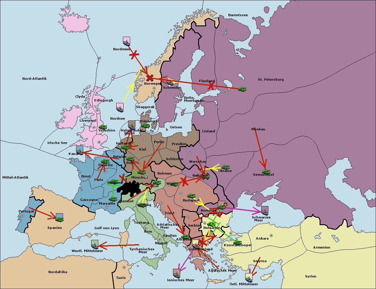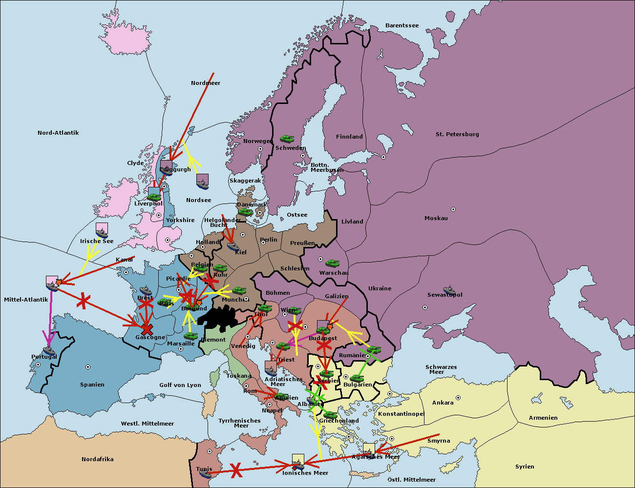• Die Armee in Konstantinopel support hold nach Bulgarien.