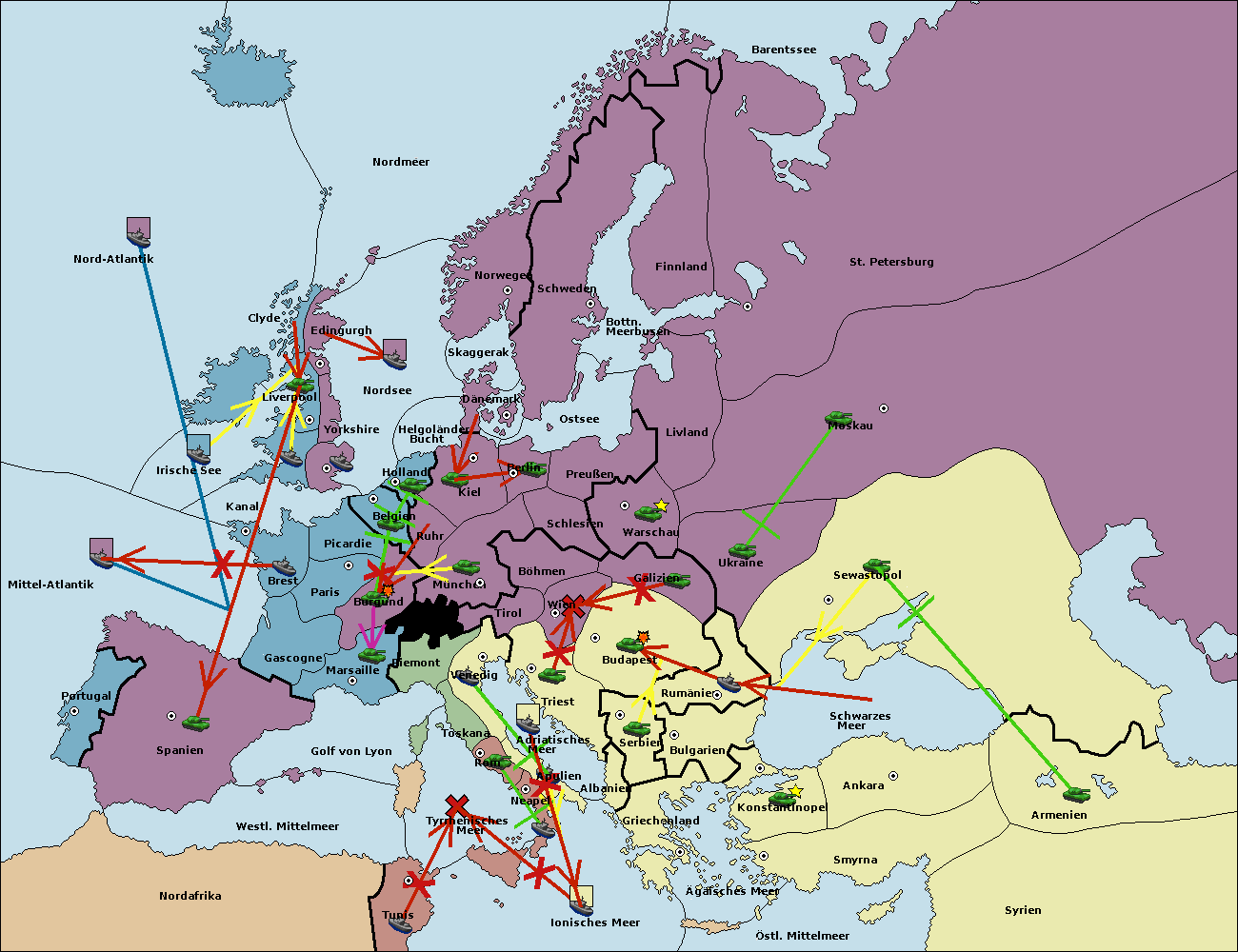 • Die Armee in Wien support move nach Triest von Budapest.