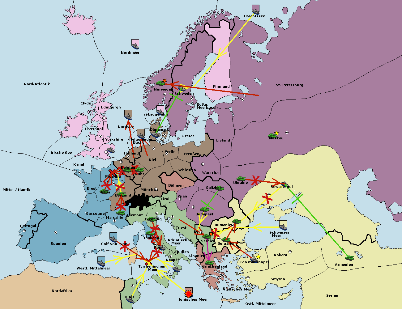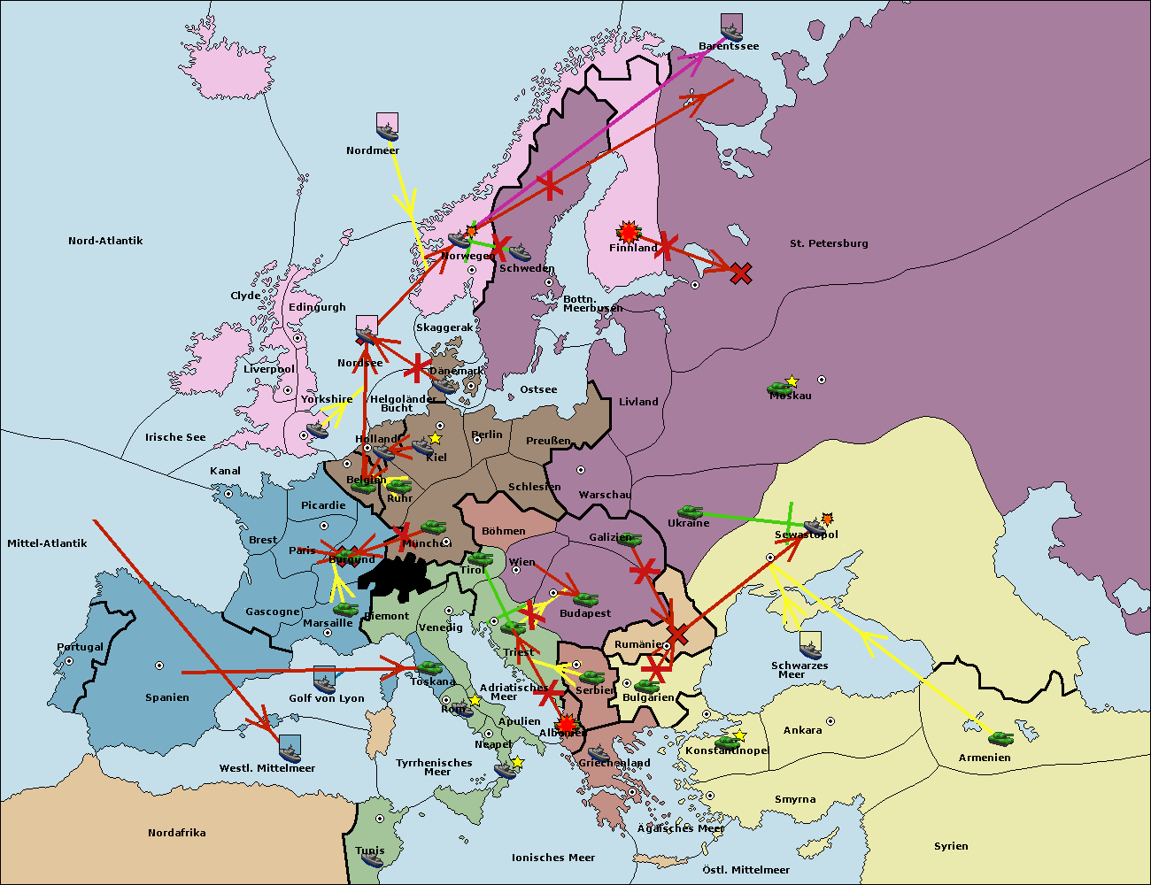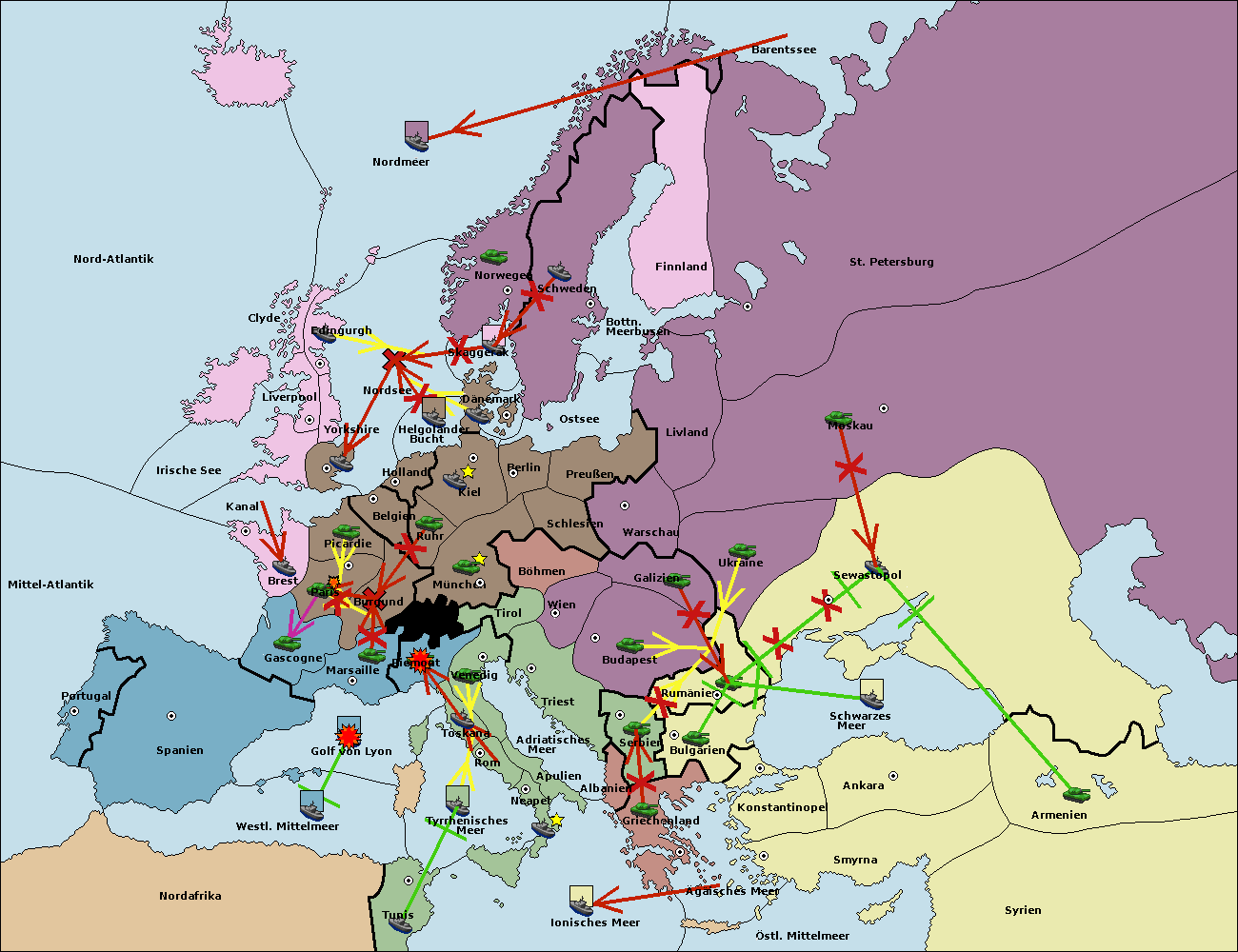 • Die Flotte in St. Petersburg (Nordküste) move nach Norwegen.