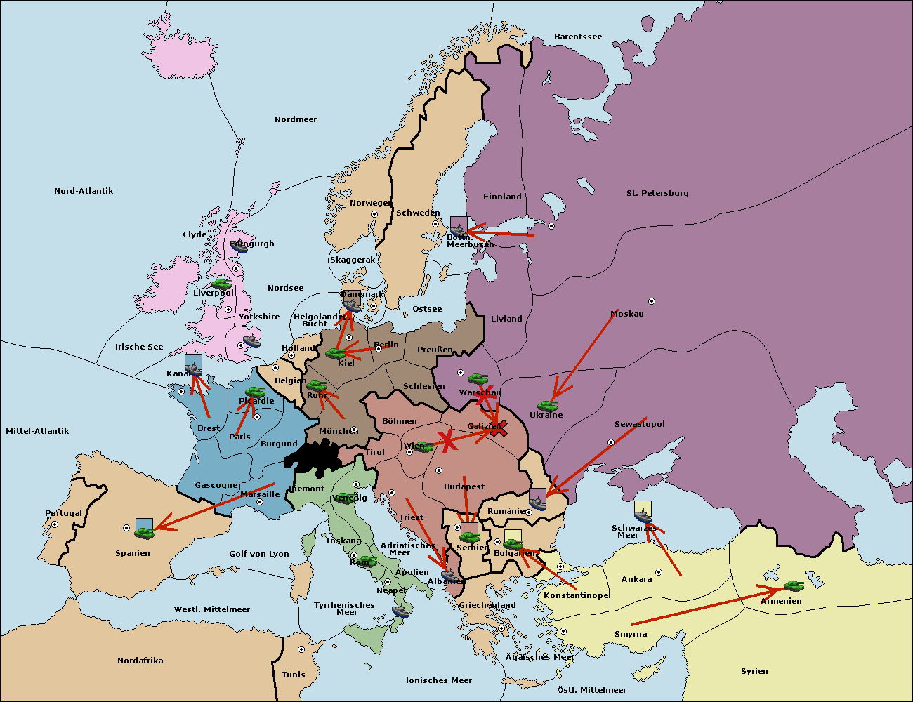 • Die Armee in Wien support move nach Galizien von Budapest.