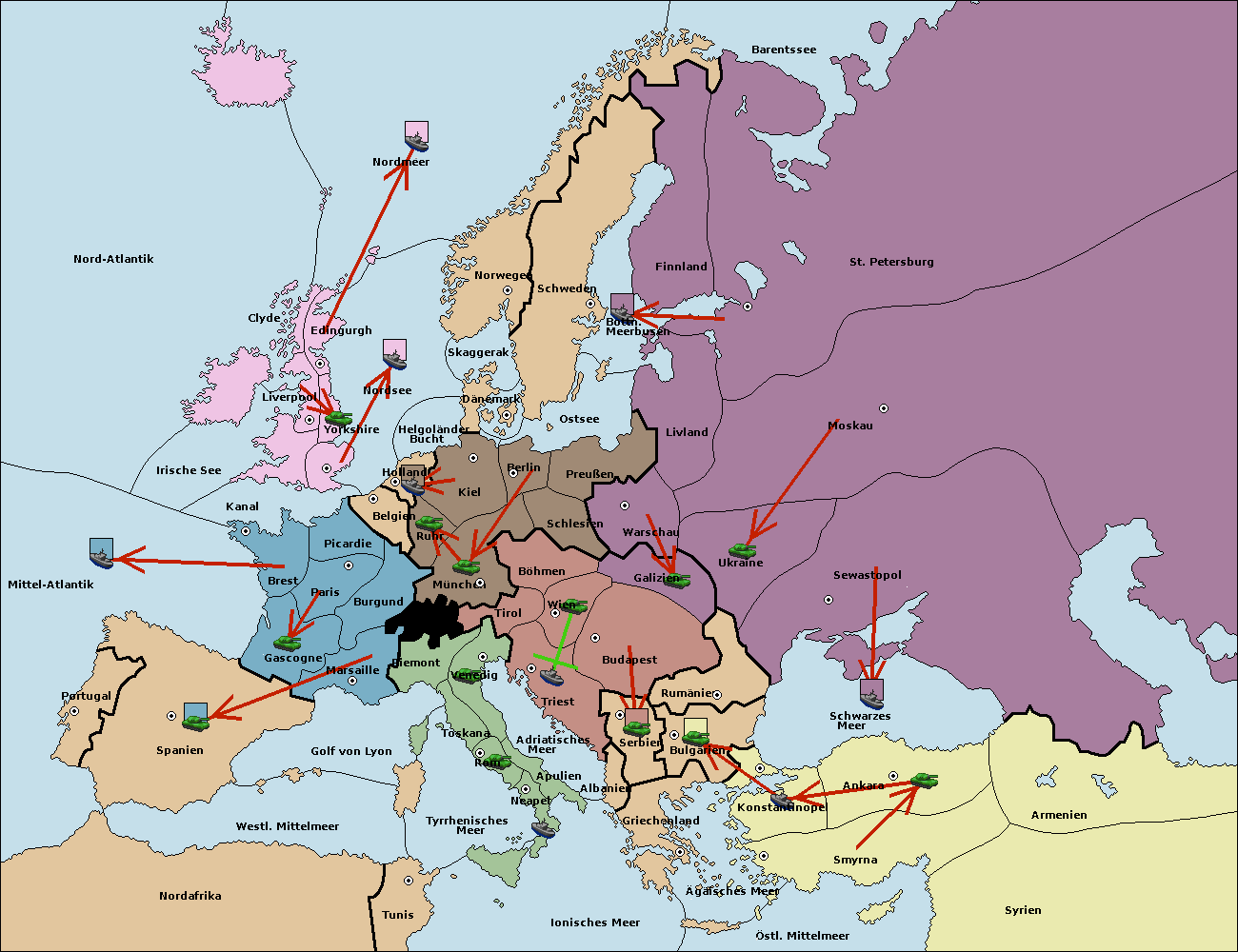 • Die Armee in Budapest support move nach Triest von Serbien.