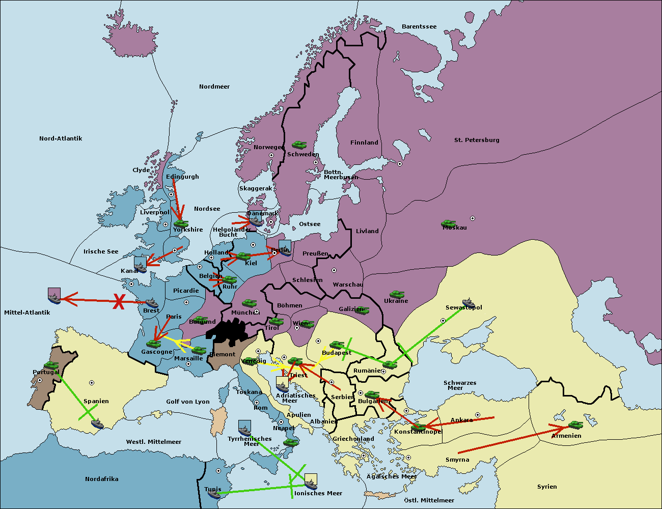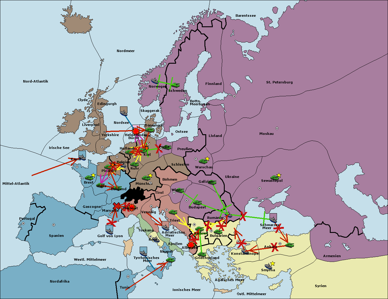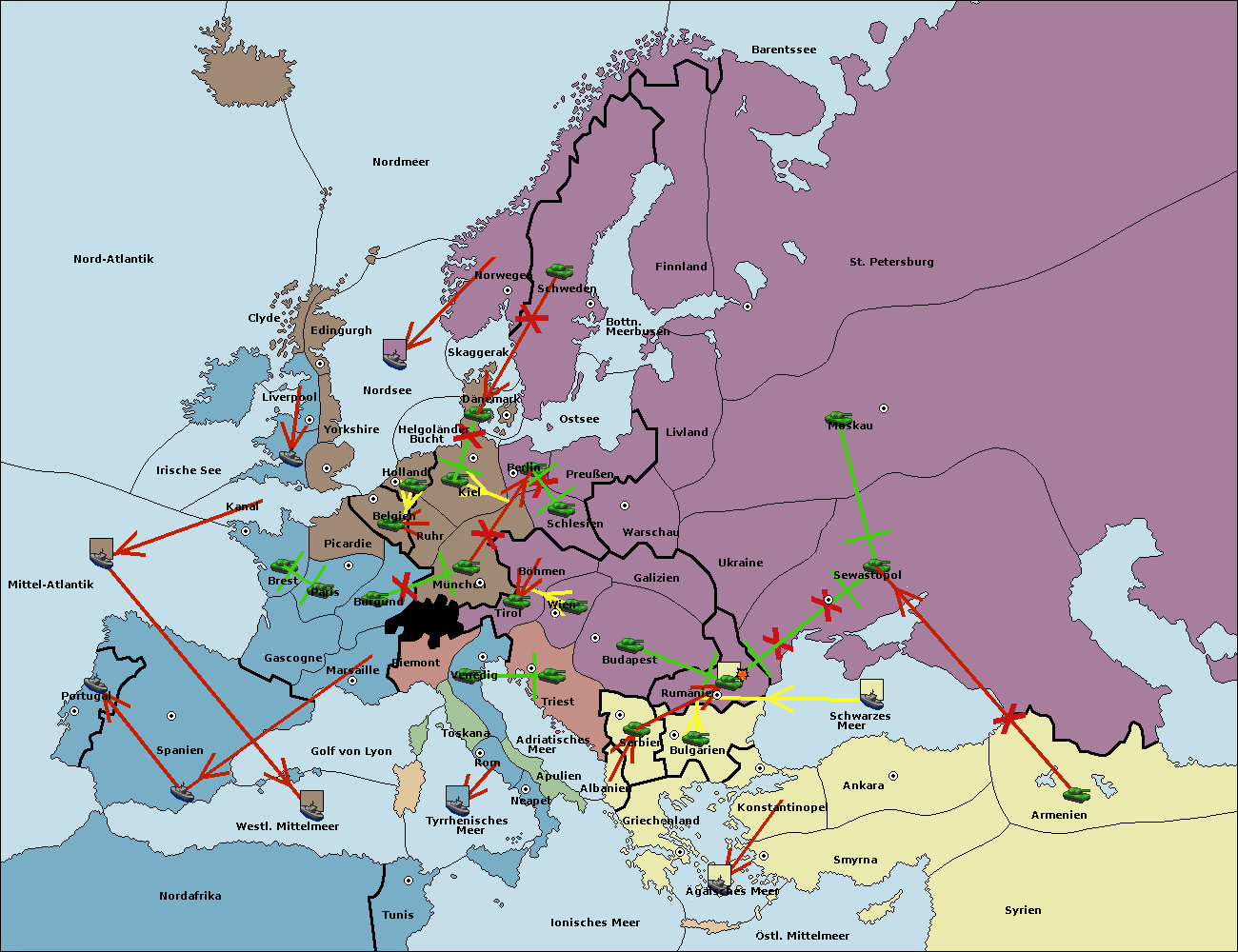 • Die Armee in Konstantinopel support hold nach Bulgarien. (gescheitert)