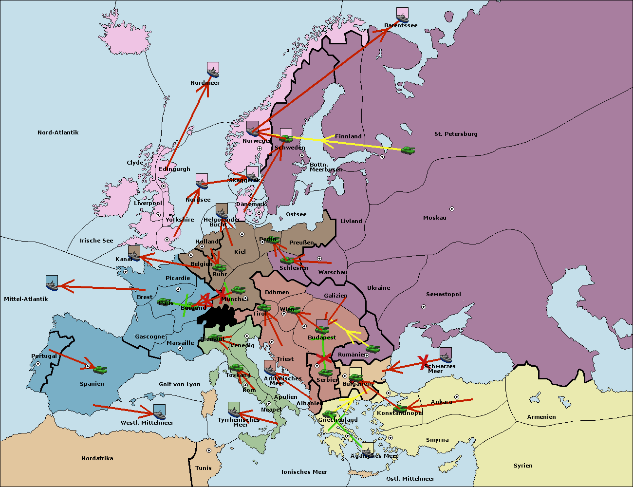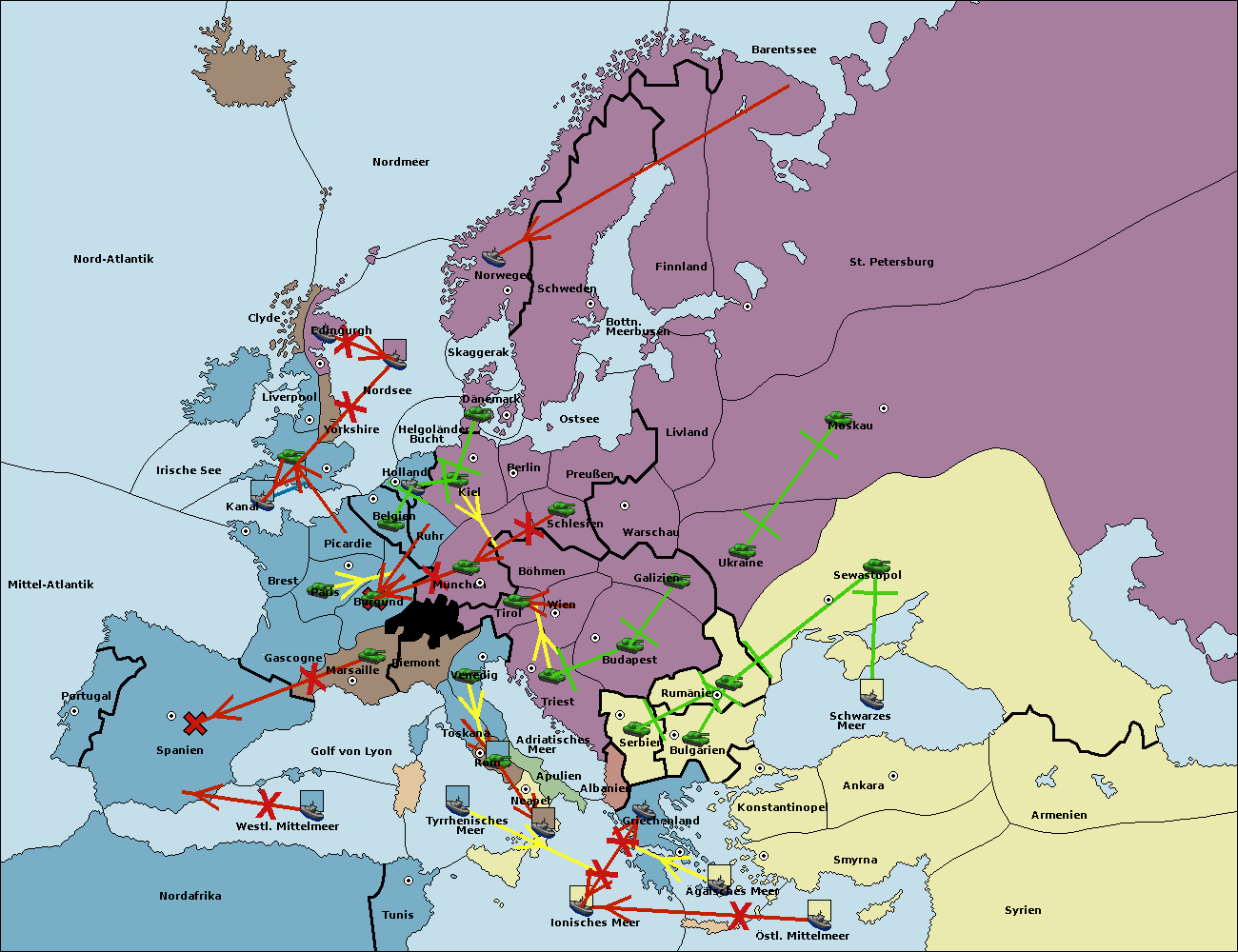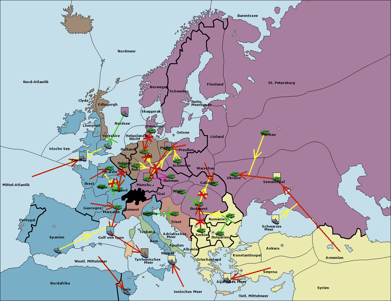• Die Armee in München wird zerstörtFlotte in München gebaut.