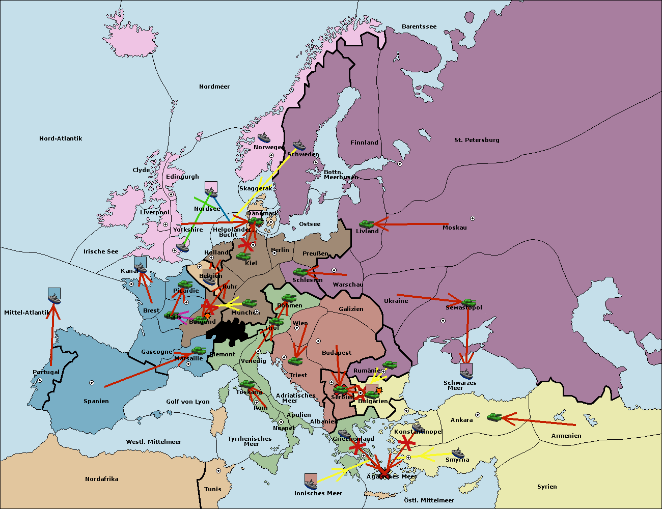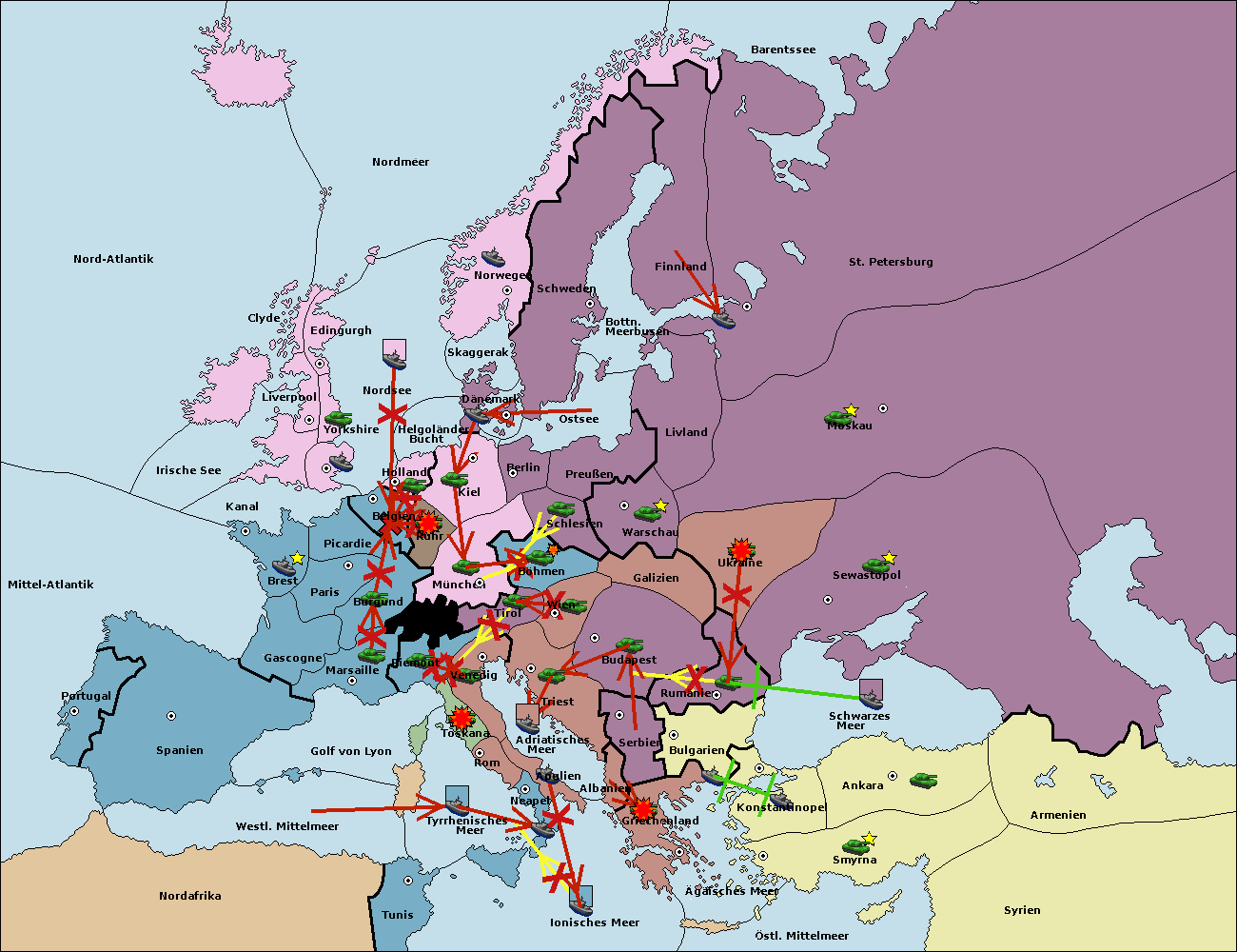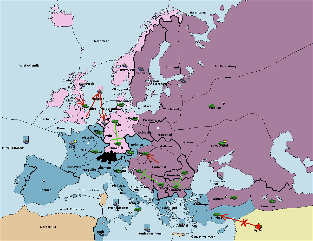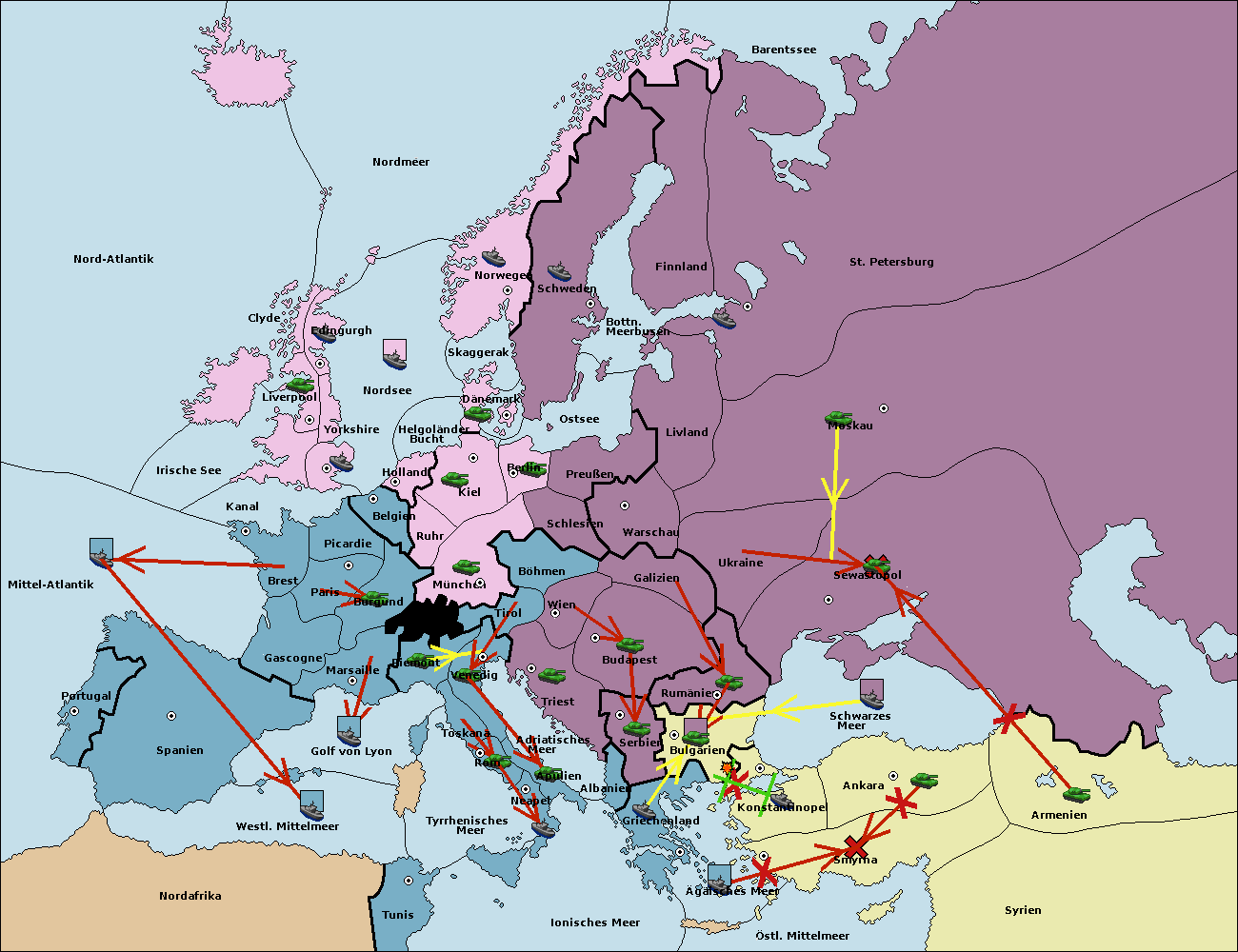 • Die Armee in Bulgarien wird zerstörtFlotte in Bulgarien gebaut.