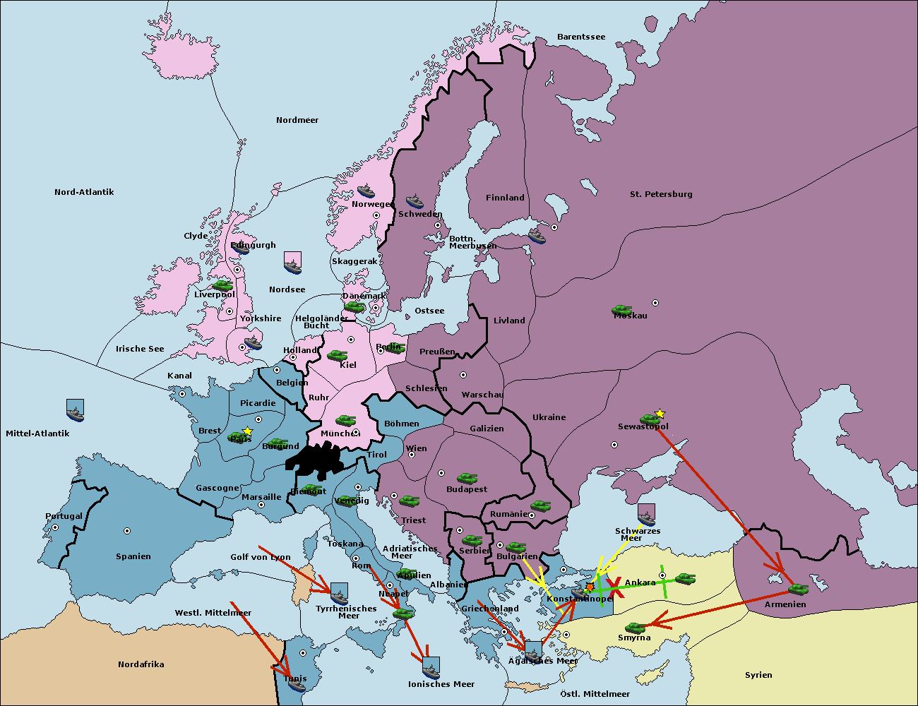 • Die Flotte in Schwarzes Meer support move nach Konstantinopel von Bulgarien. (gescheitert)
