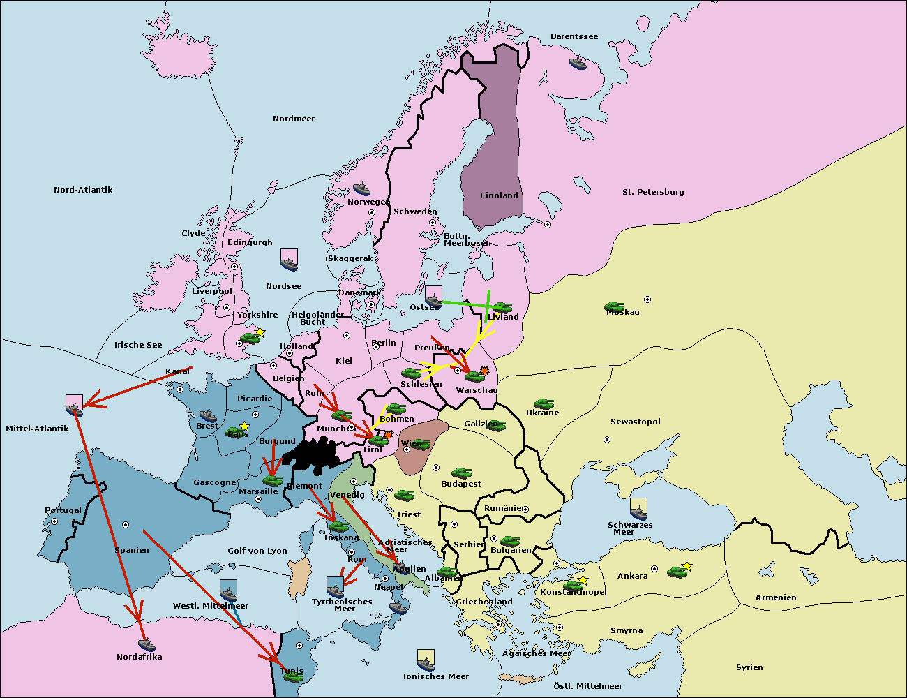 • Die Armee in Warschau support move nach Preußen von Livland.