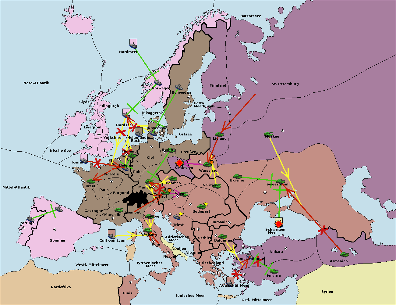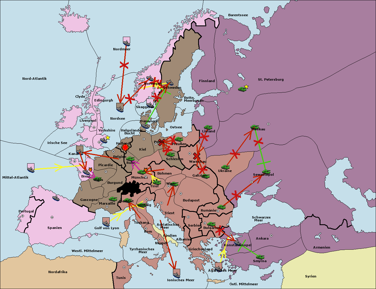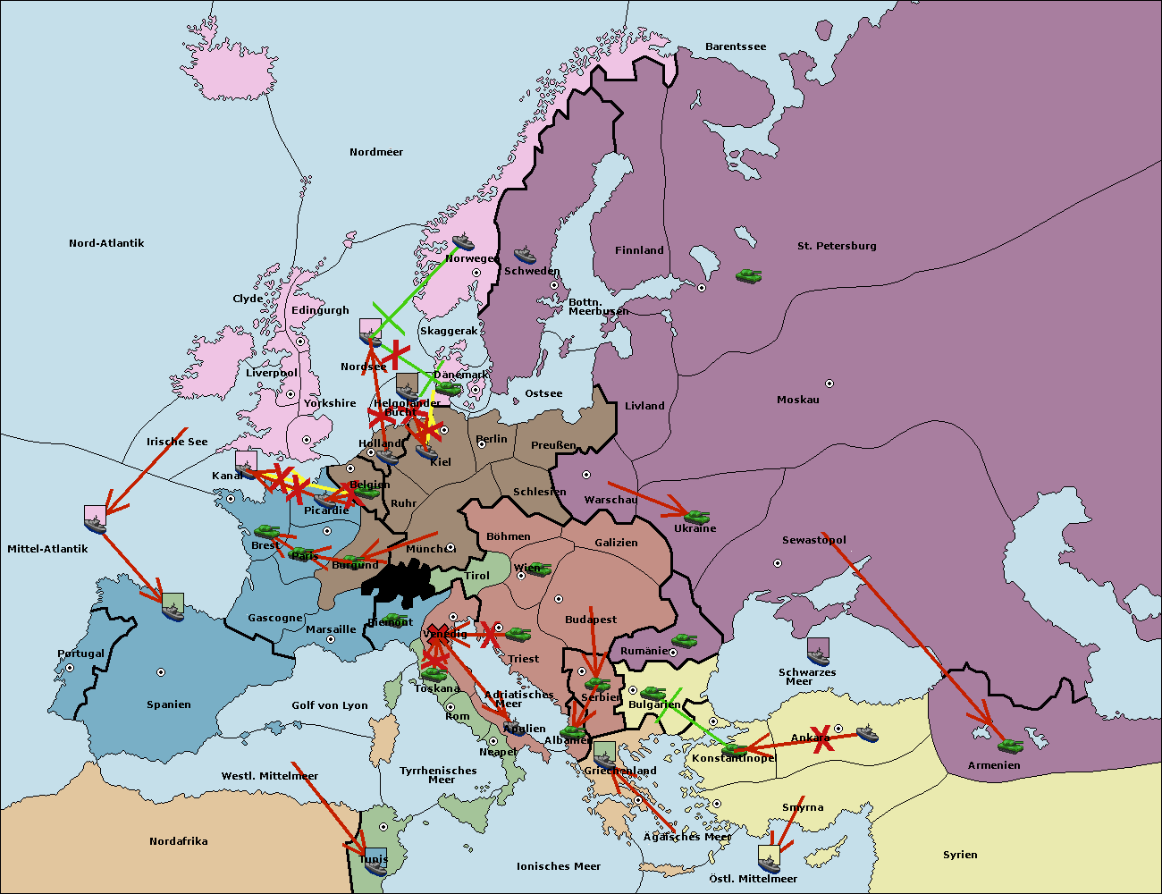 • Die Flotte in Helgoländer Bucht support move nach Holland von Belgien. (gescheitert)