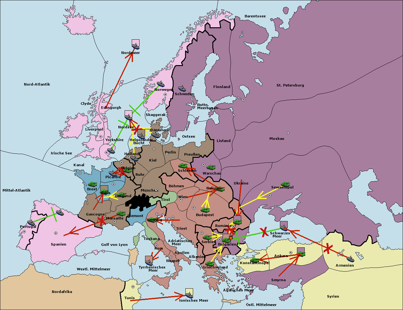 • Die Armee in Konstantinopel support hold nach Bulgarien.