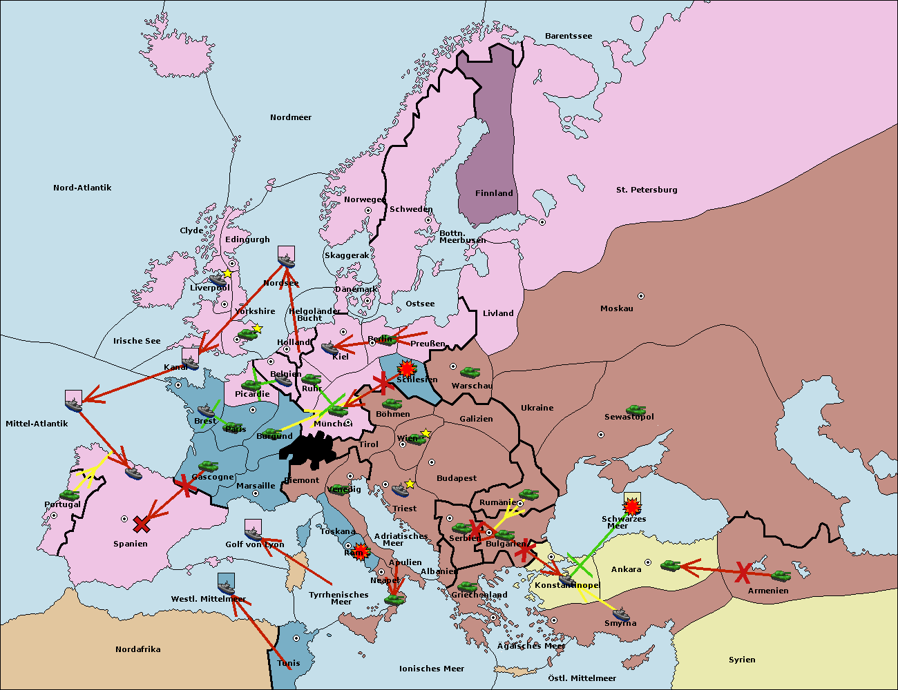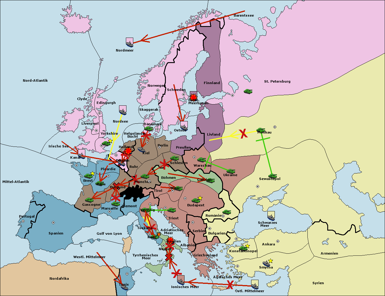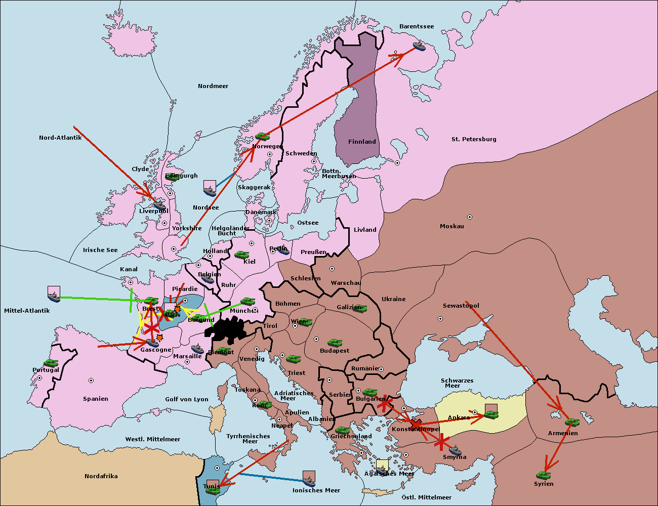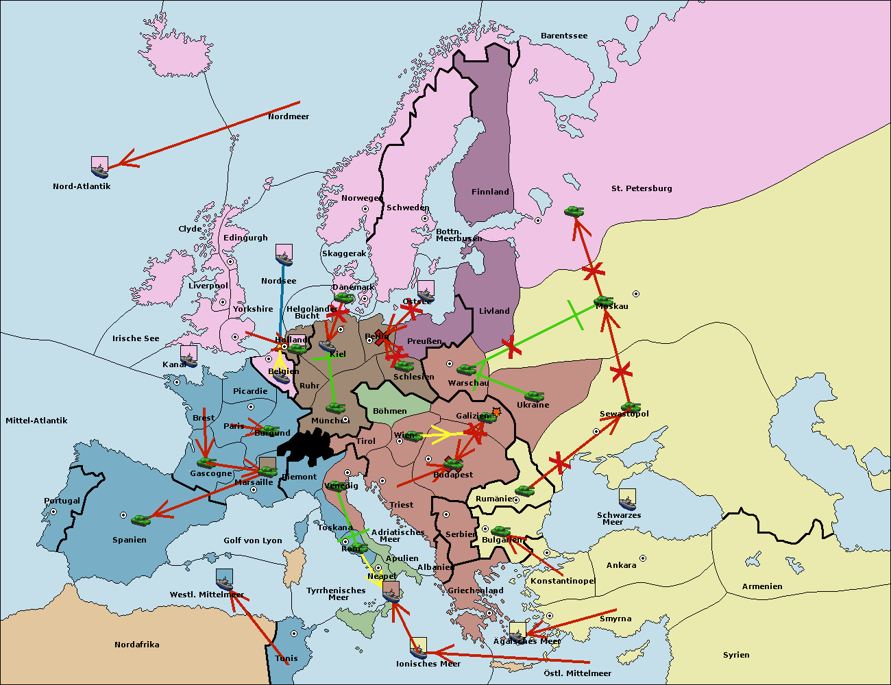 • Die Flotte in Spanien (Südküste) move nach westl. Mittelmeer.