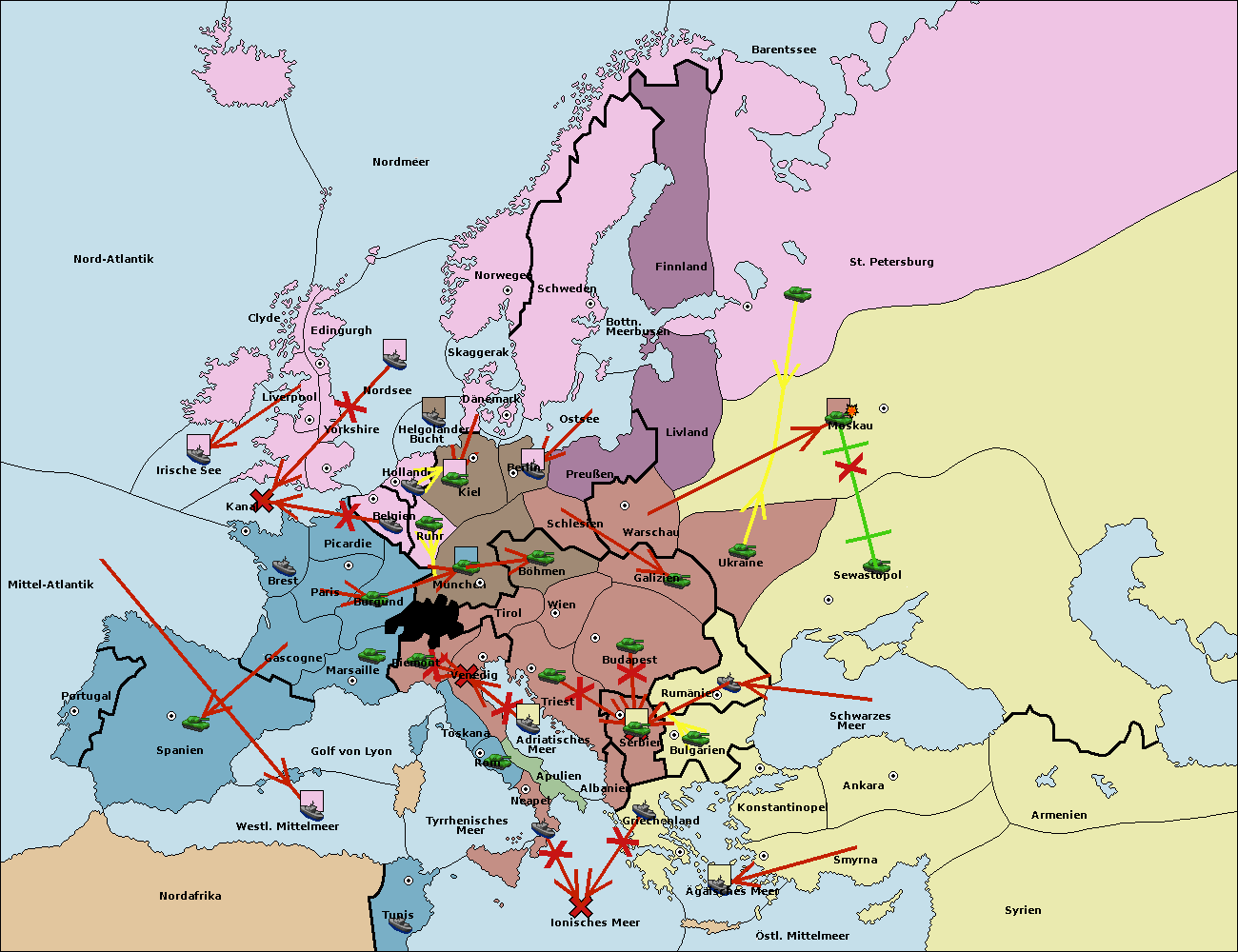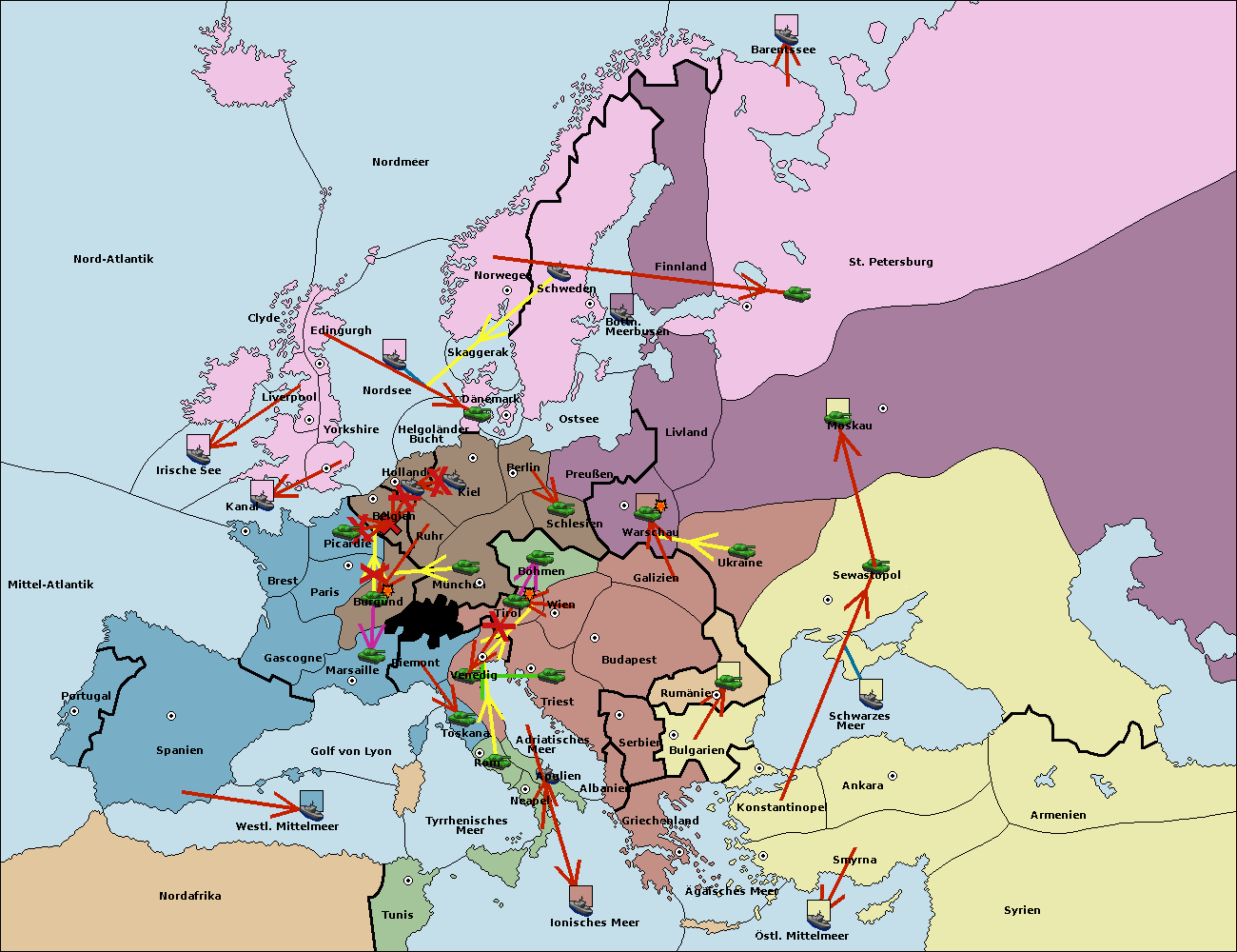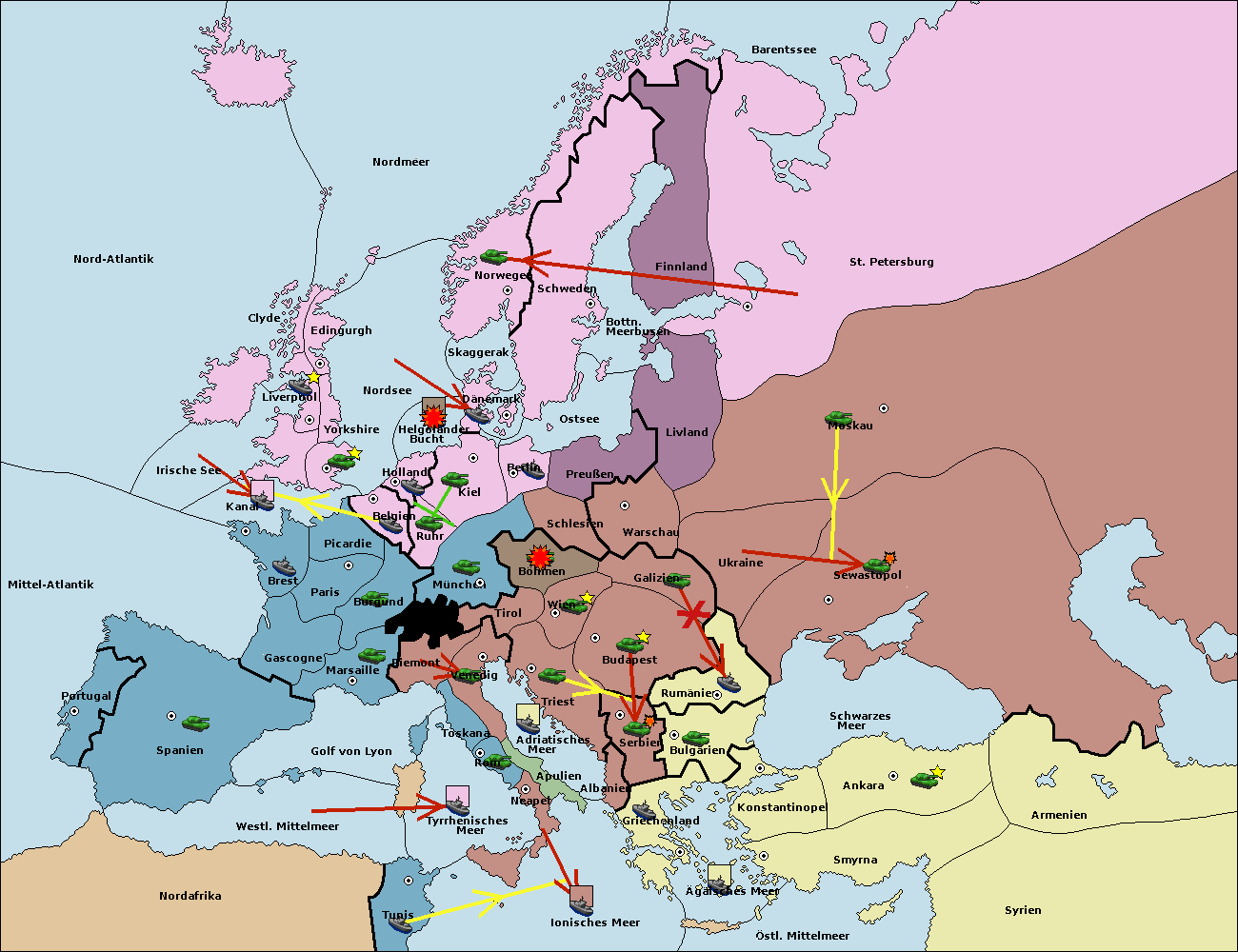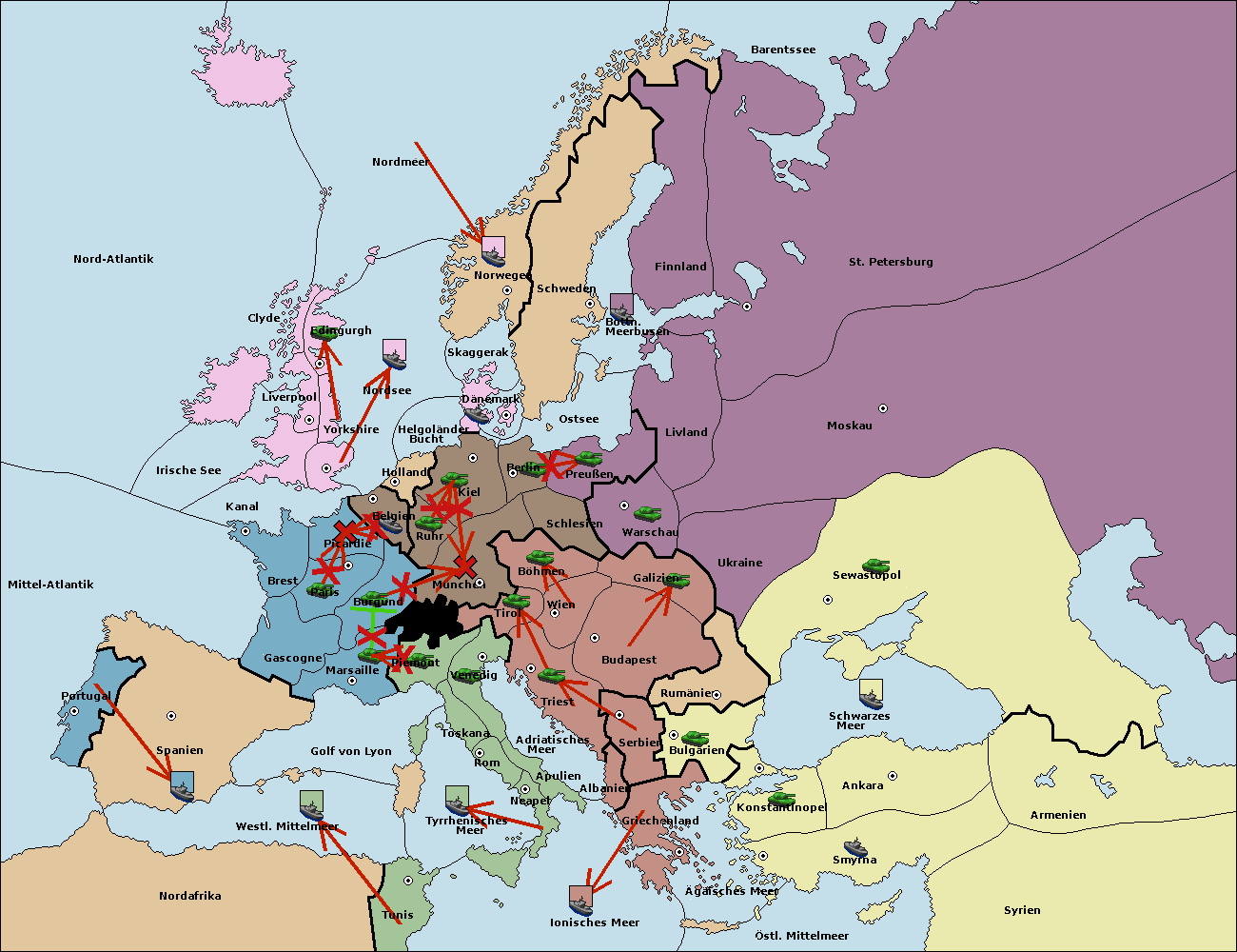 • Die Flotte in Spanien (Südküste) move nach westl. Mittelmeer.