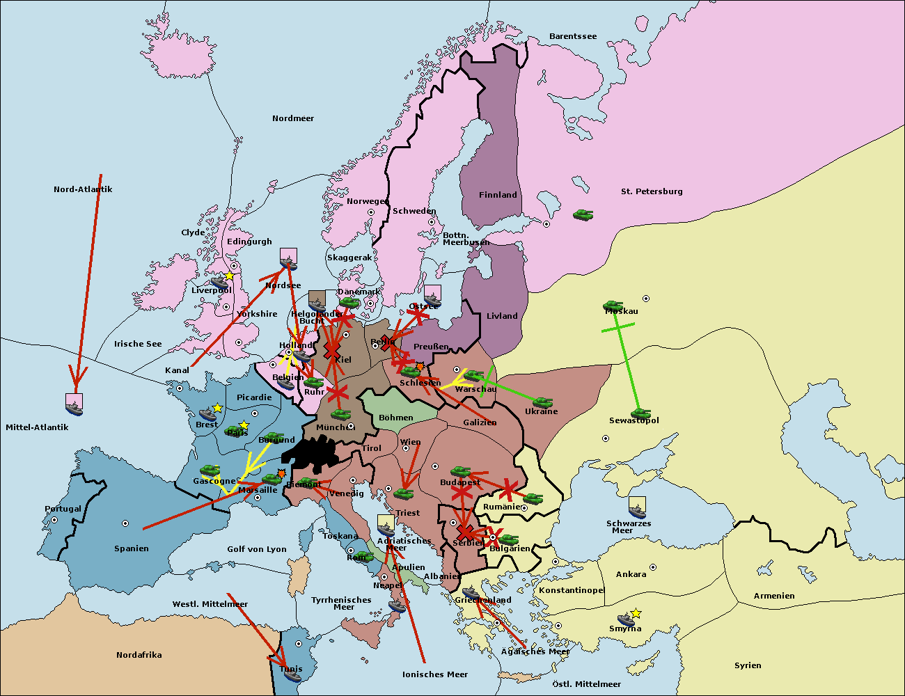 • Die Armee in Warschau wird zerstörtFlotte in Warschau gebaut.