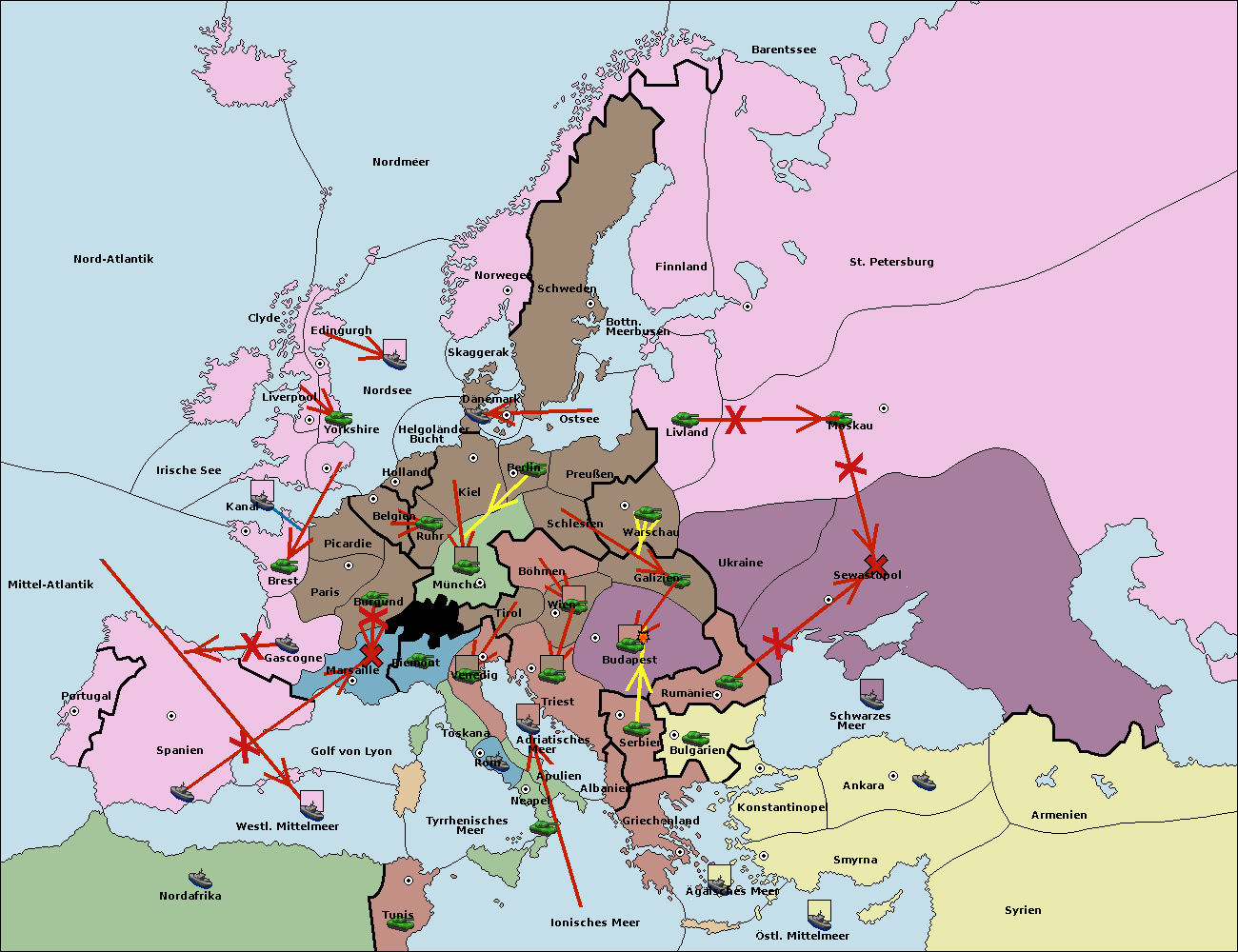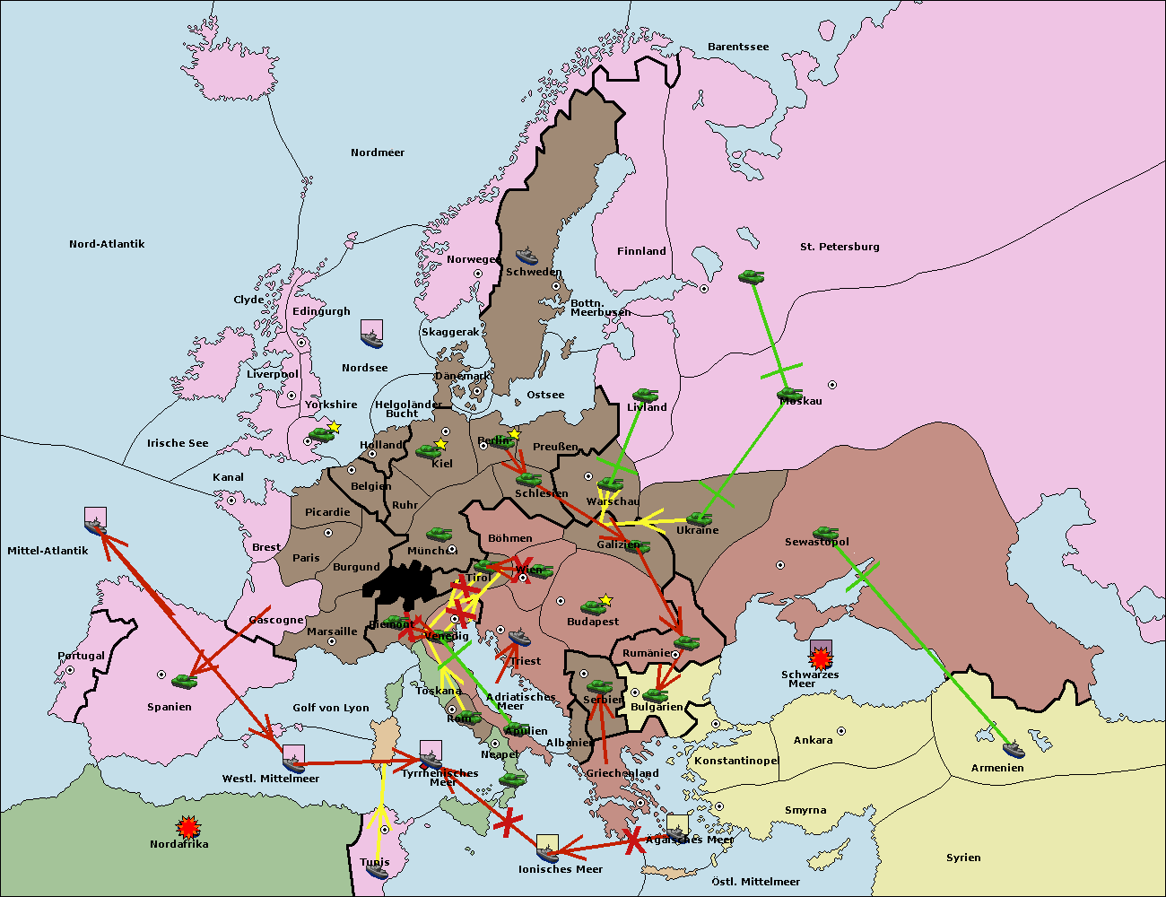 • Die Armee in Triest wird zerstörtFlotte in Triest gebaut.