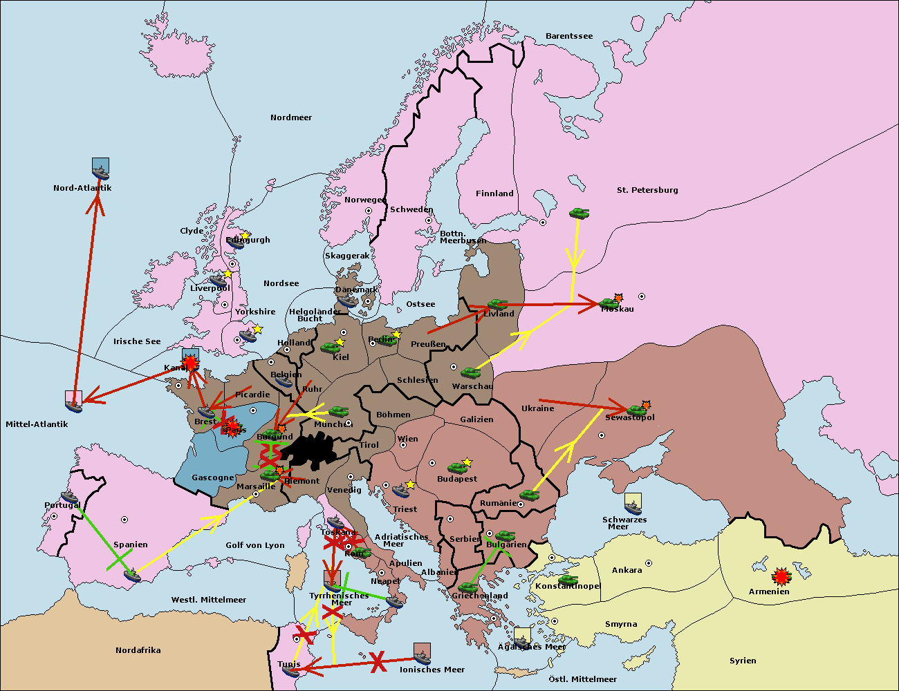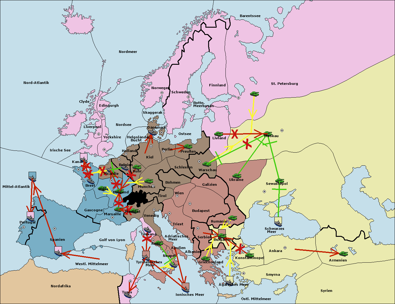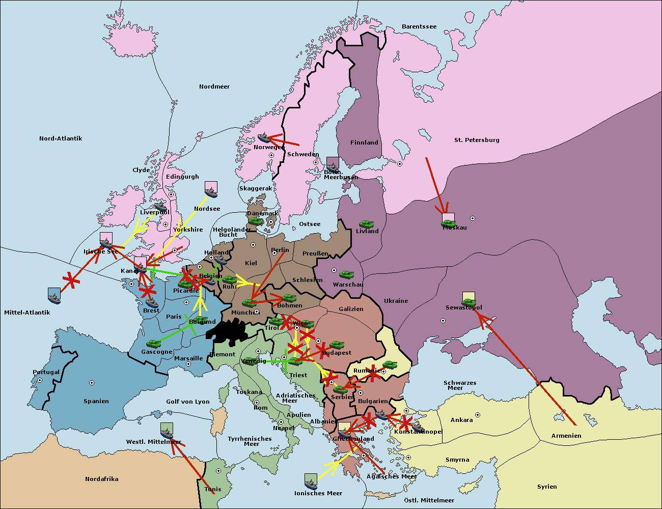 • Die Flotte in Bulgarien (Südküste) move nach Griechenland. (gescheitert)