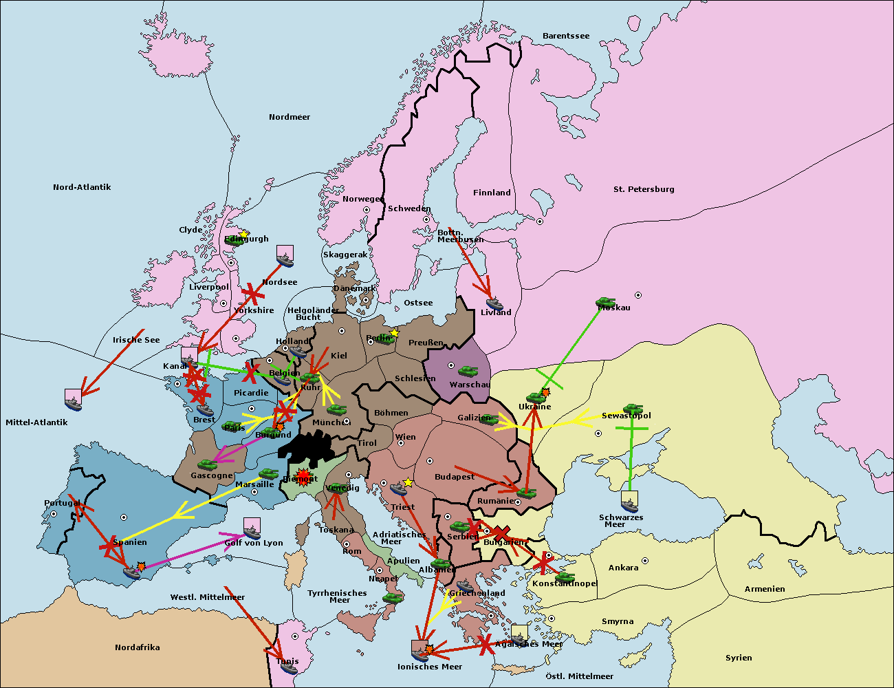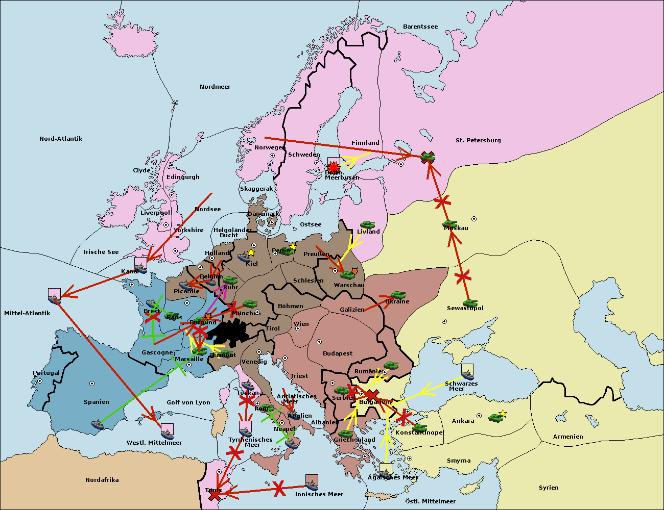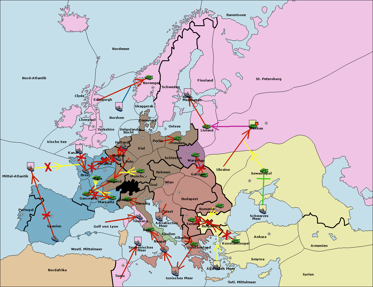 • Die Flotte in Bulgarien (Südküste) move nach Griechenland. (gescheitert)