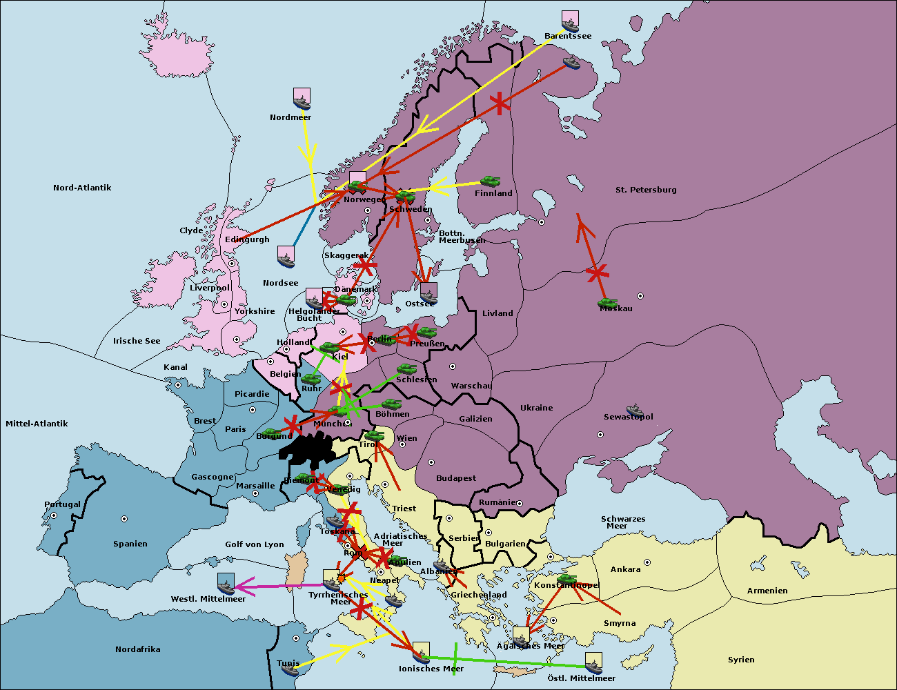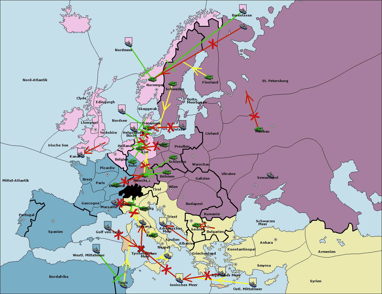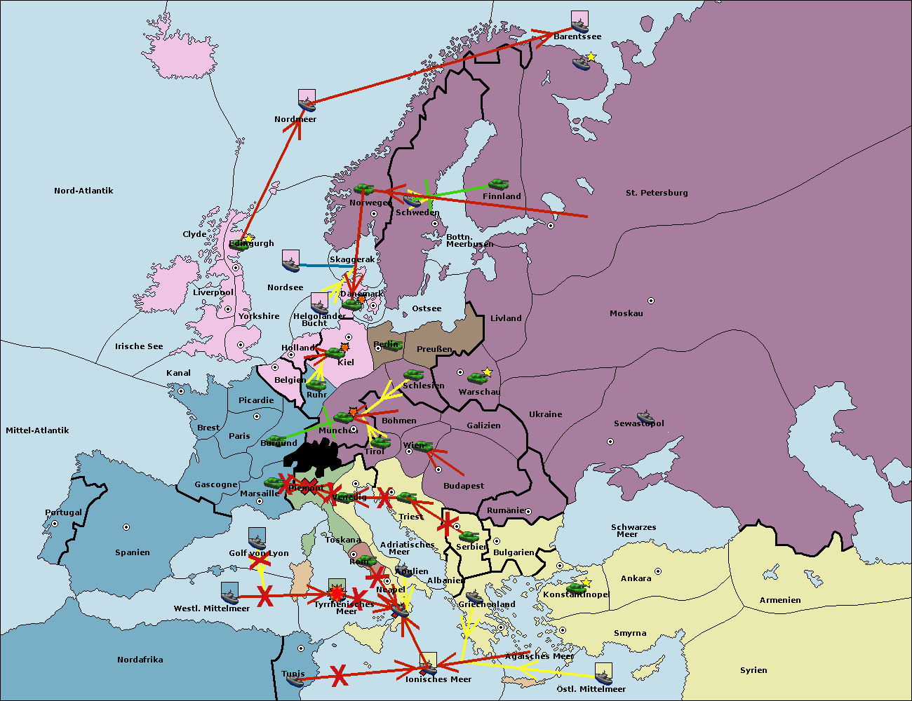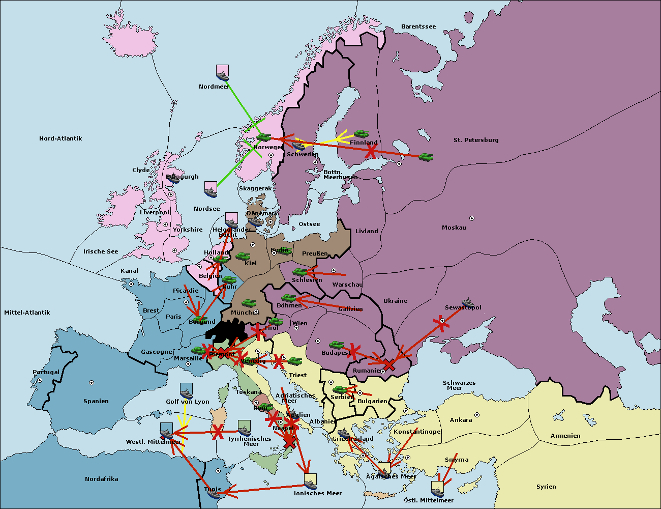 • Die Flotte in St. Petersburg (Nordküste) move nach Norwegen. (gescheitert)