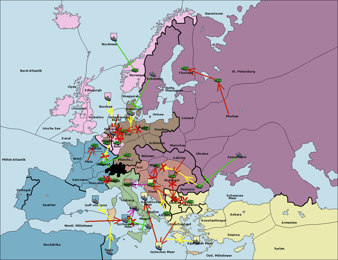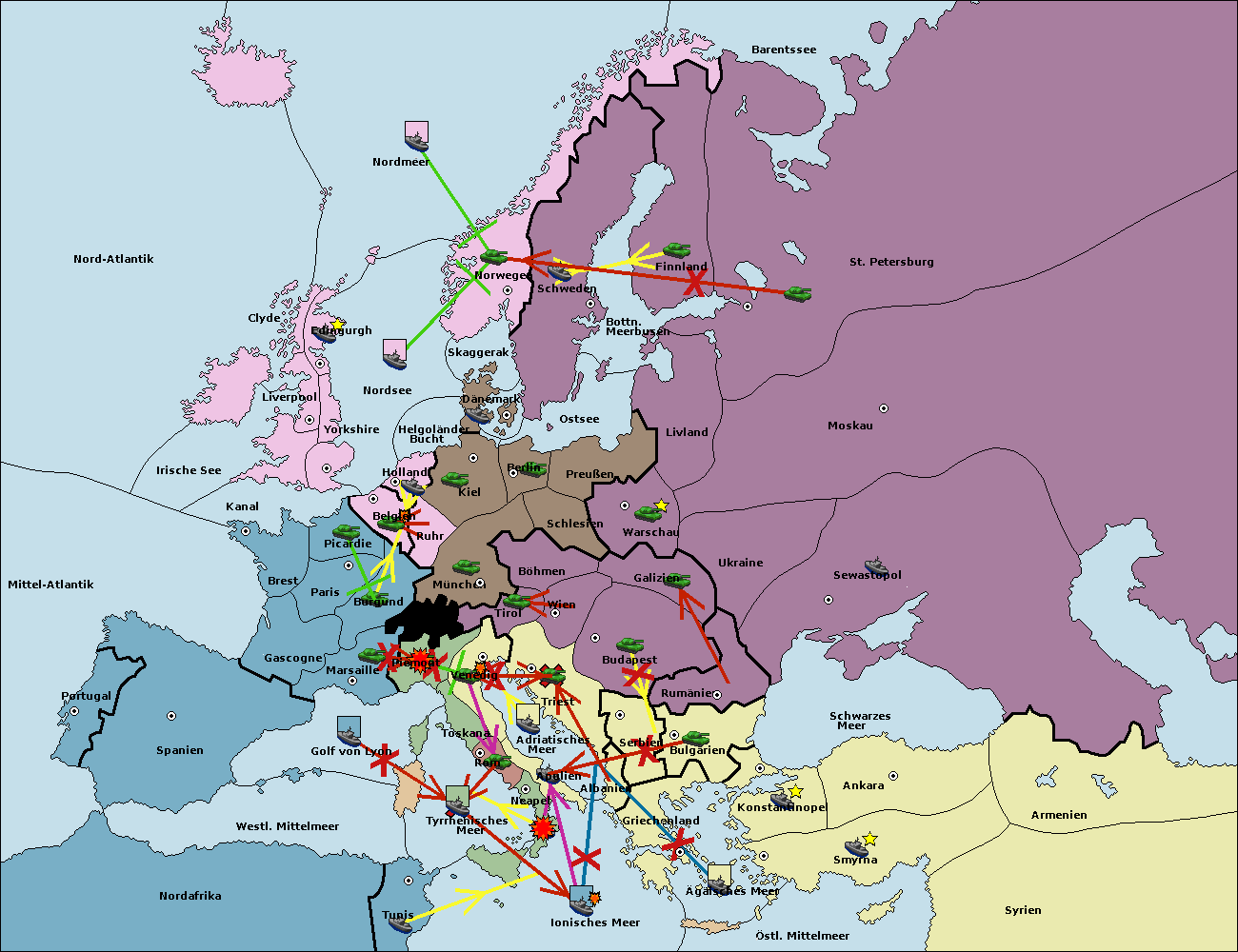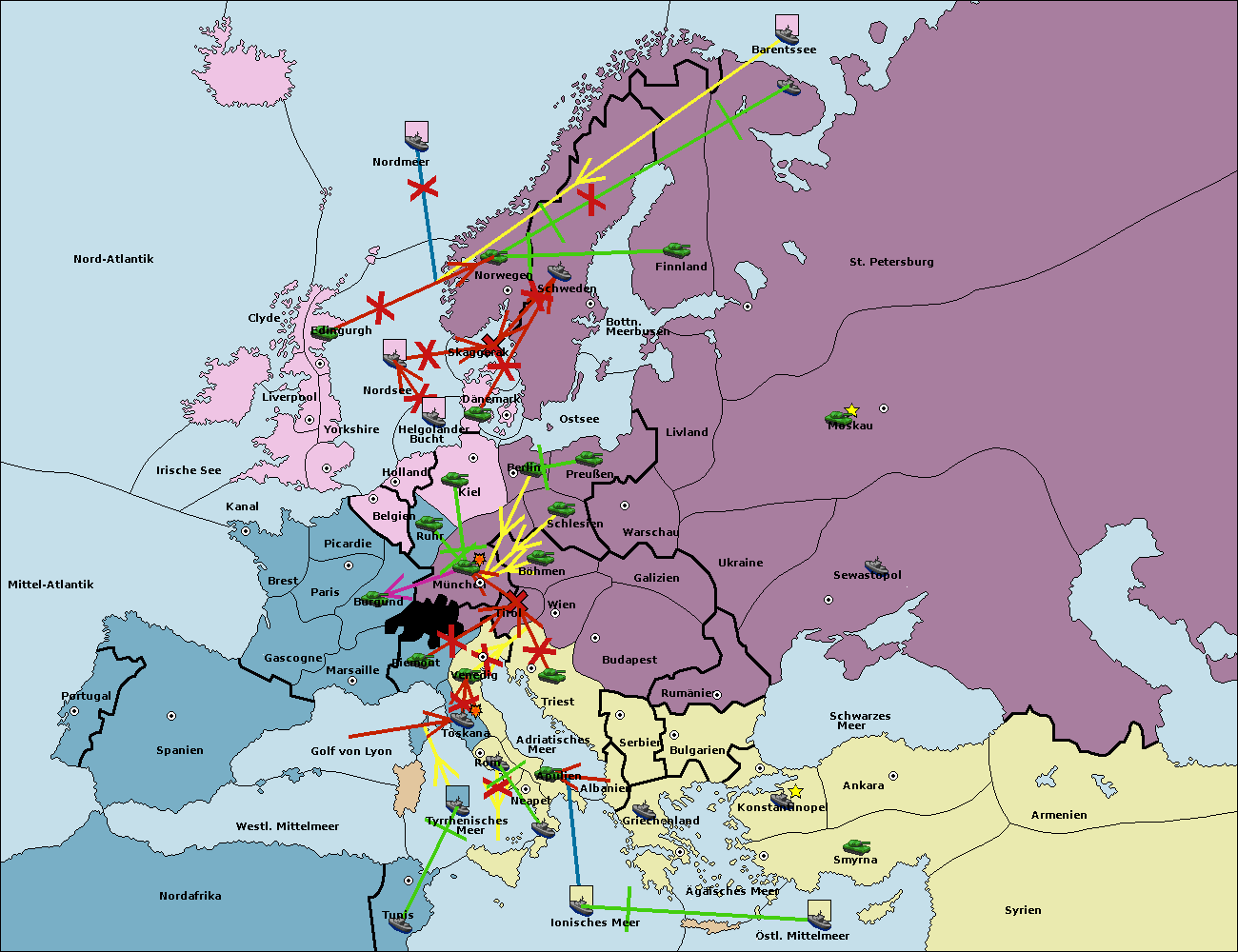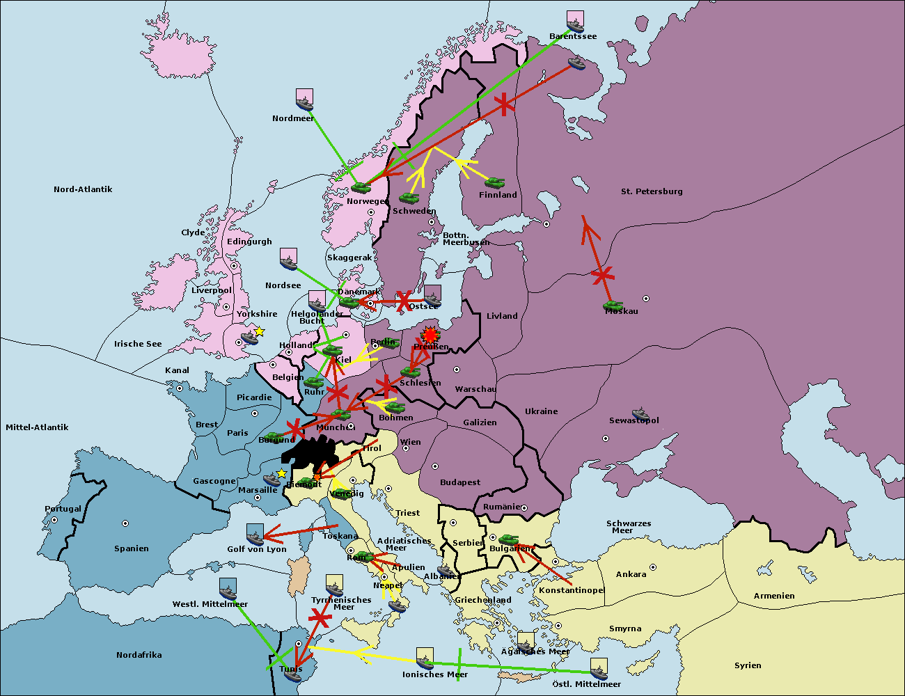 • Die Flotte in St. Petersburg (Nordküste) move nach Norwegen. (gescheitert)