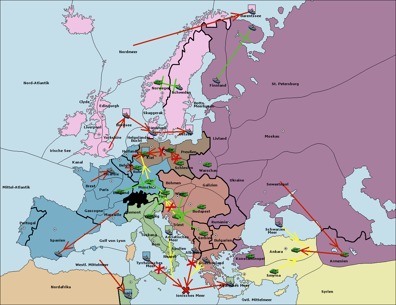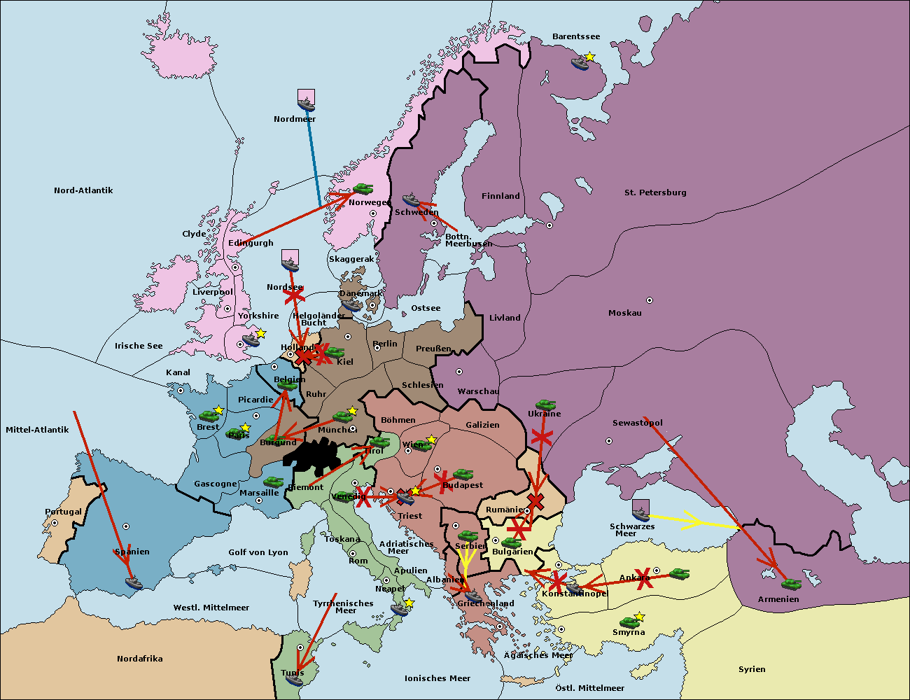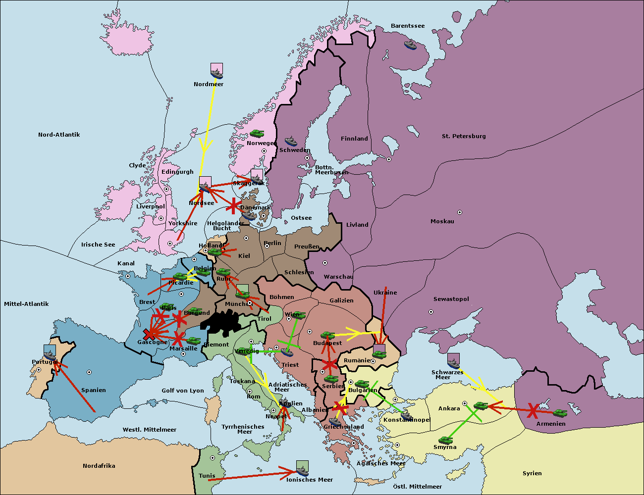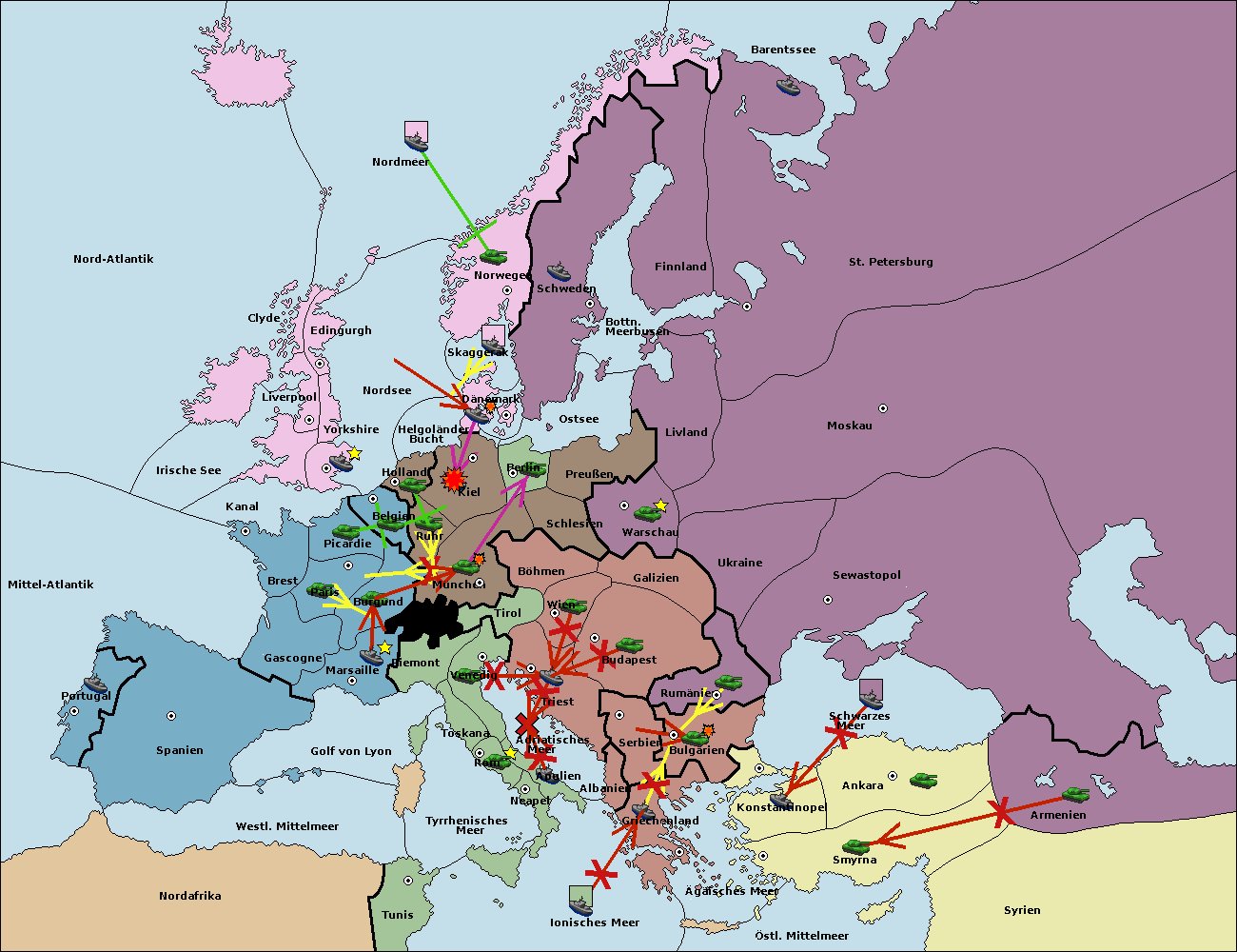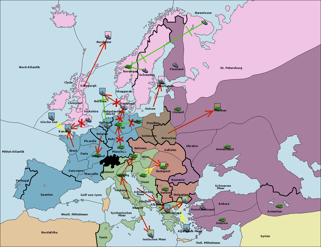 • Die Armee in Bulgarien wird zerstörtFlotte in Bulgarien gebaut.