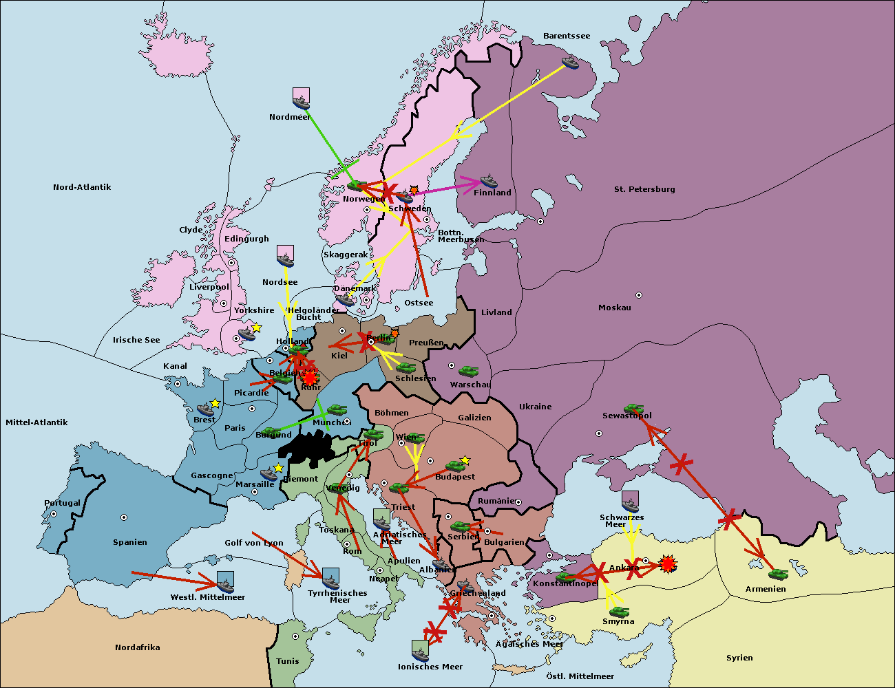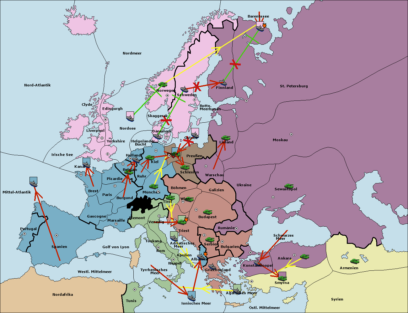 • Die Flotte in St. Petersburg (Nordküste) move nach Norwegen. (gescheitert)