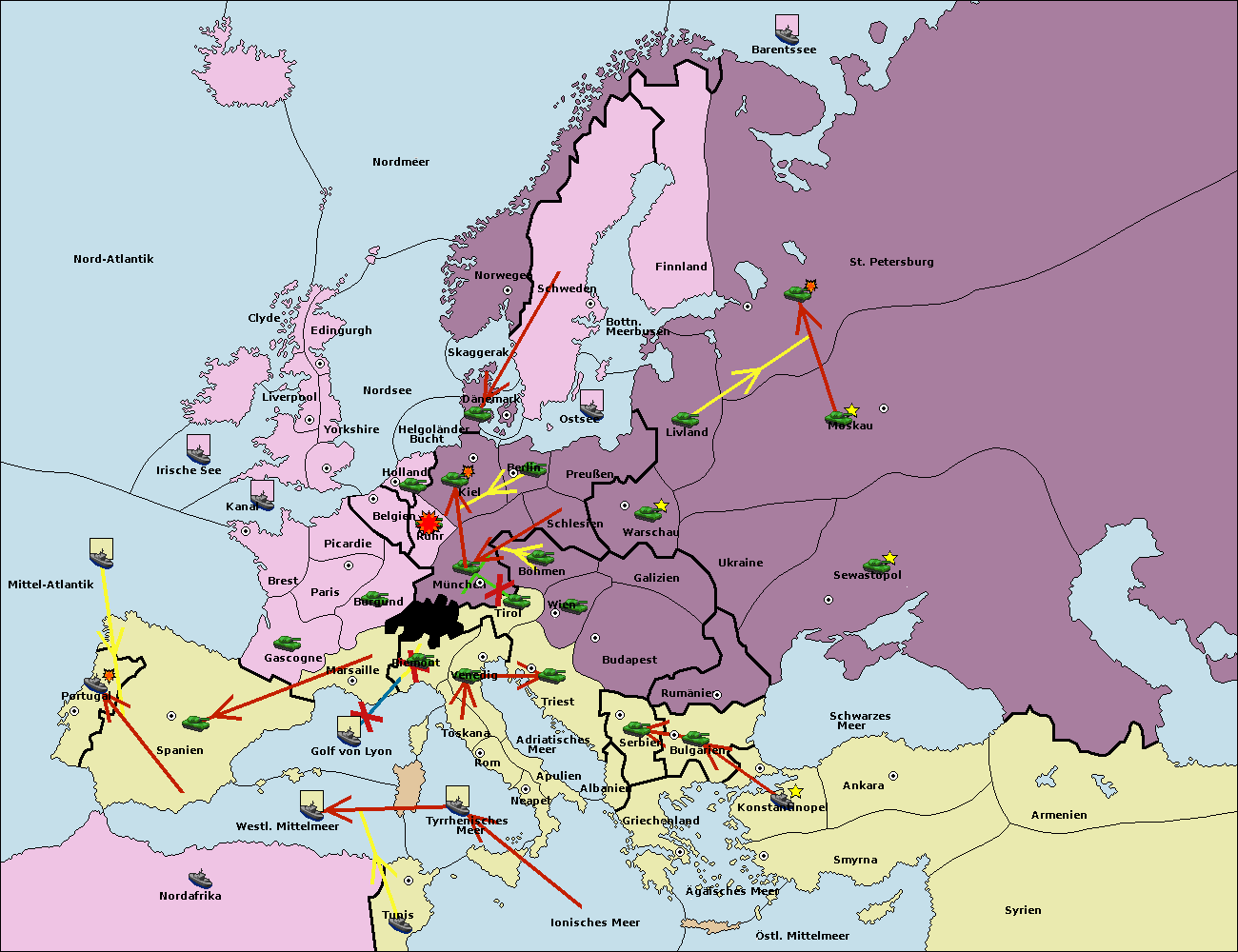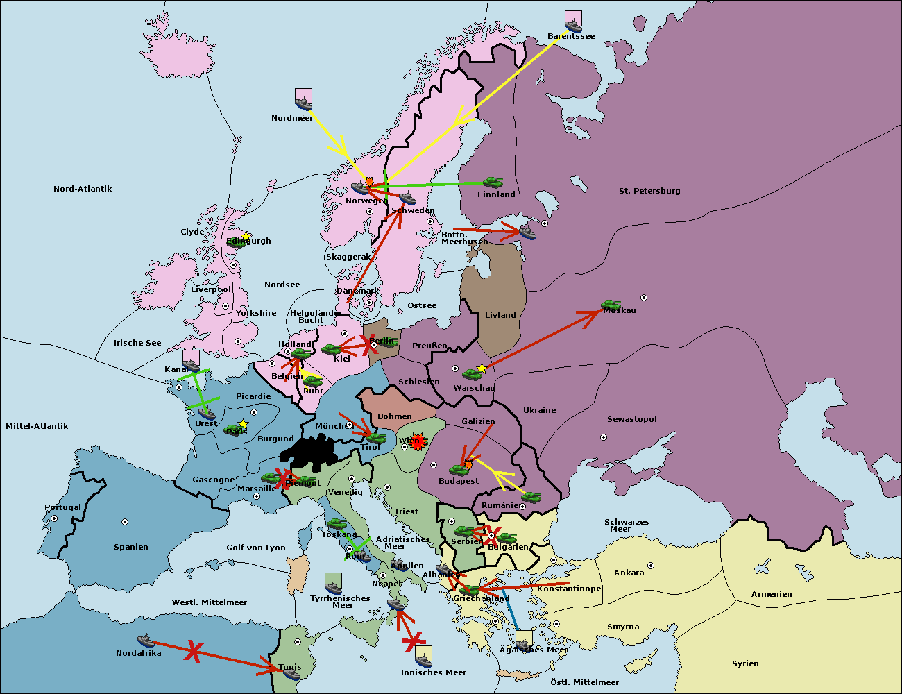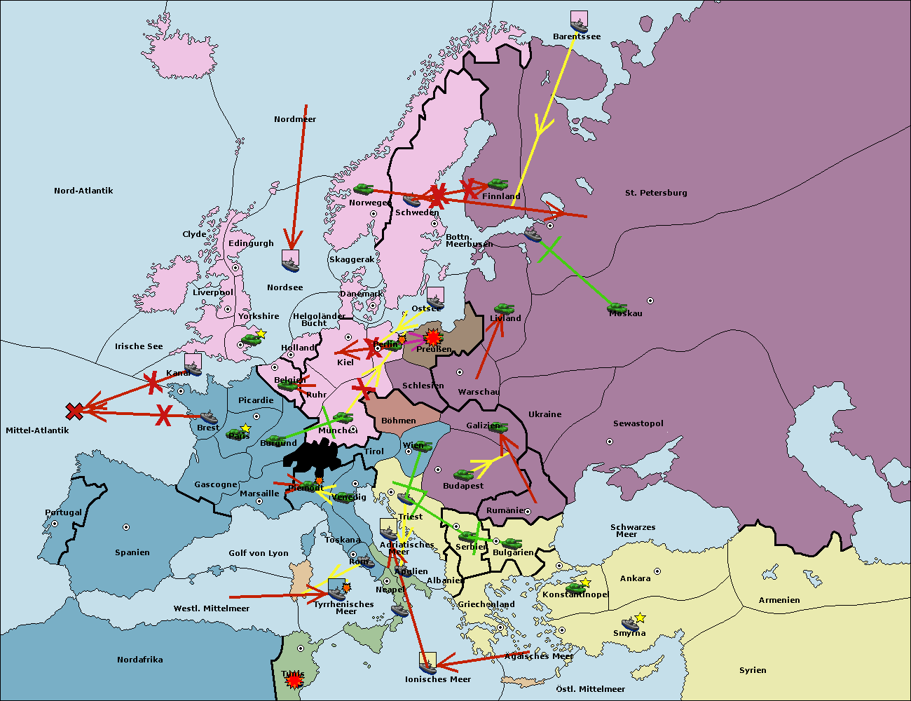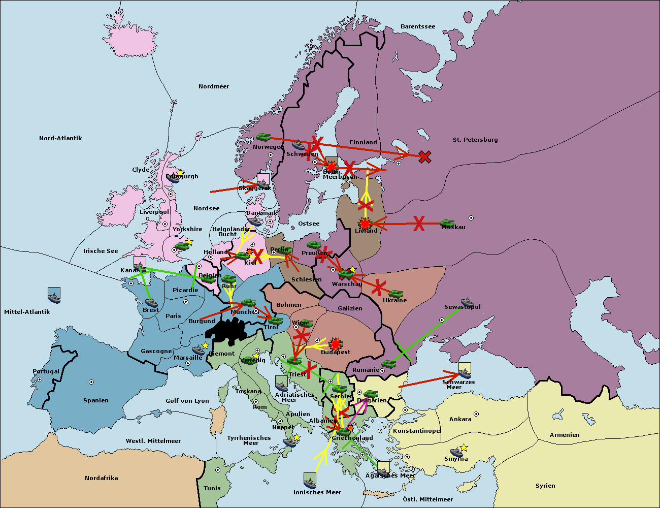 • Die Armee in Kiel wird zerstörtFlotte in Kiel gebaut.