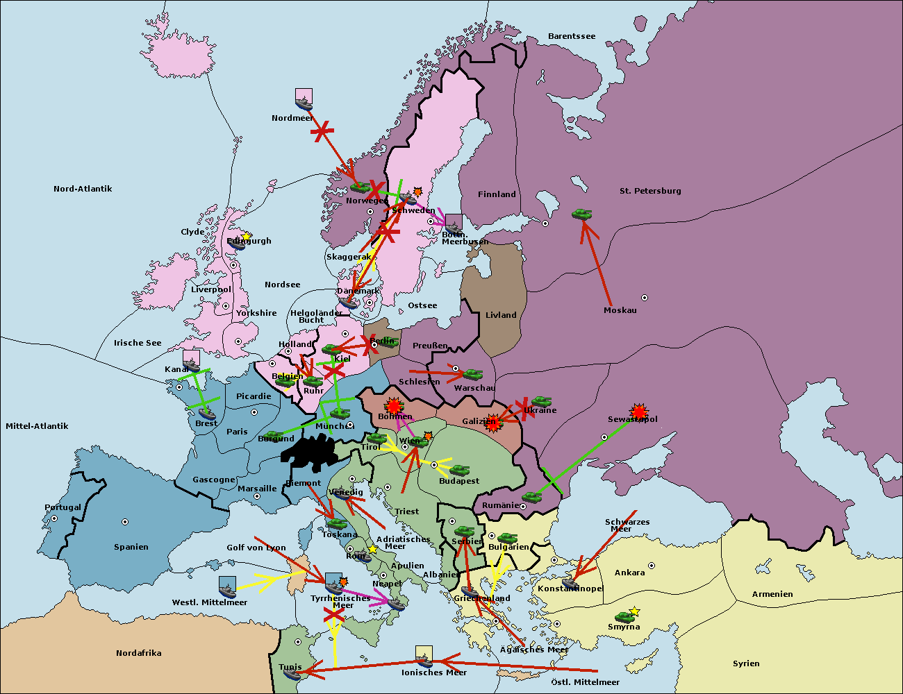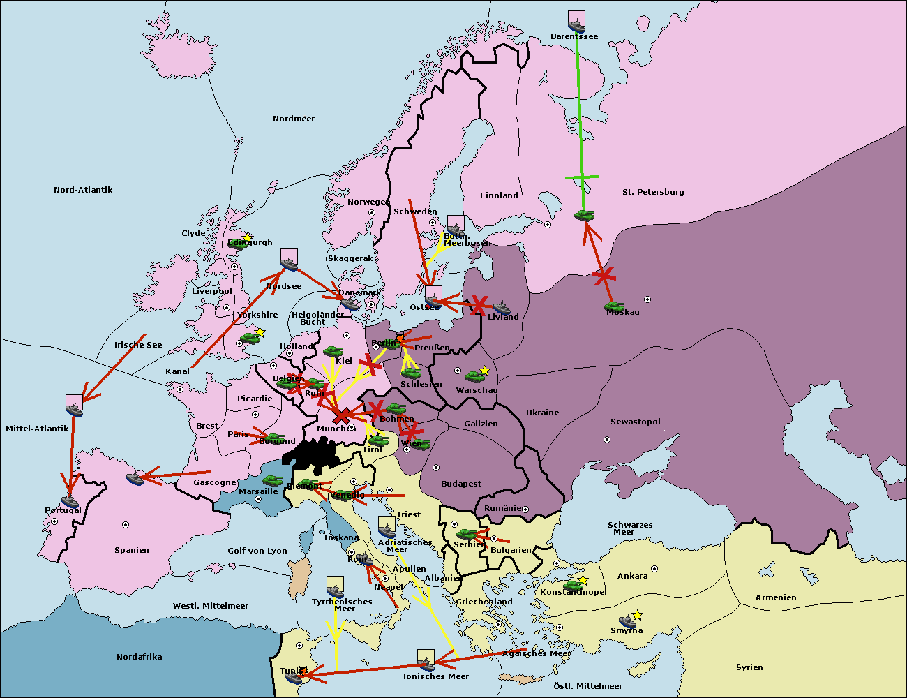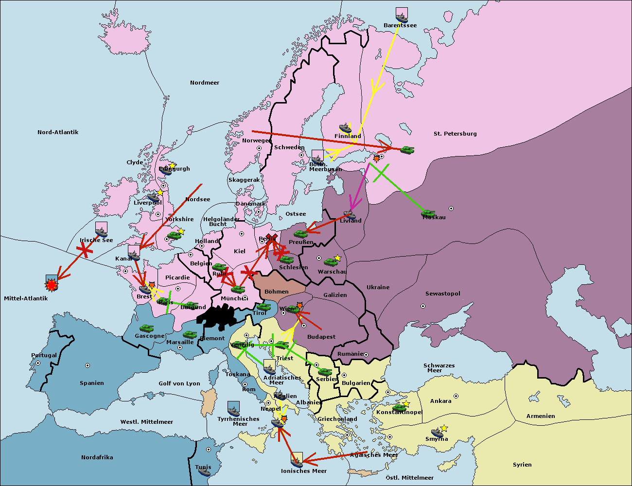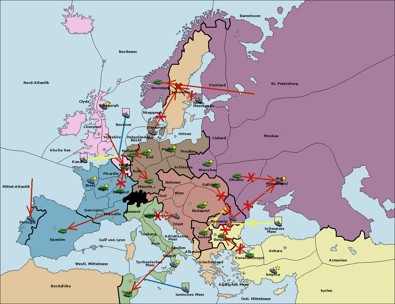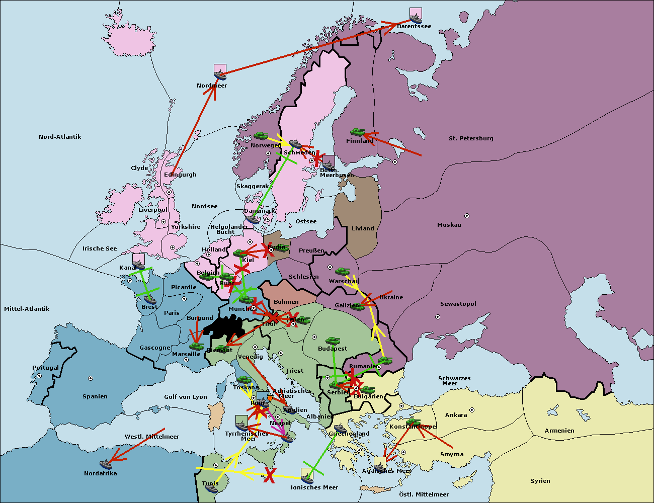• Die Armee in Kiel wird zerstörtFlotte in Kiel gebaut.