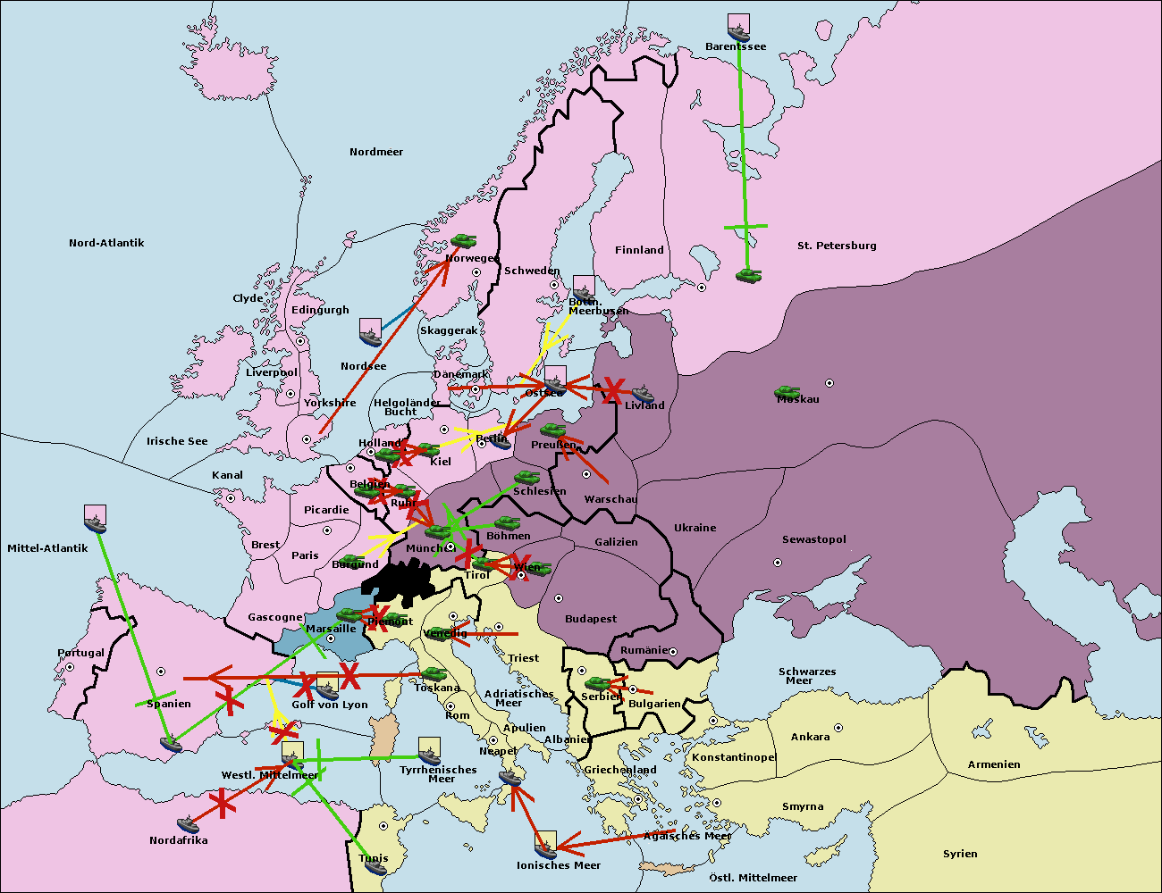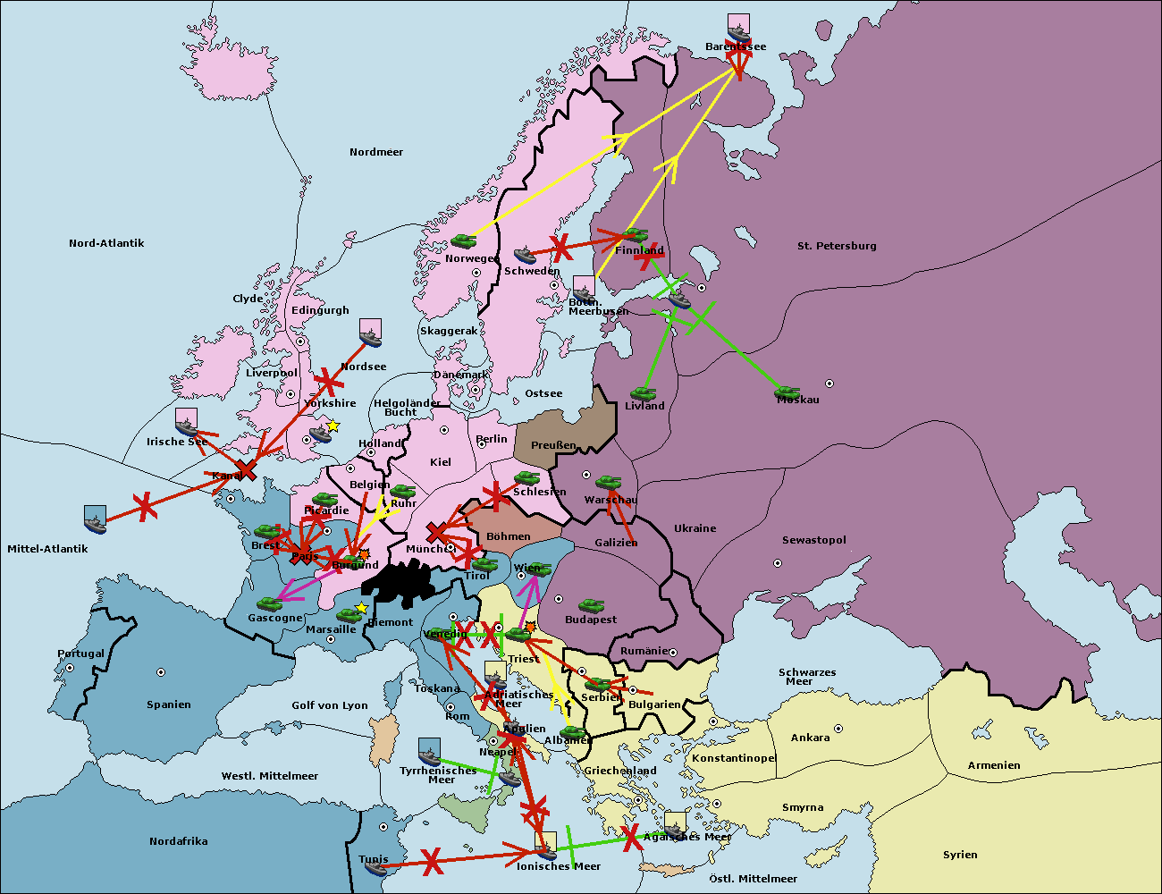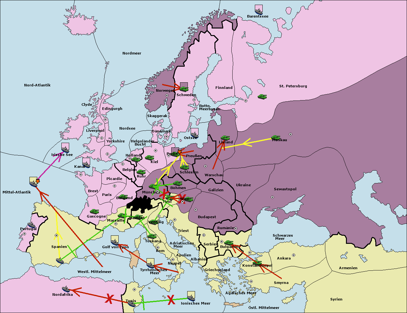 • Die Flotte in Nord Afrika support move nach Mittel-Atlantik von westl. Mittelmeer.