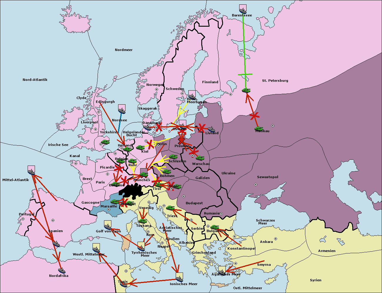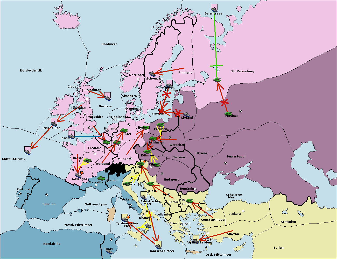 • Die Armee in Triest support move nach Budapest von Serbien.