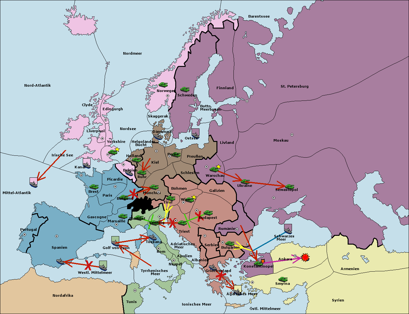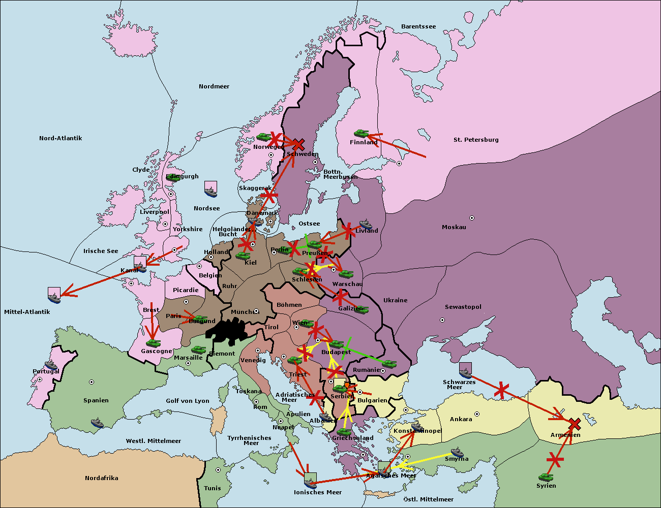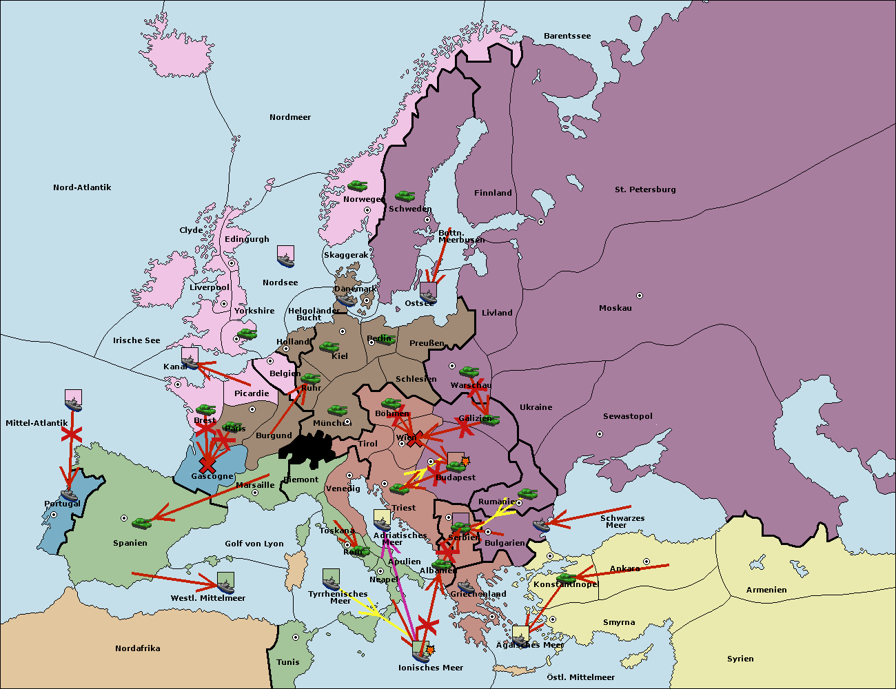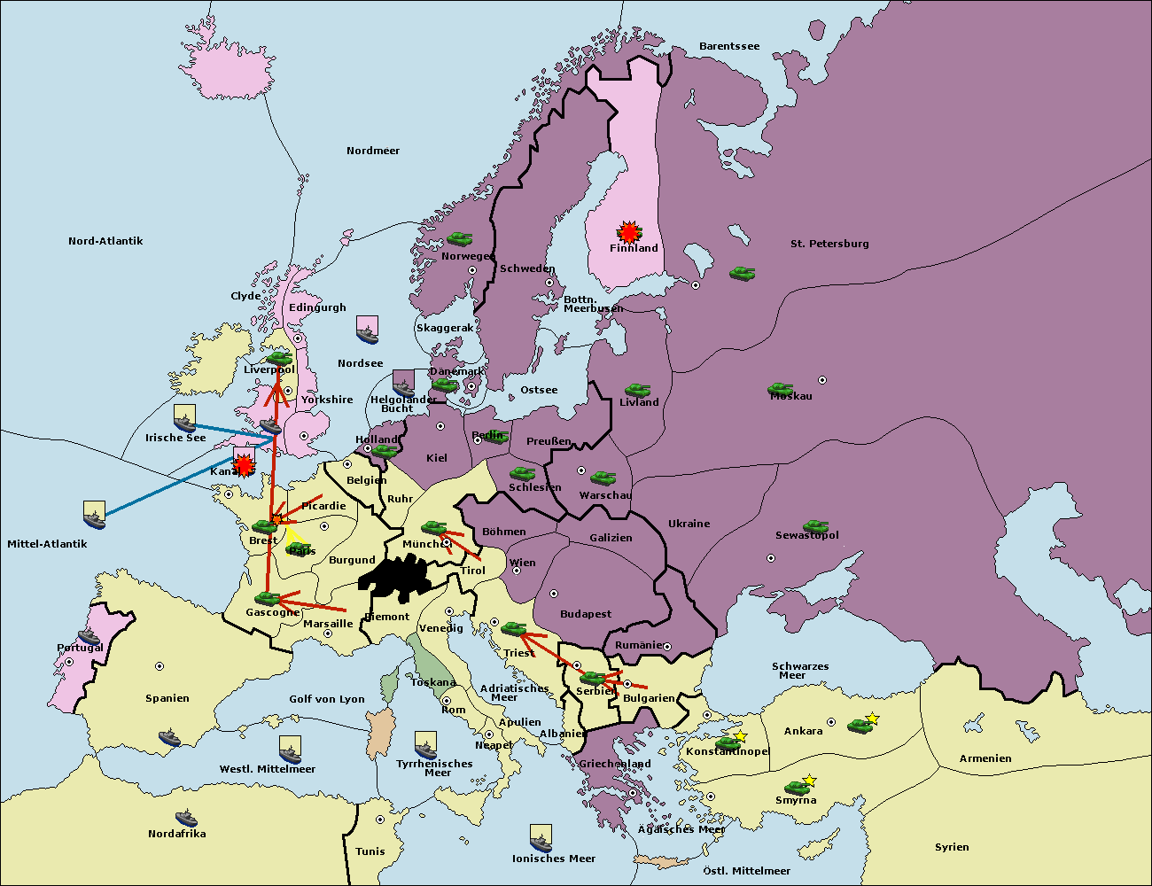 • Die Armee in Bulgarien wird zerstörtFlotte in Bulgarien gebaut.
