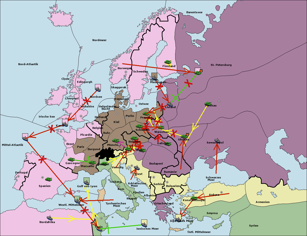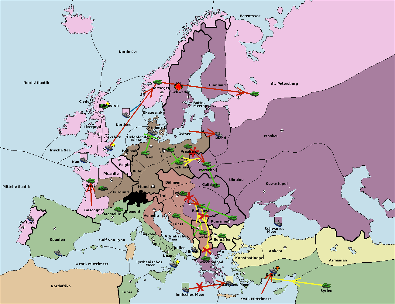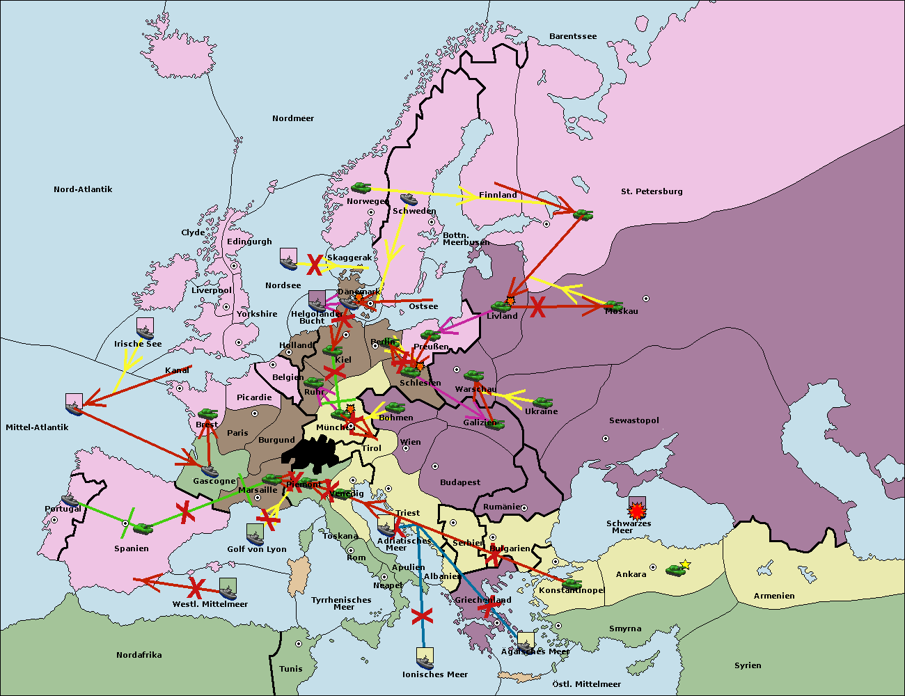 • Die Armee in Bulgarien wird zerstörtFlotte in Bulgarien gebaut.
