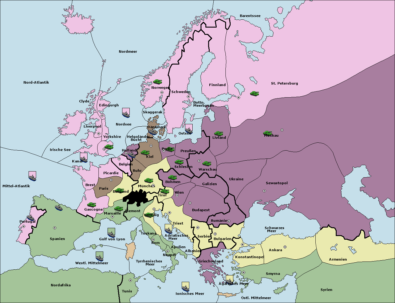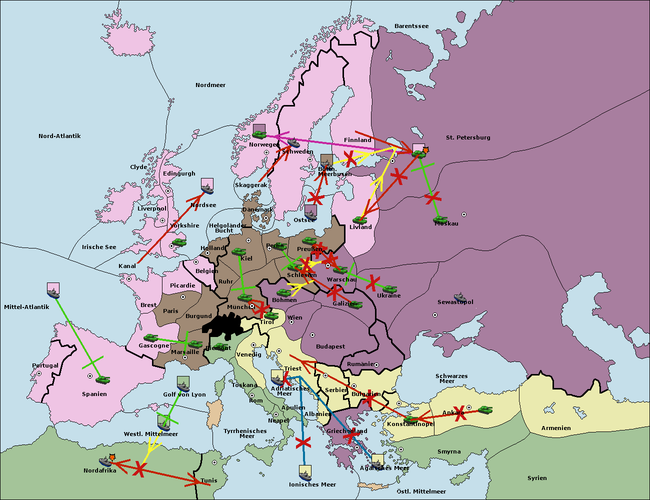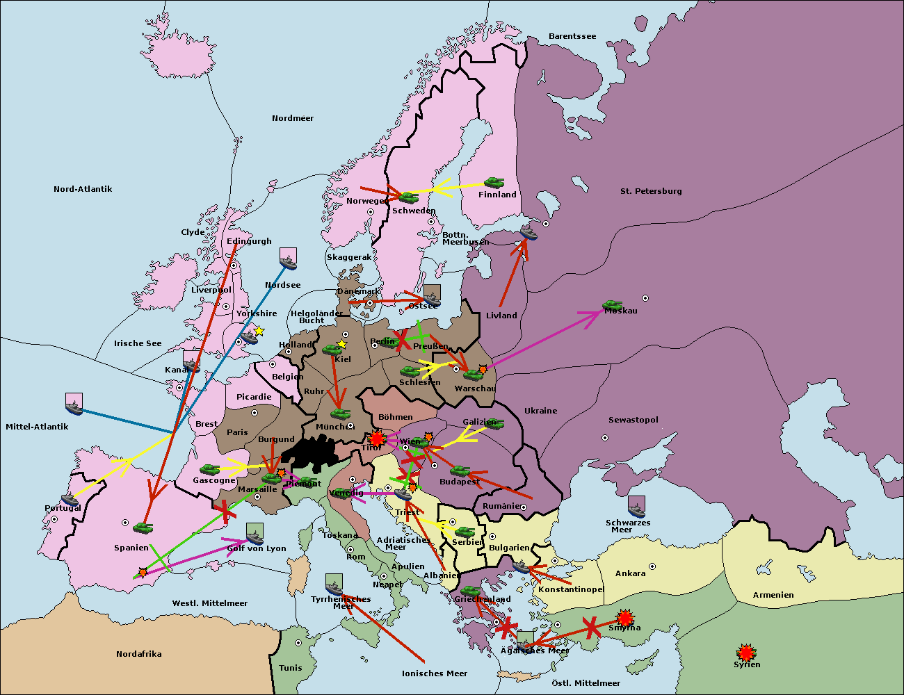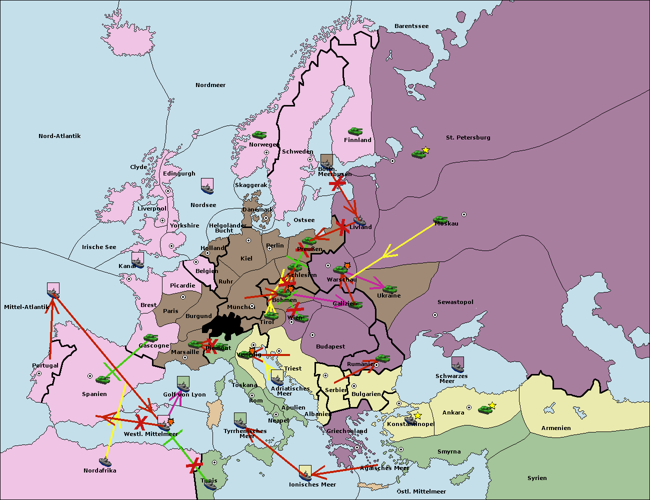 • Die Armee in Bulgarien wird zerstörtFlotte in Bulgarien gebaut.