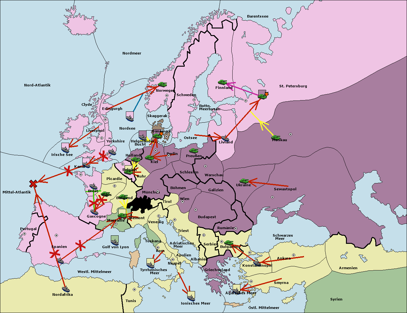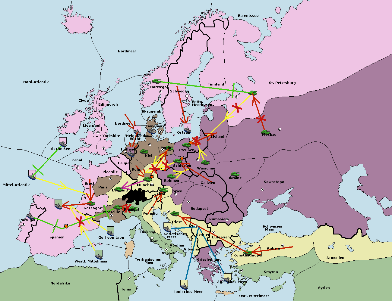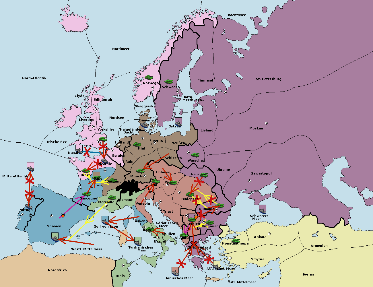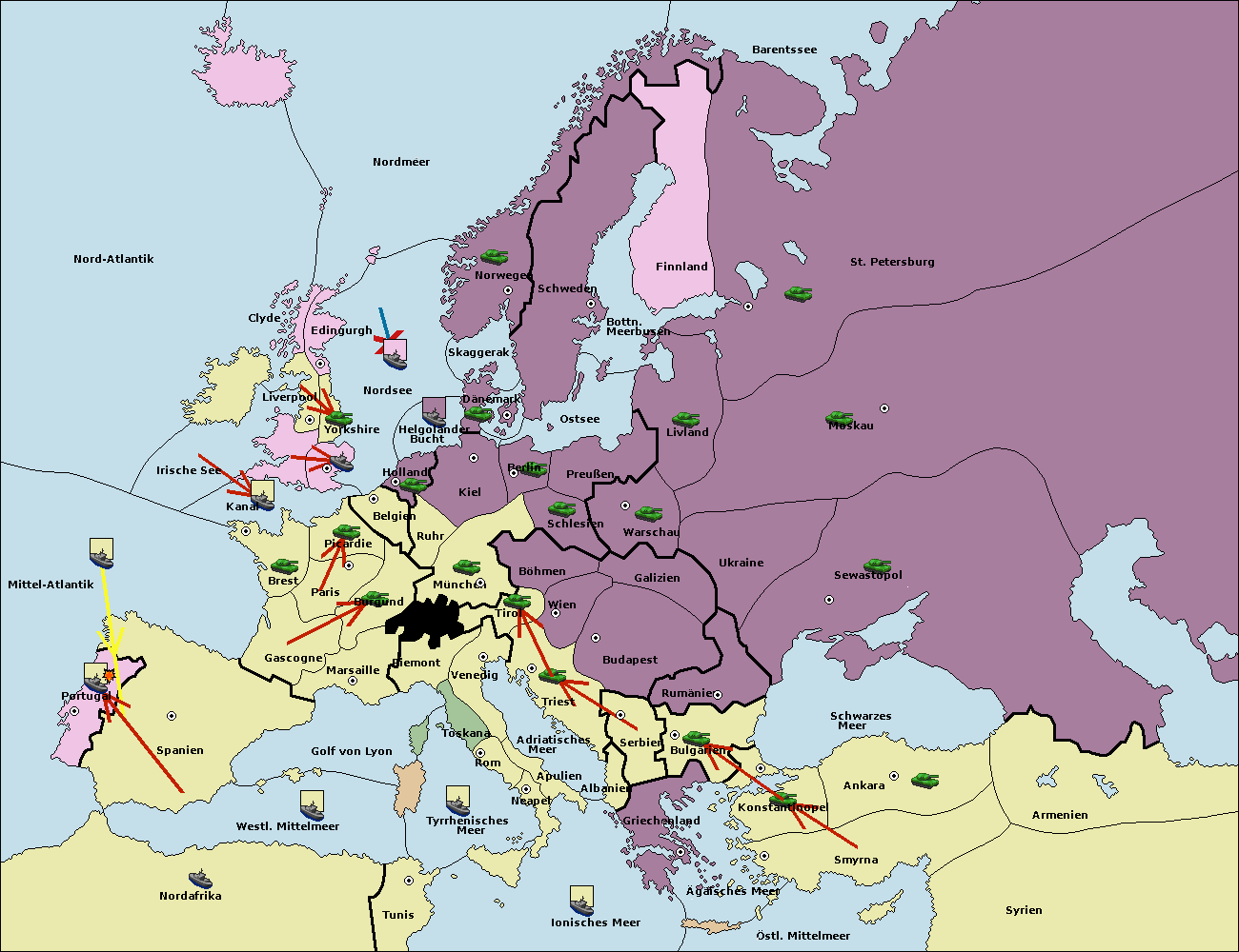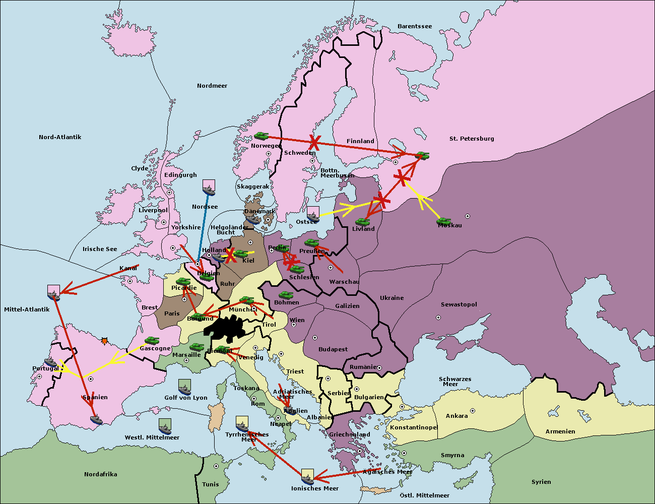 • Die Flotte in Spanien (Südküste) support move nach Mittel-Atlantik von westl. Mittelmeer.