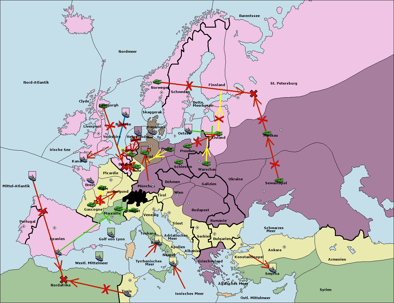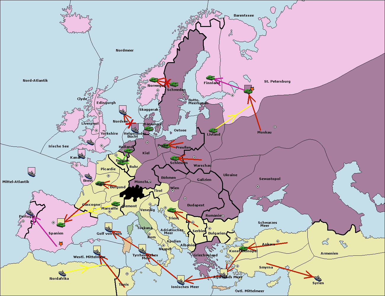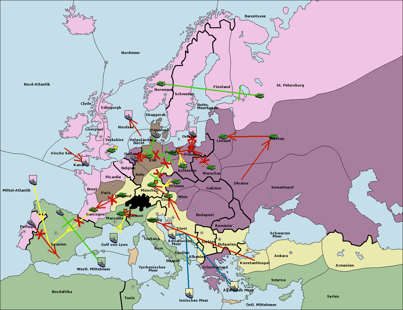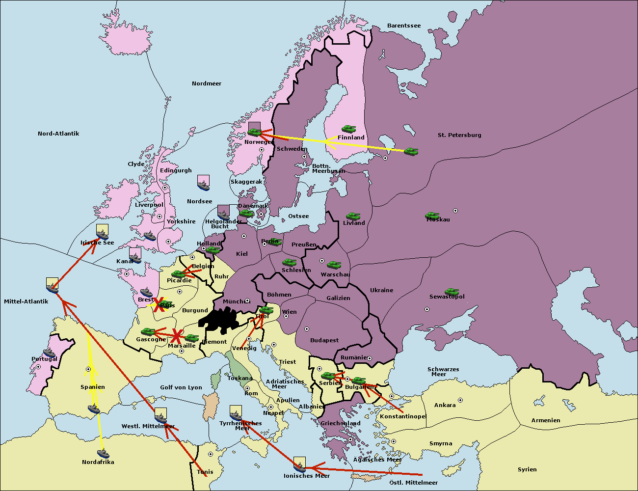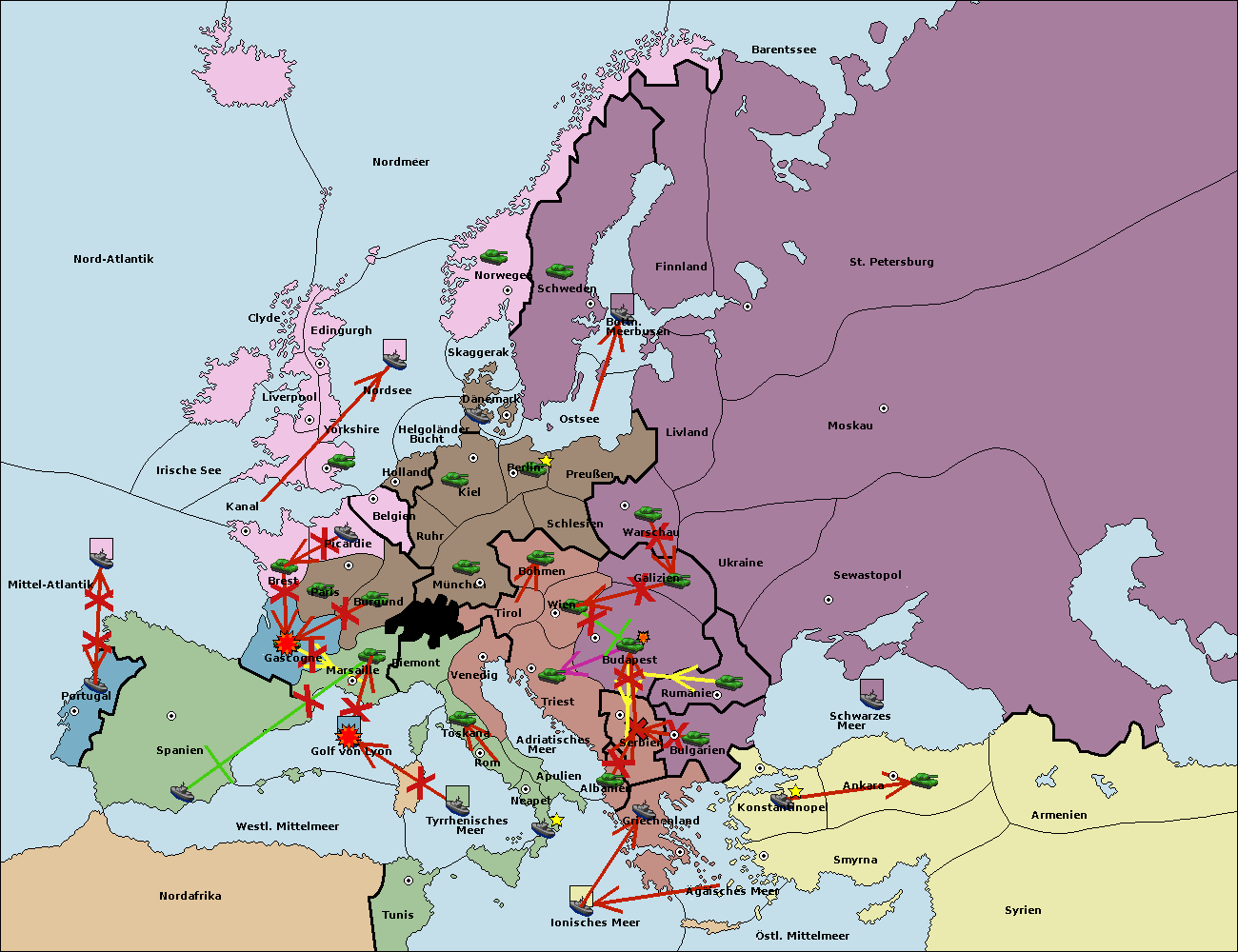 • Die Flotte in Spanien (Südküste) support move nach Mittel-Atlantik von westl. Mittelmeer.