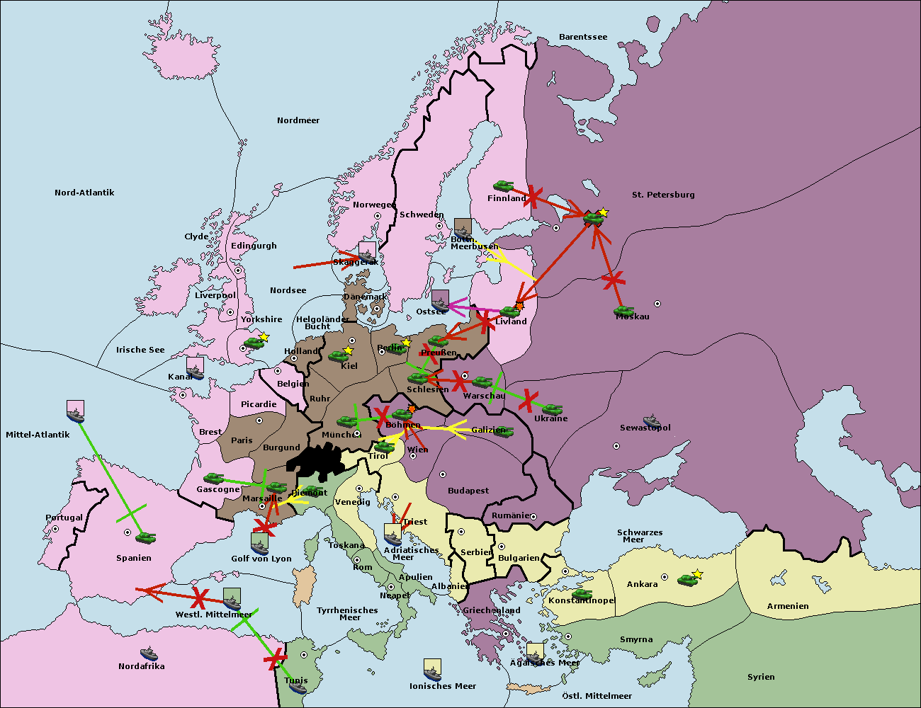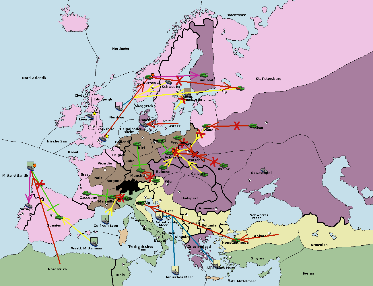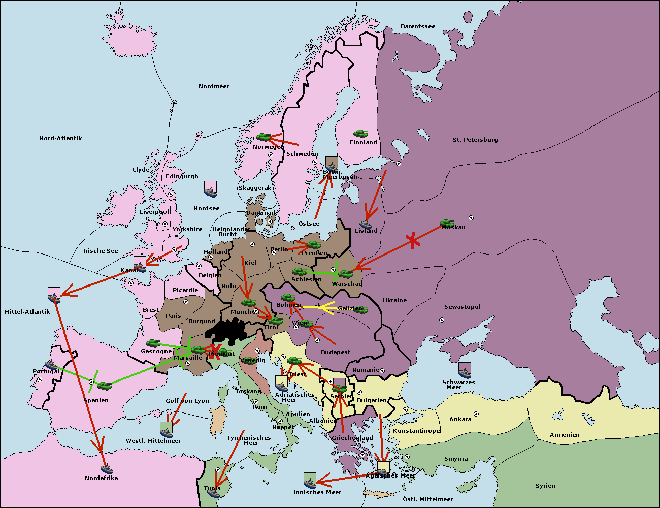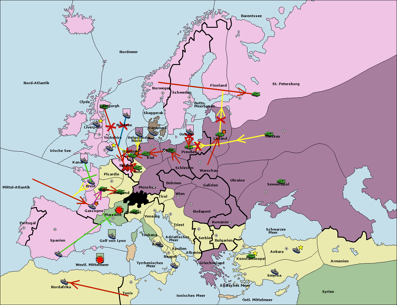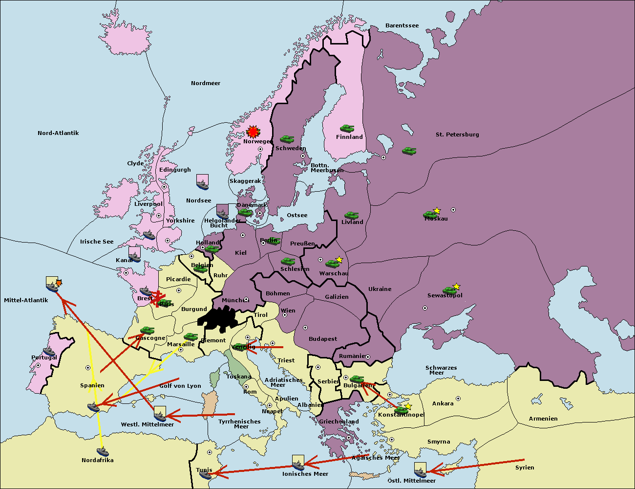 • Die Flotte in Spanien (Südküste) support move nach Mittel-Atlantik von westl. Mittelmeer.