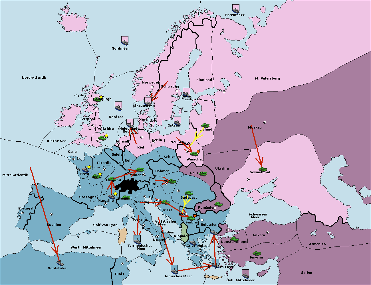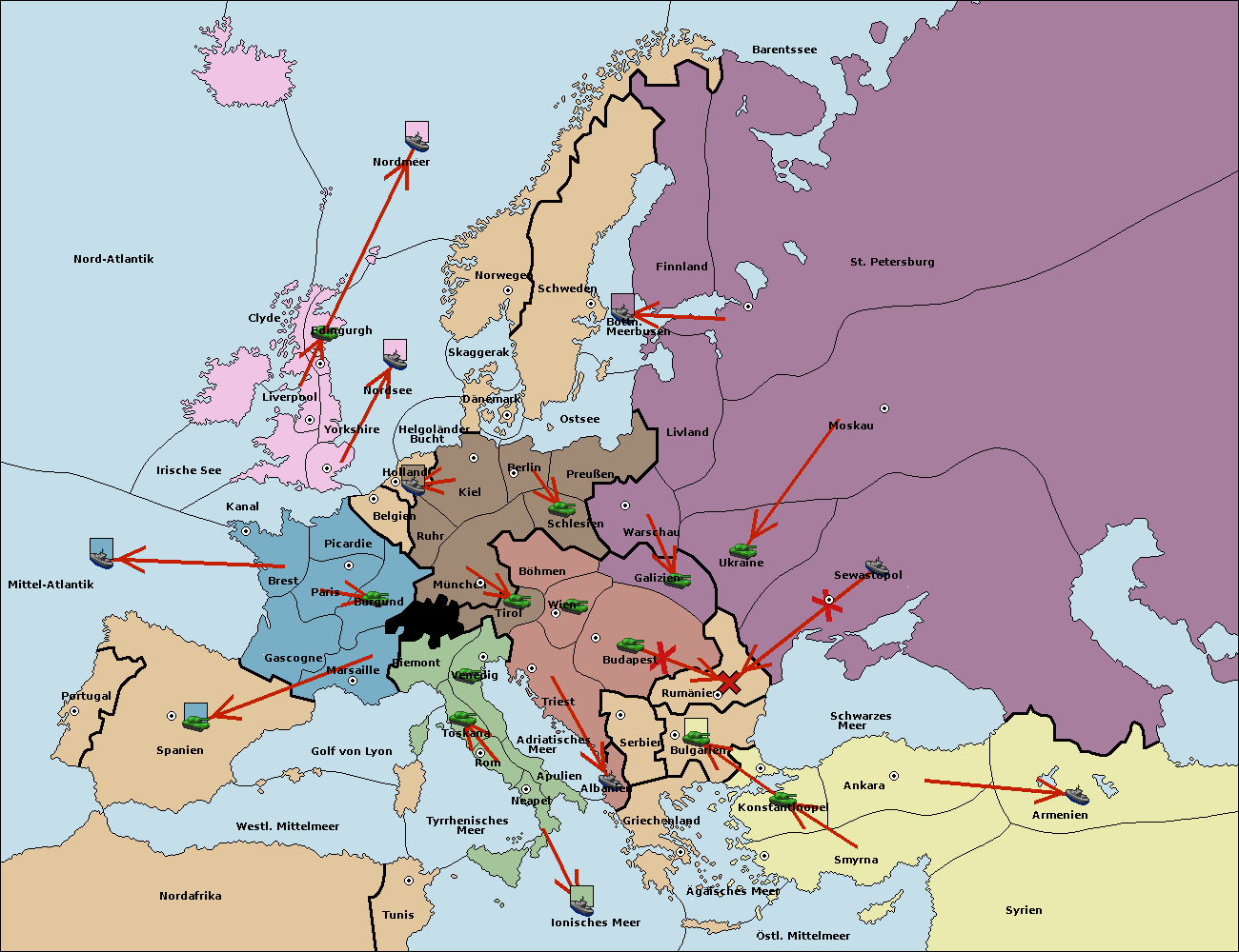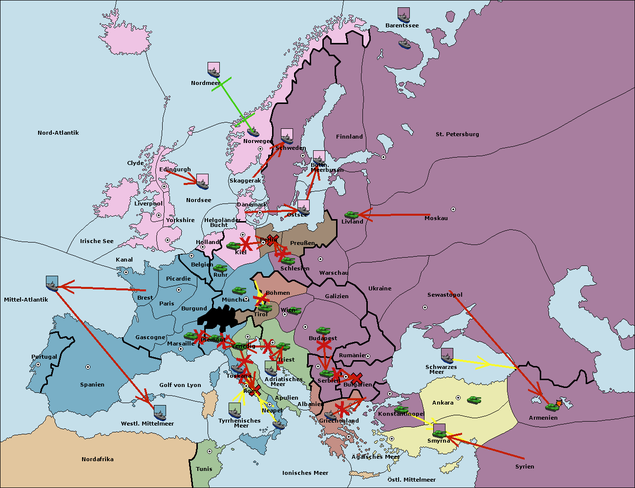 • Die Armee in Kiel support move nach München von Burgund. (gescheitert)