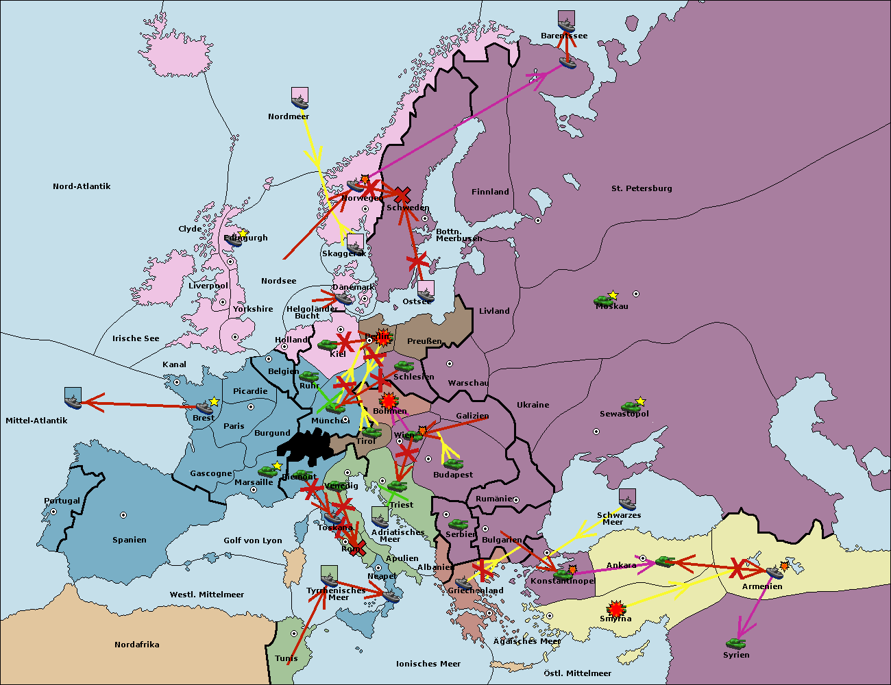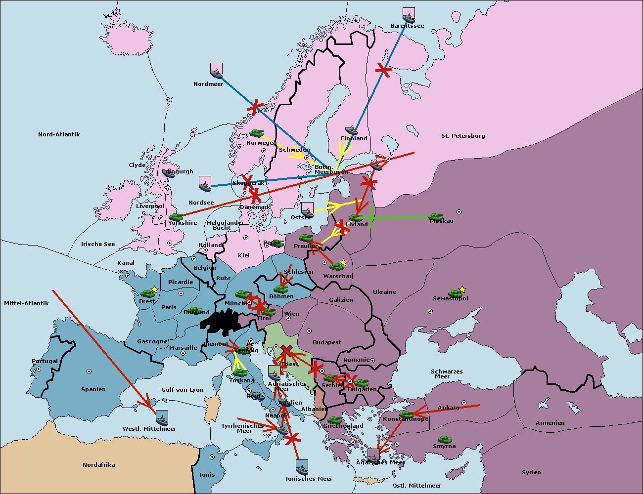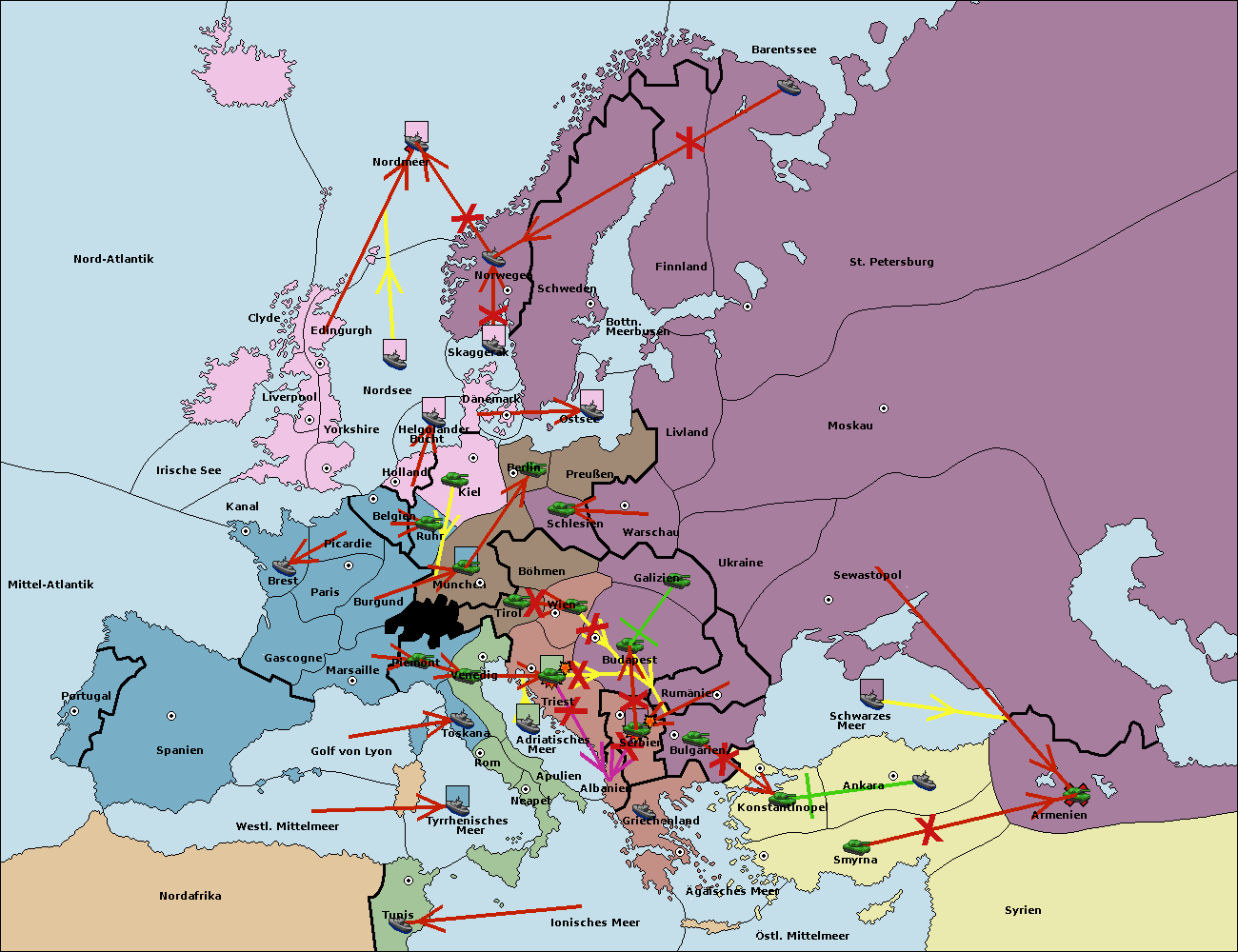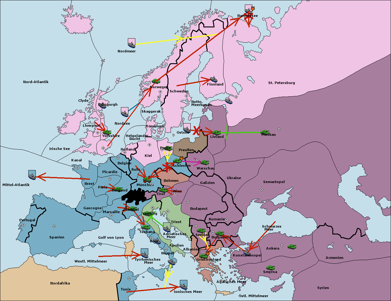 • Die Armee in Kiel support move nach München von Burgund. (gescheitert)