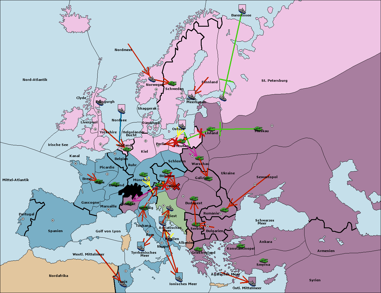 • Die Armee in Triest support move nach Wien von Tirol.