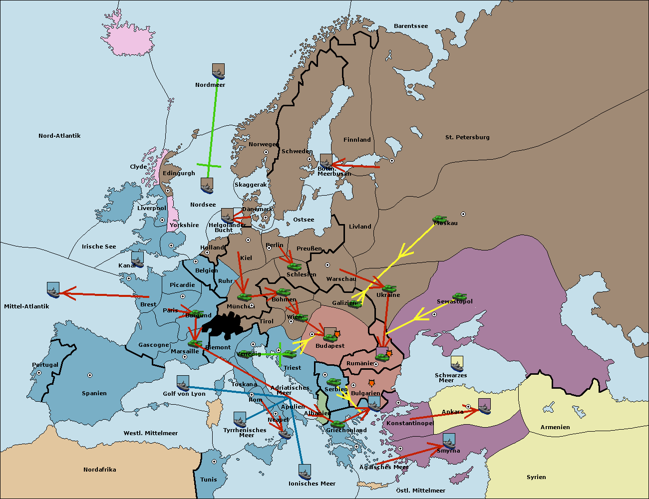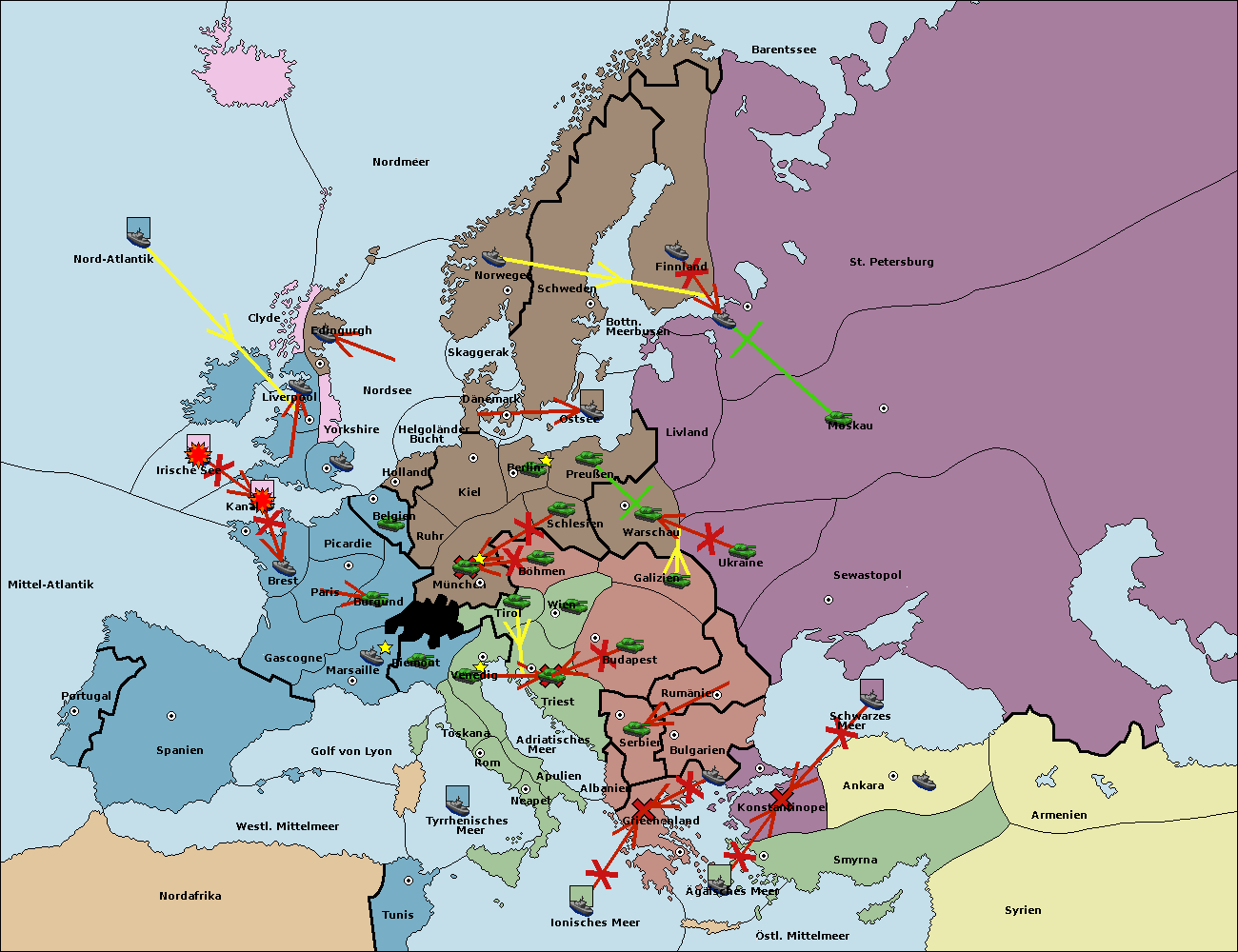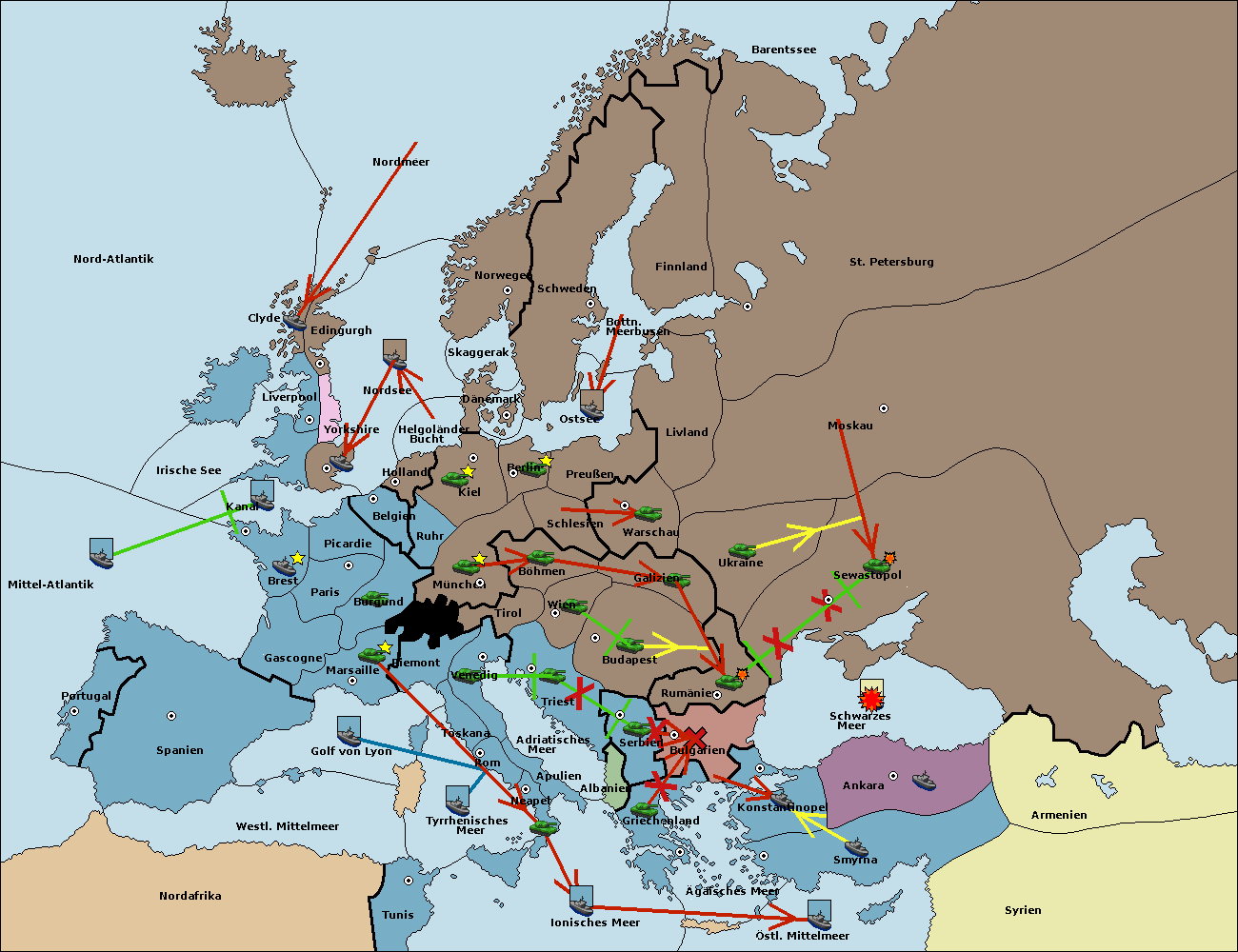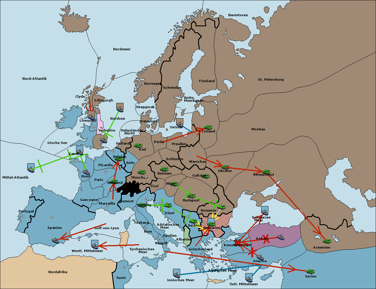• Die Flotte in Bulgarien (Südküste) move nach Konstantinopel.