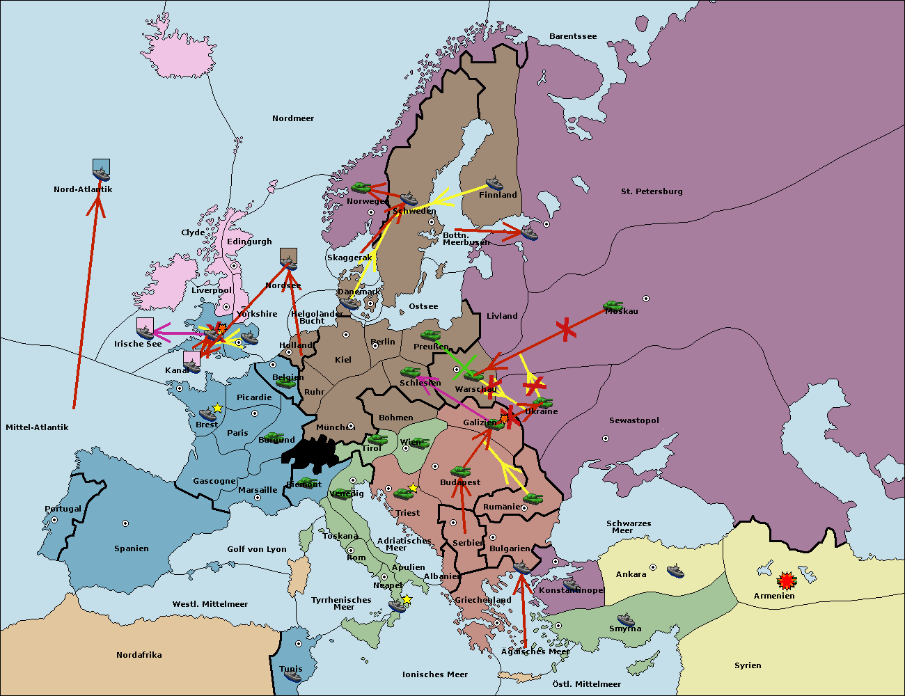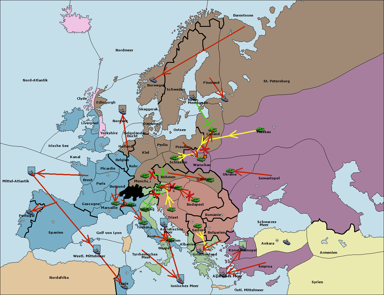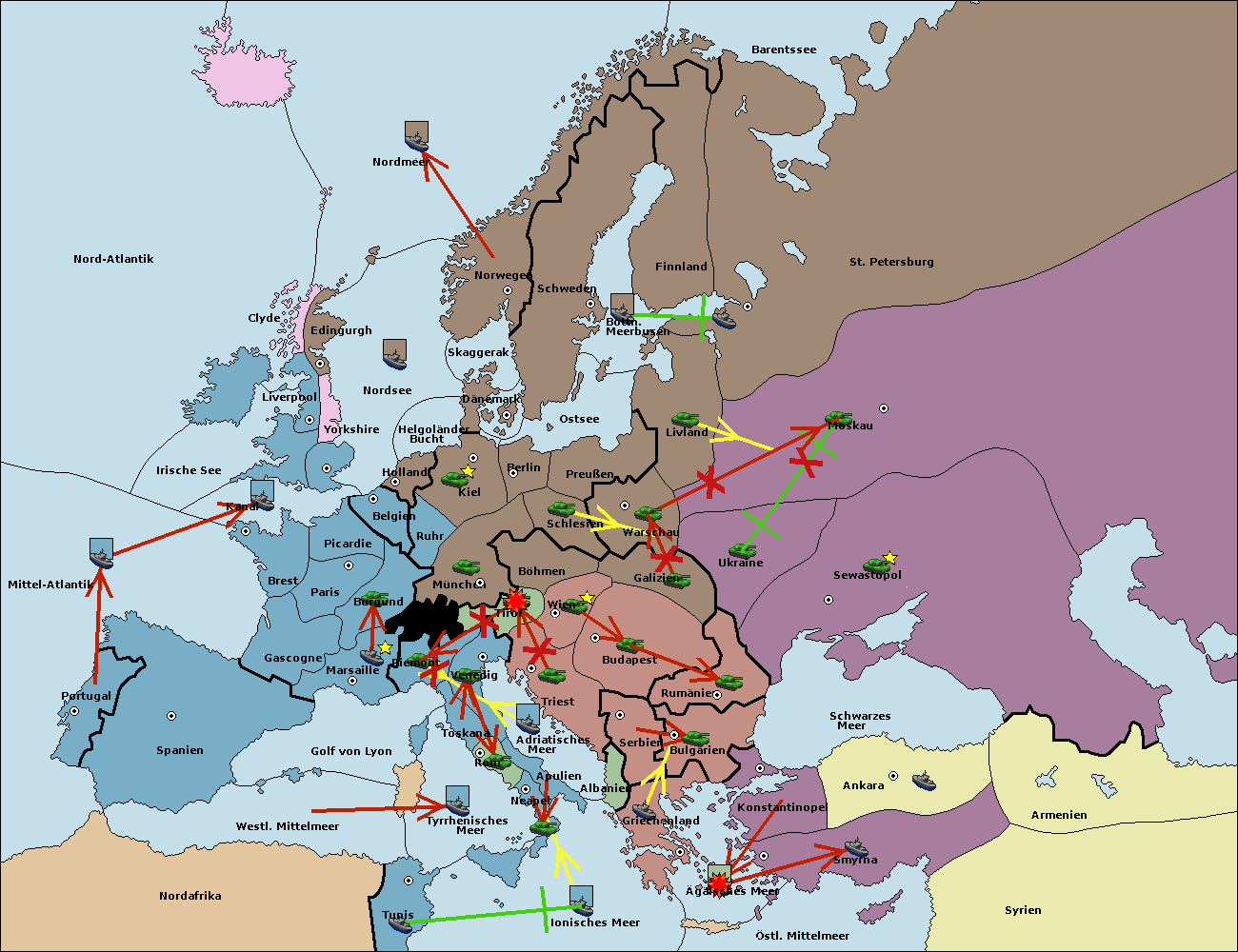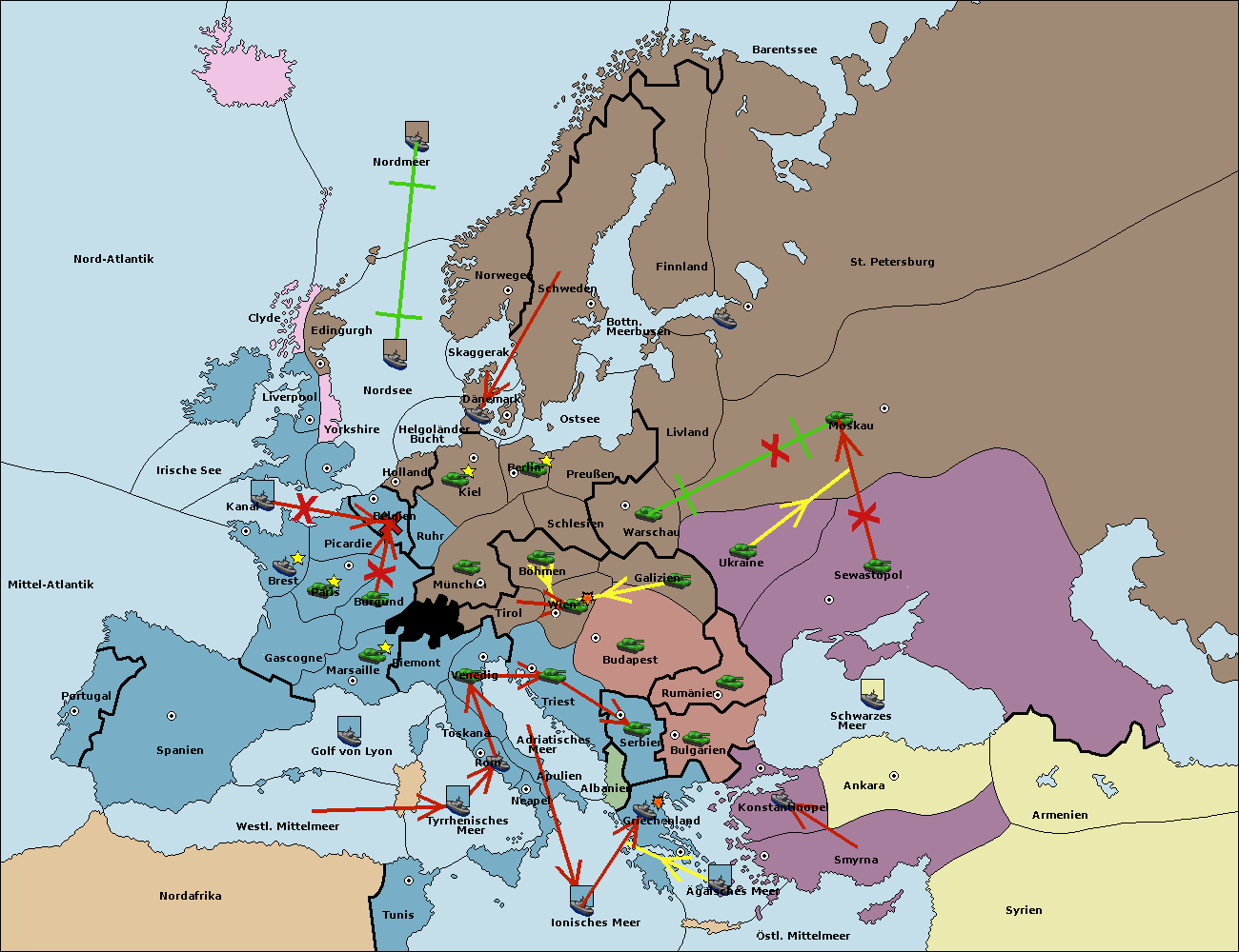 • Die Flotte in Bulgarien (Südküste) move nach Konstantinopel.