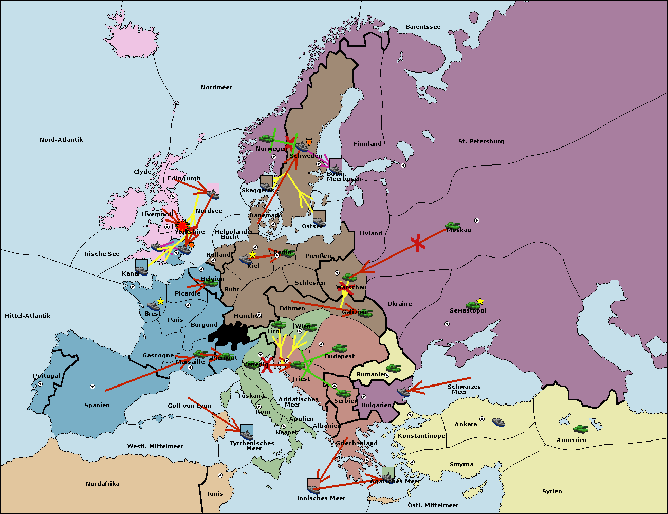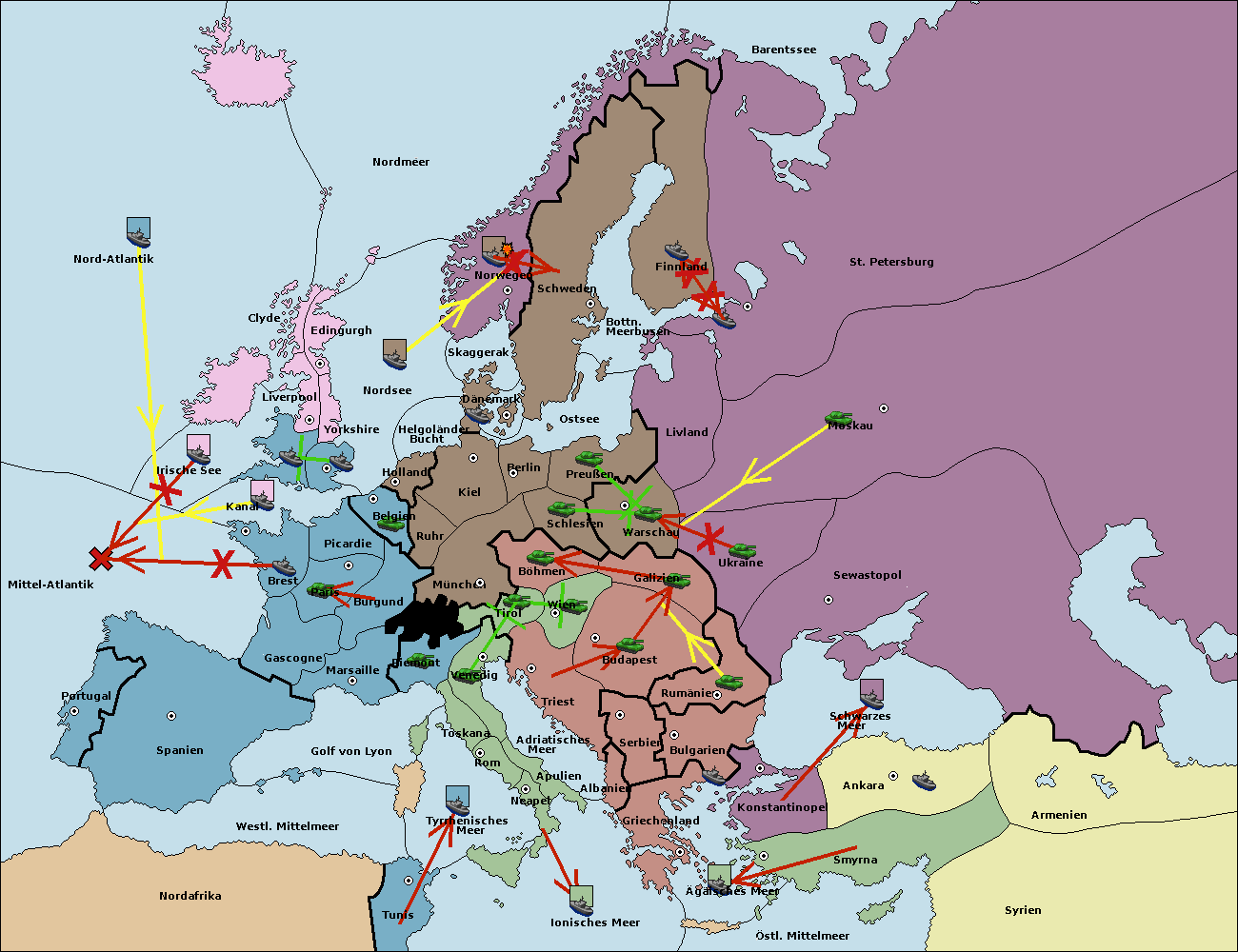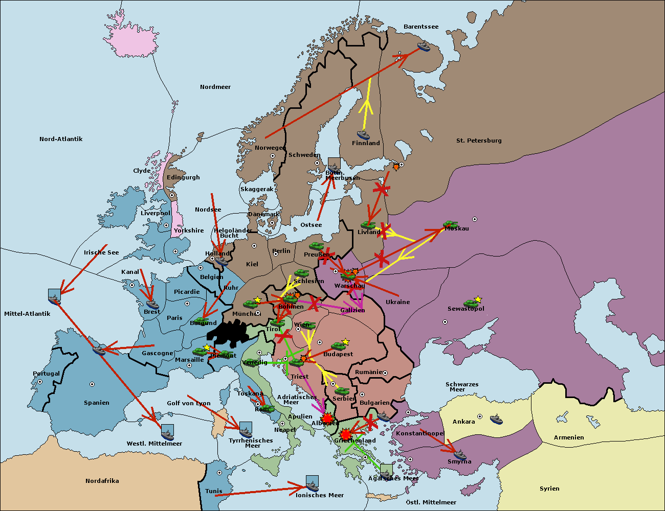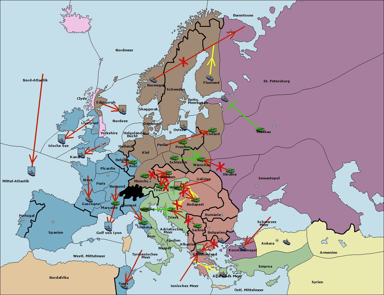• Die Flotte in Bulgarien (Südküste) move nach Konstantinopel.