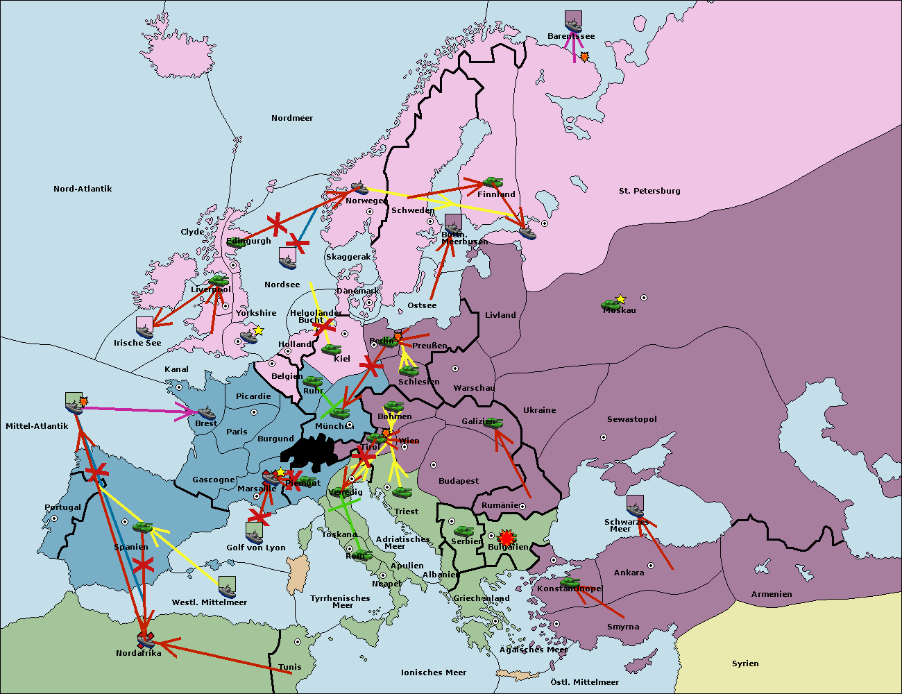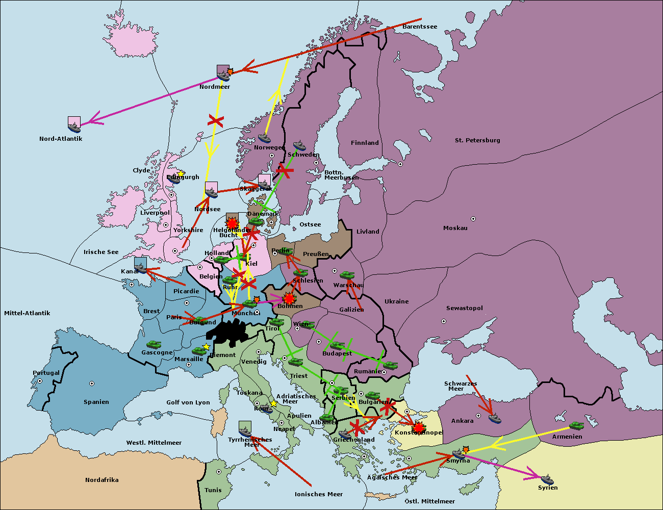 • Die Flotte in Bulgarien (Südküste) move nach Konstantinopel. (gescheitert)